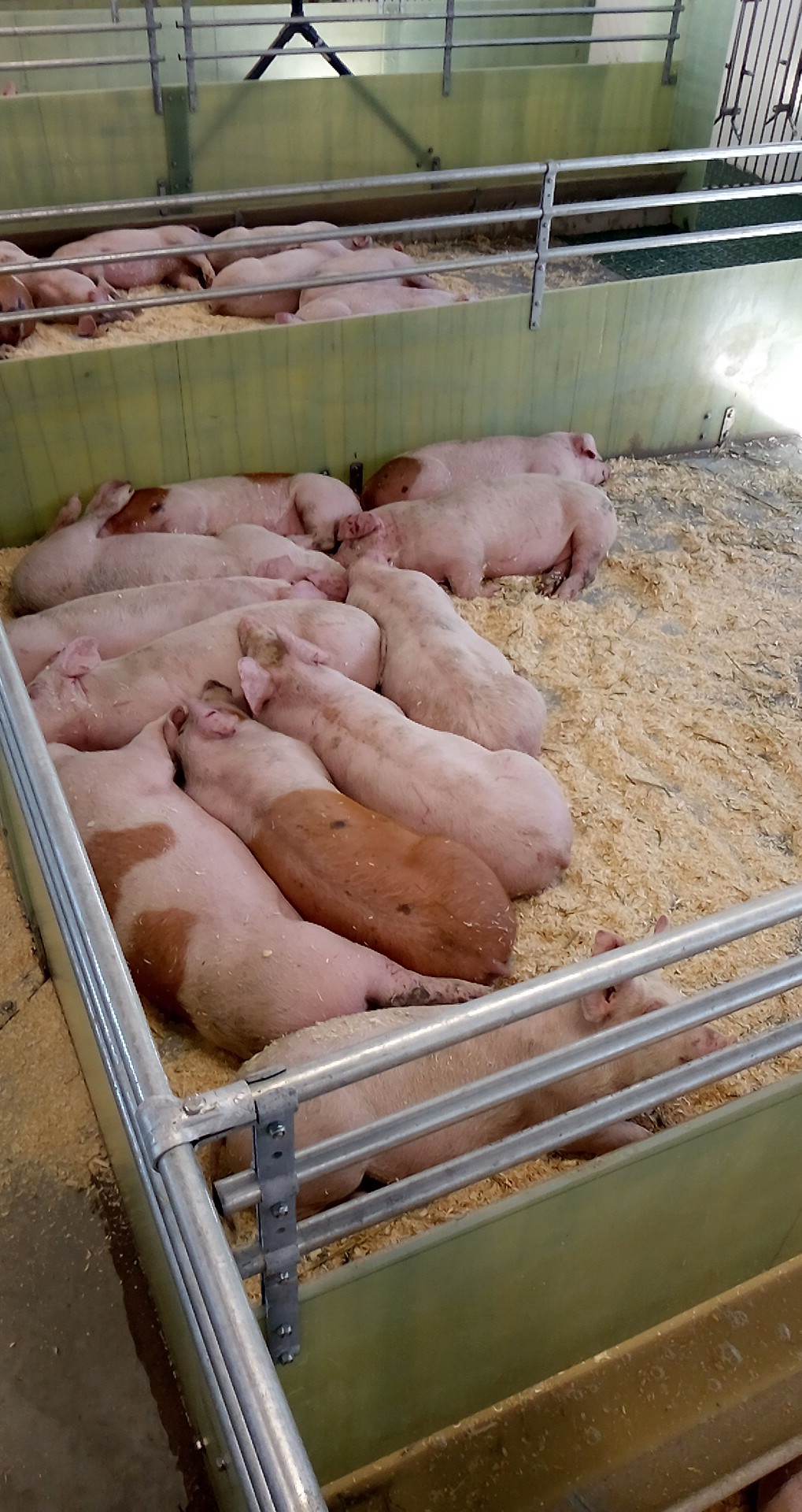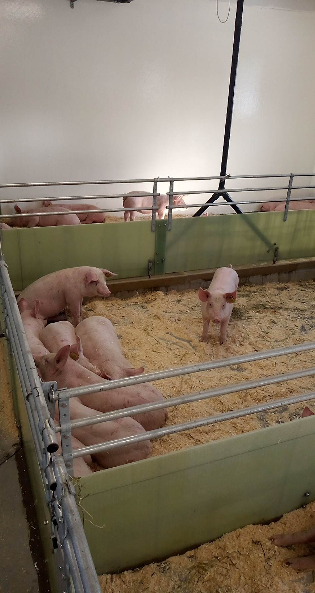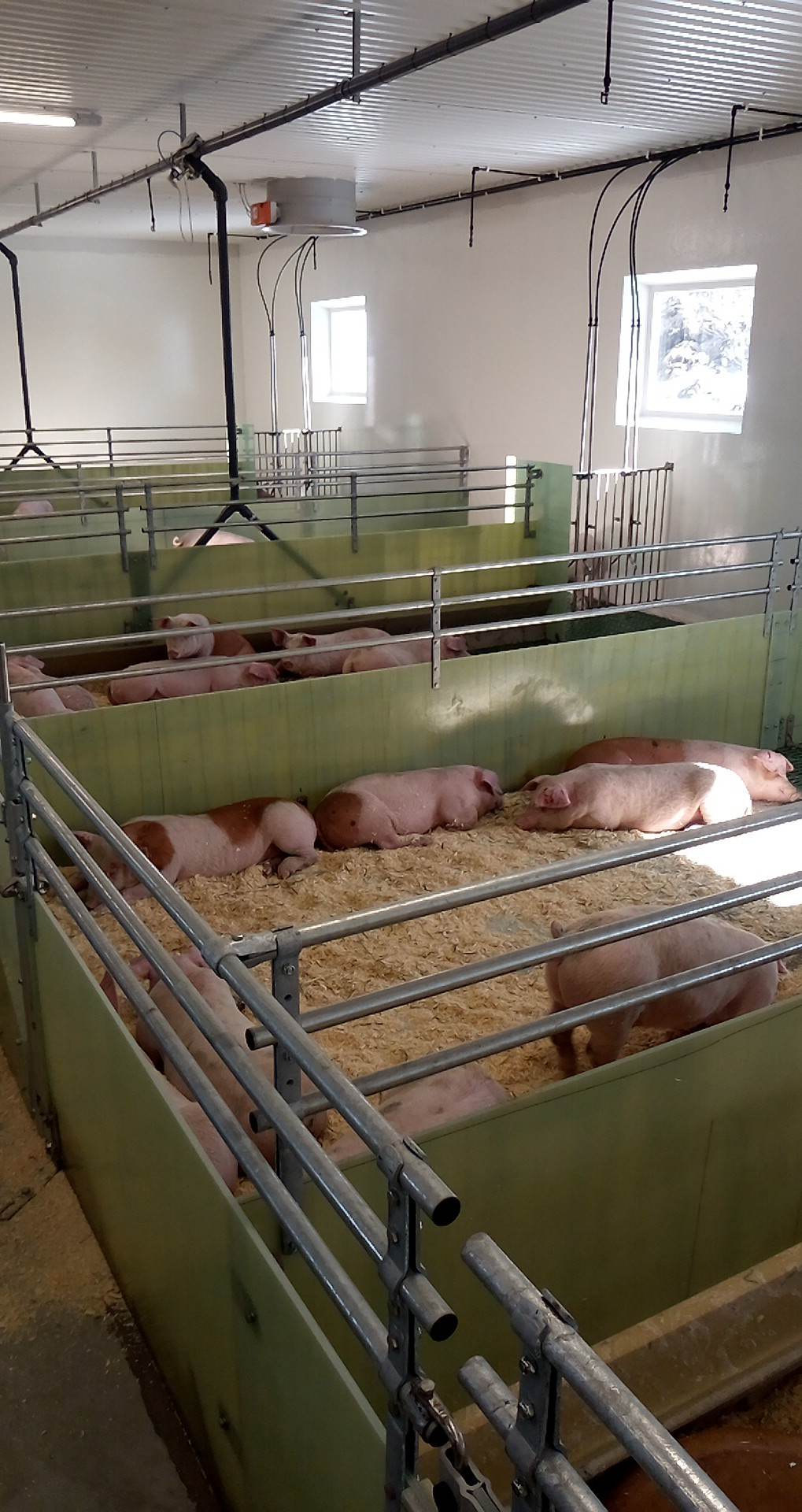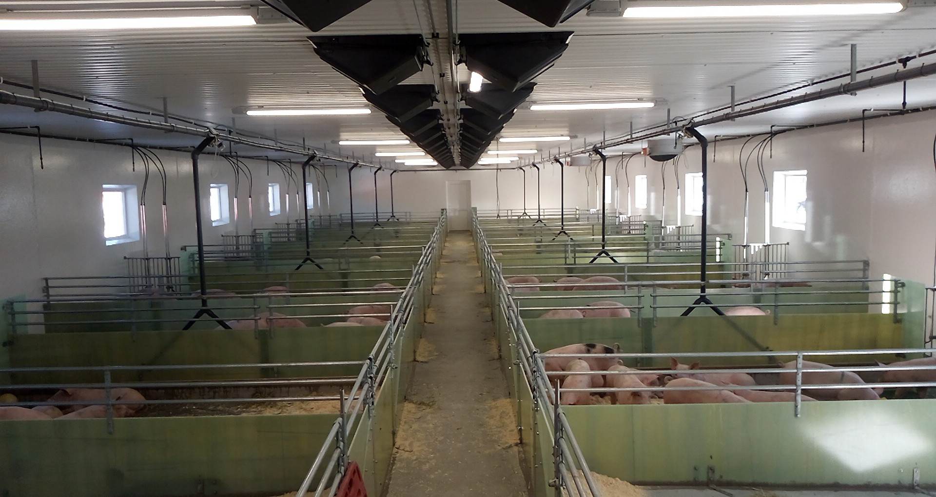 Vi har levert Skiold glassfiber-innredning, FOG utgjødsling, Big Dutchman ventilasjon og alarm, MIK plastrister og vannsystemer til drikkevatn, overbrusing og bløtlegging.