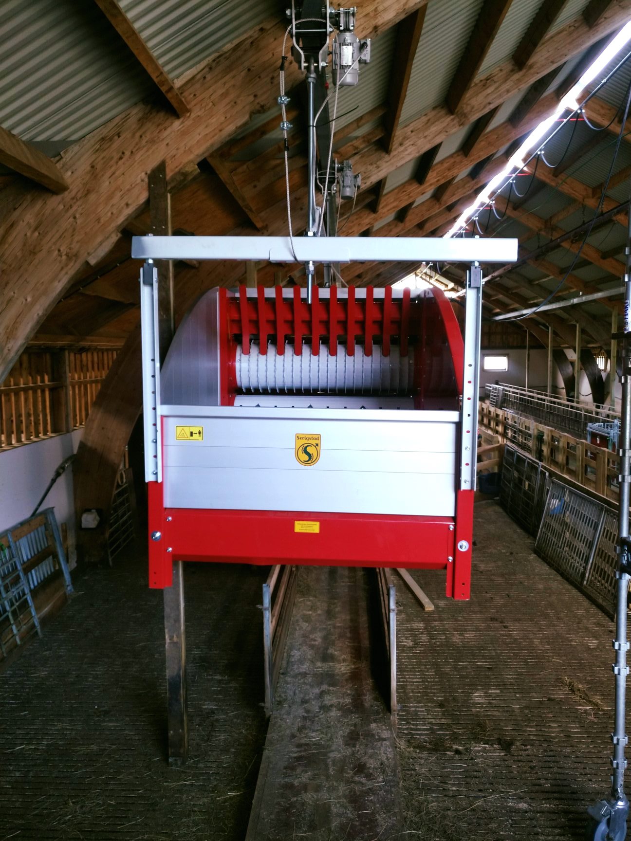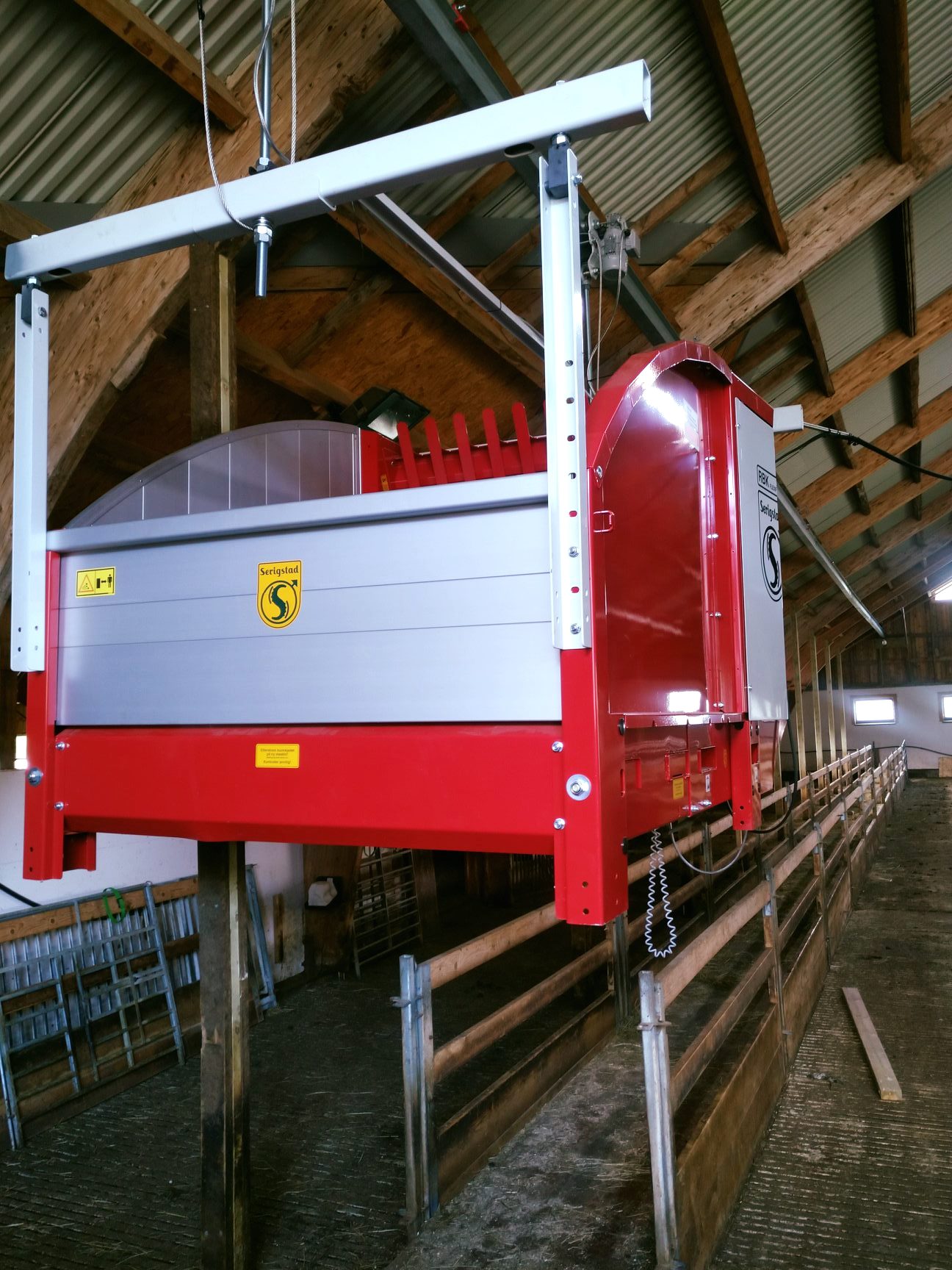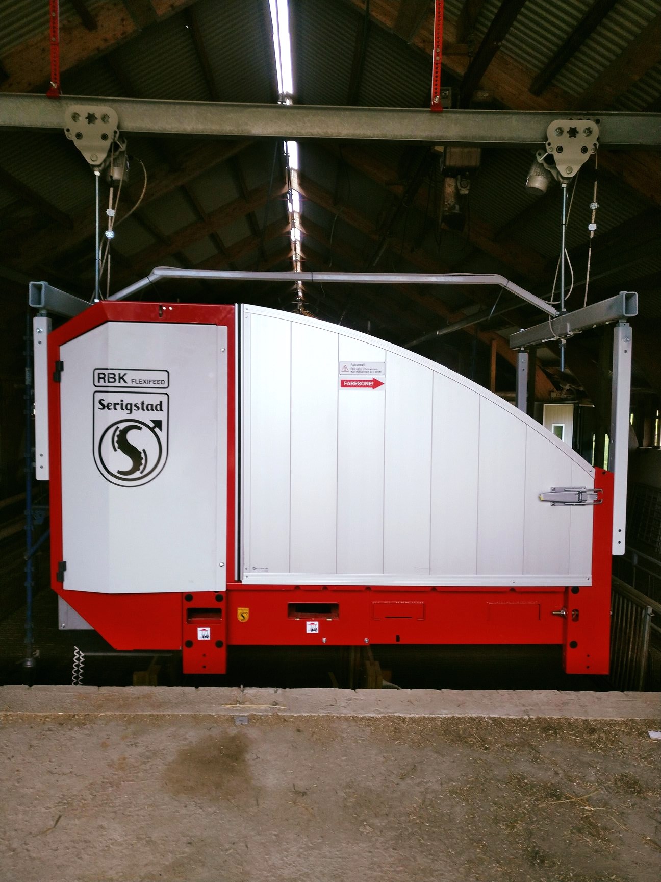 Ca. 240 sau skal fôres med hjelp av en opphengt FlexiFeed fra Serigstad. Rundballekutteren går på en skinne over fôrbrettet. Denne løsningen er en smart, enkel og rasjonell løsning i denne type fjøs. Vi ønsker lykke til!