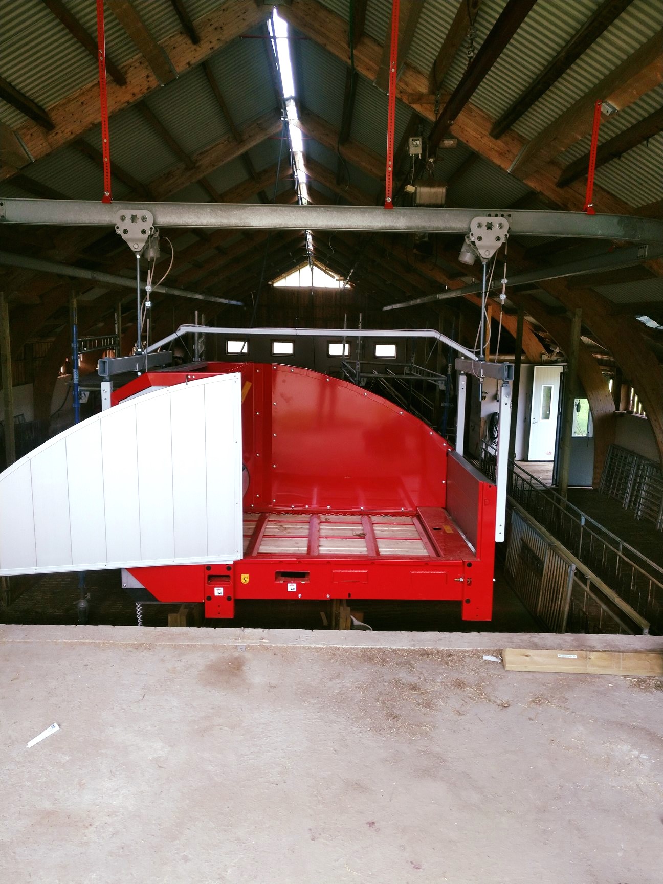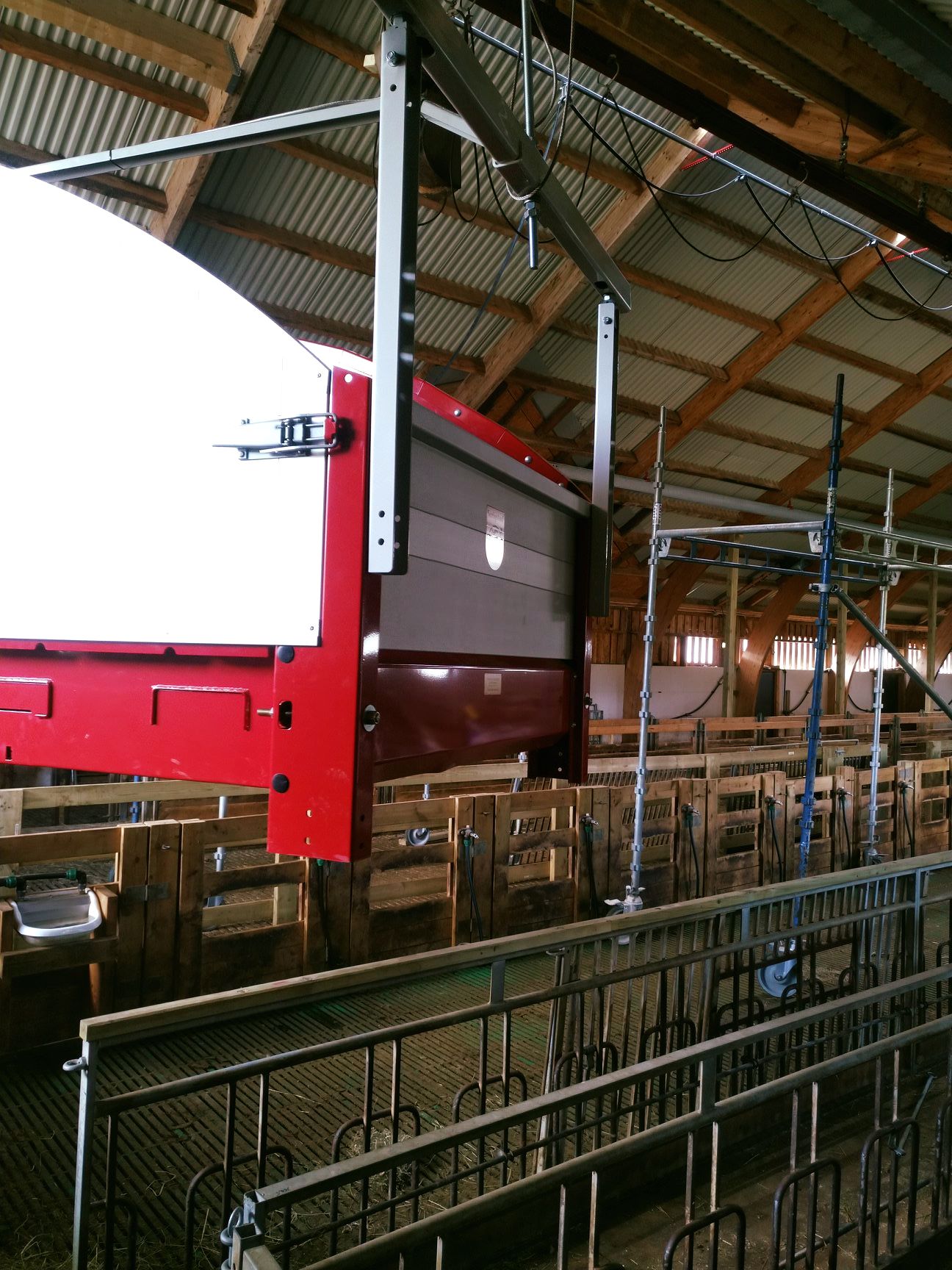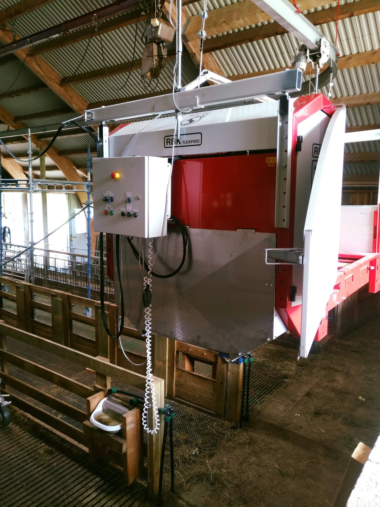 Ca. 240 sau skal fôres med hjelp av en opphengt FlexiFeed fra Serigstad. Rundballekutteren går på en skinne over fôrbrettet. Denne løsningen er en smart, enkel og rasjonell løsning i denne type fjøs. Vi ønsker lykke til!