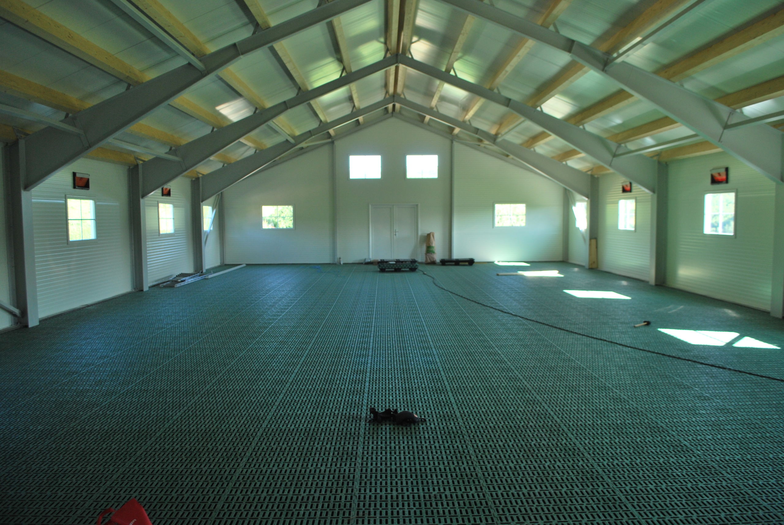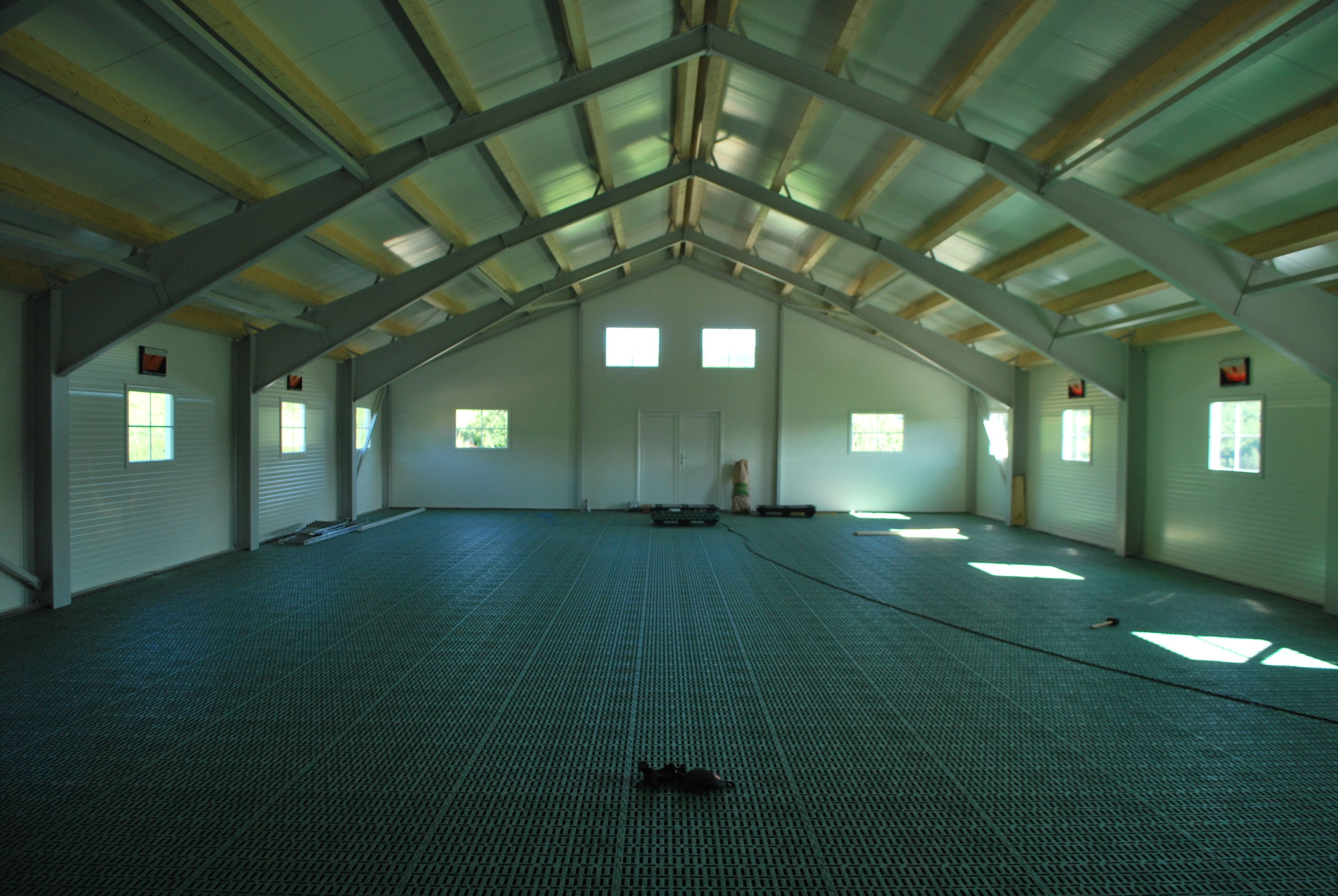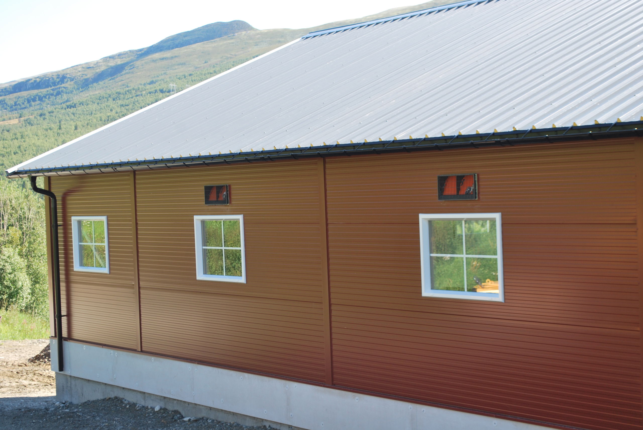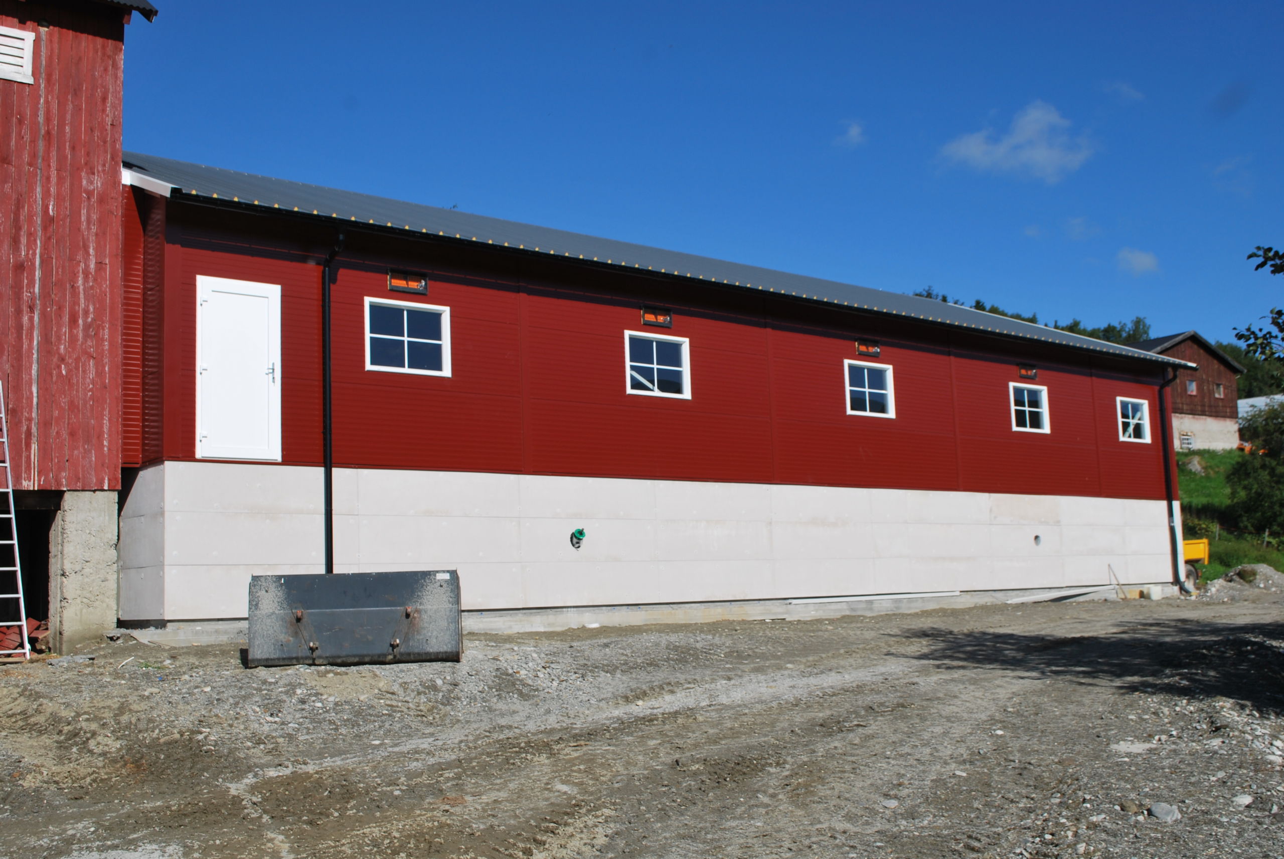 Fjøset er med stålkonstruksjon og sandwich, og er bygget over kjeller. Det er lagt Mik Stepper plastrister på stålbæring med 5 meters spenn. Det er valgt lammesikker front med glassfiber mot fôrbrett, og bingeskillene er både tette glassfiberskiller og med stående spiler. Vi har også levert Big Dutchman ventilasjon.