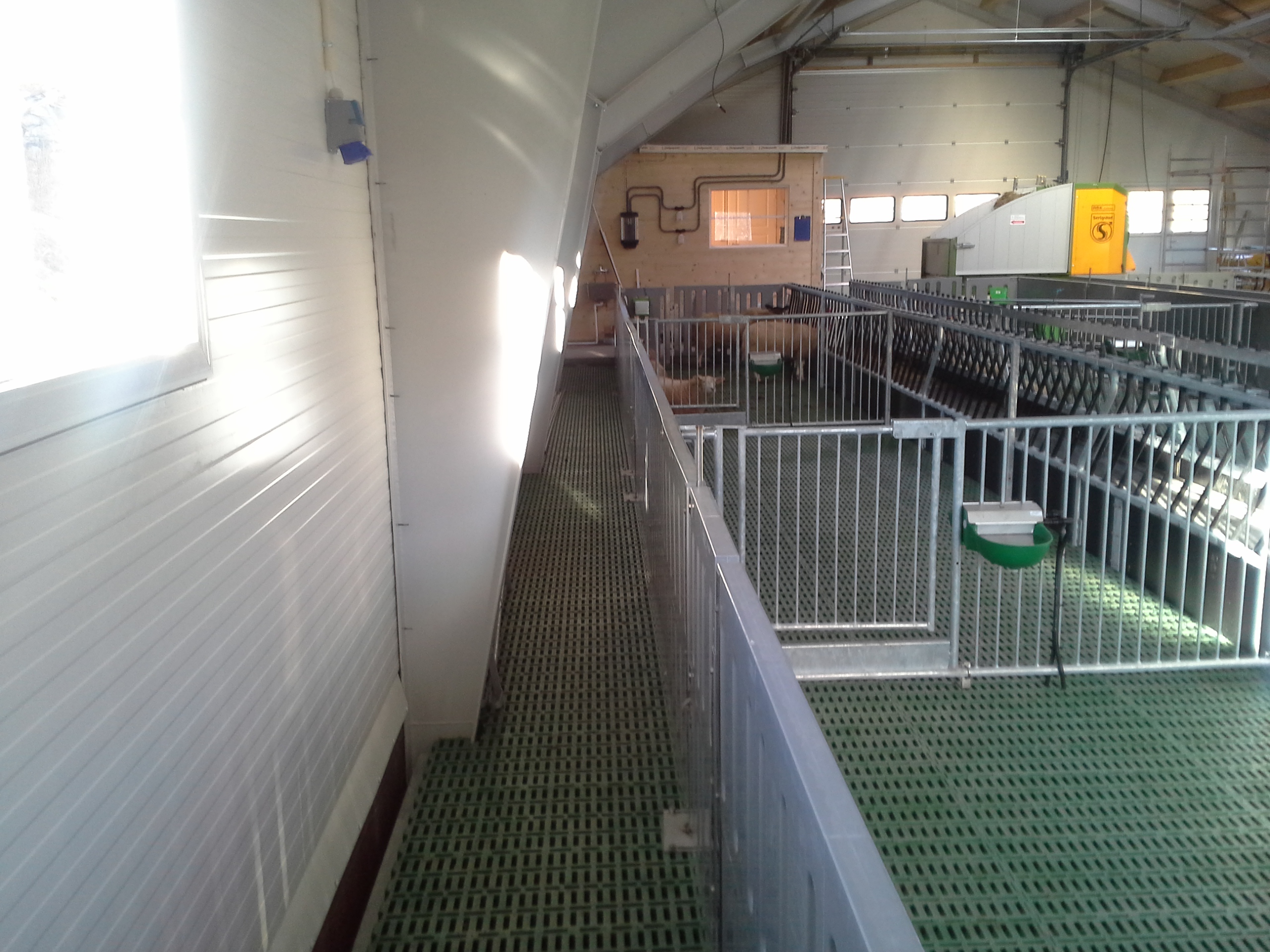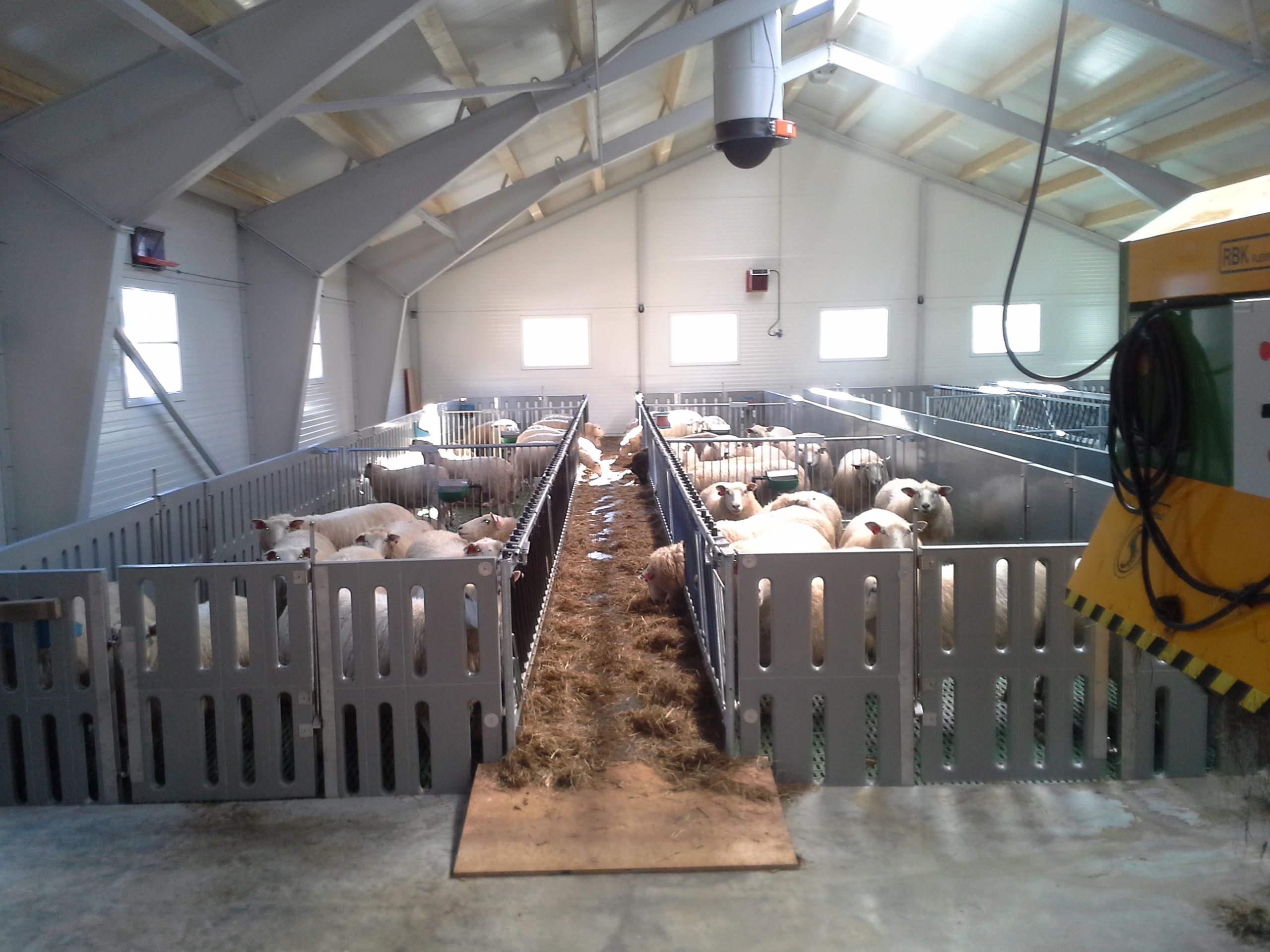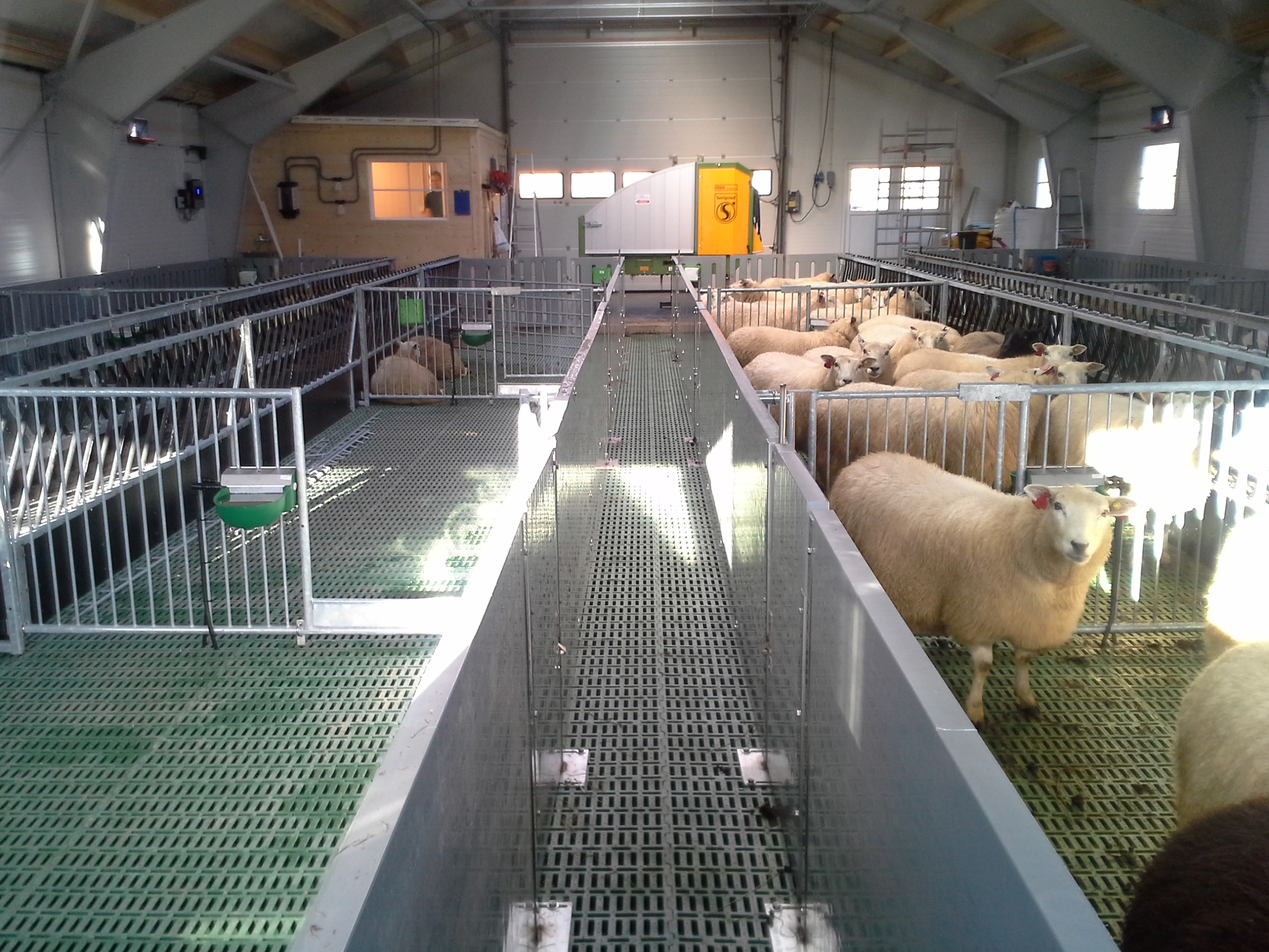 Bygget er oppført med stålbuer og sandwich elementer, og er planlagt for ca 180 v.f. sau. Det er kjeller til bløtgjødsel, og plastrister over hele arealet. Det benyttes stålbæring, med 5m spenn. Lammesikre fronter, og innredning fra Jyden samt tette plastskiller fra Paneltech. Ventilasjon fra Big Dutchman, og Agrilight belysning.