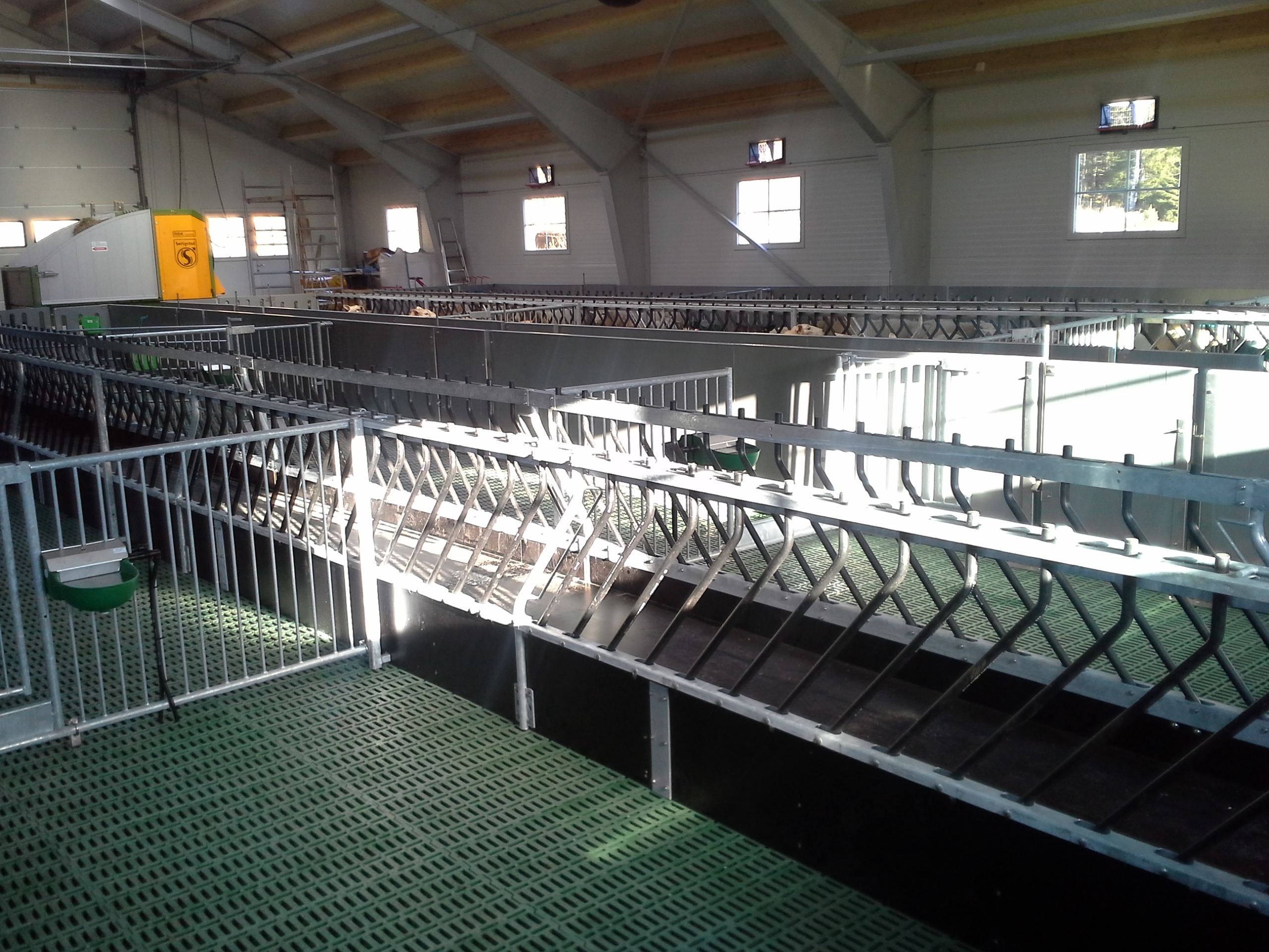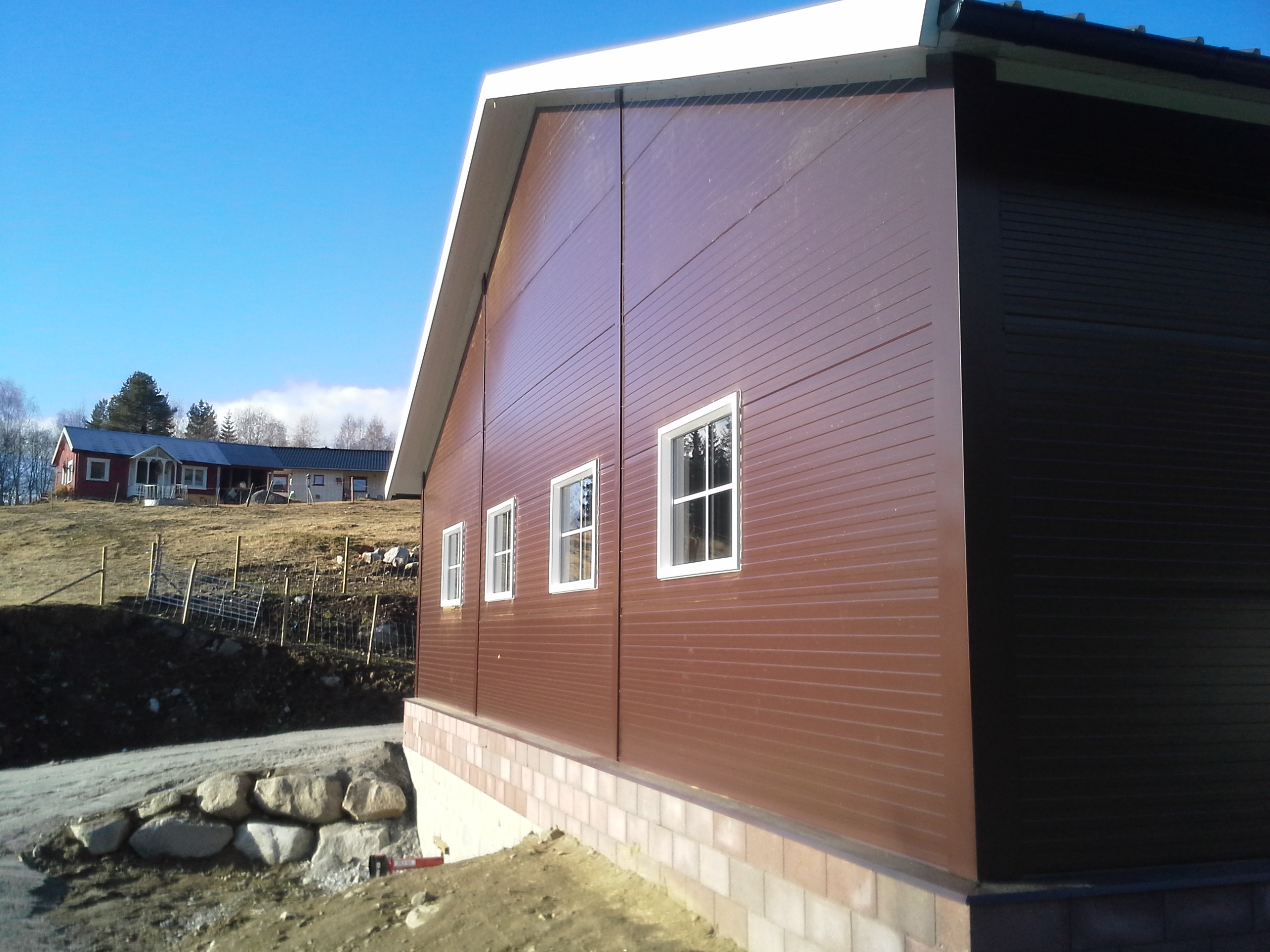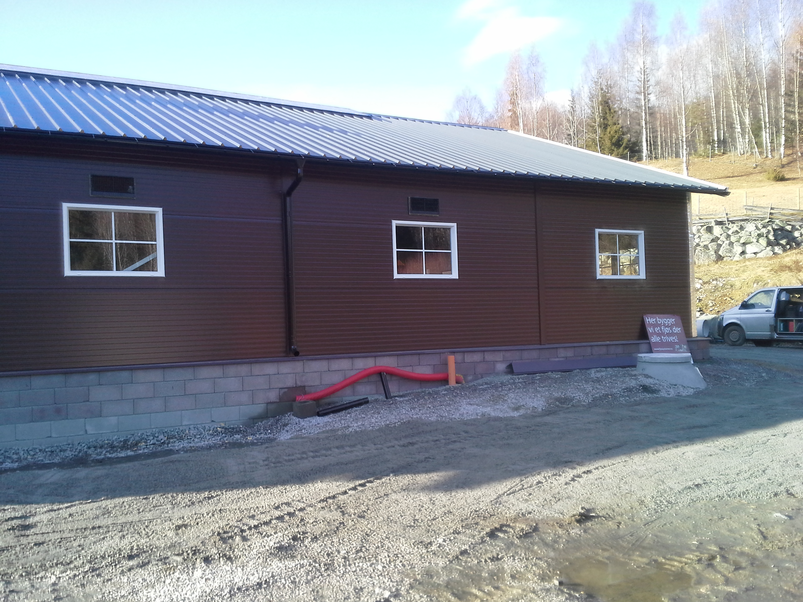 Bygget er oppført med stålbuer og sandwich elementer, og er planlagt for ca 180 v.f. sau. Det er kjeller til bløtgjødsel, og plastrister over hele arealet. Det benyttes stålbæring, med 5m spenn. Lammesikre fronter, og innredning fra Jyden samt tette plastskiller fra Paneltech. Ventilasjon fra Big Dutchman, og Agrilight belysning.