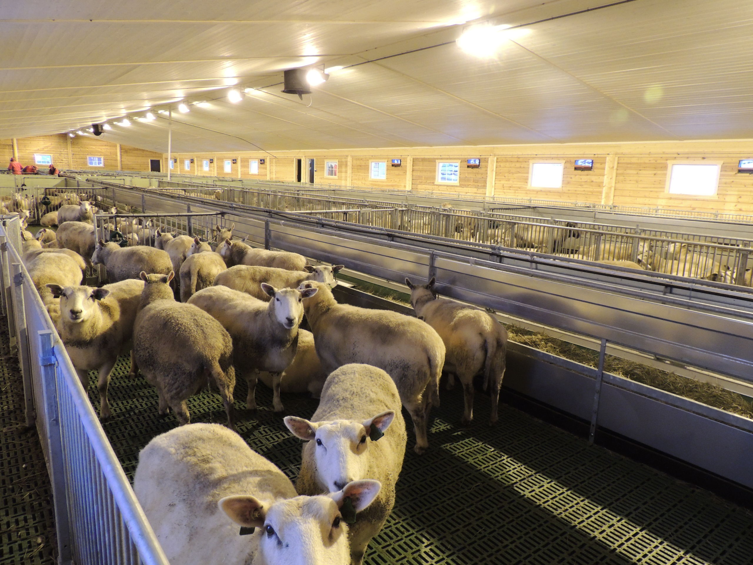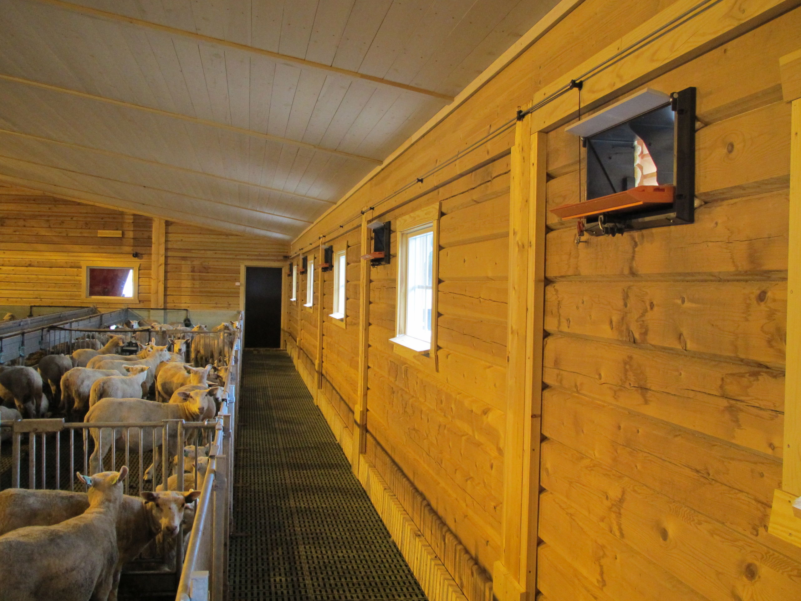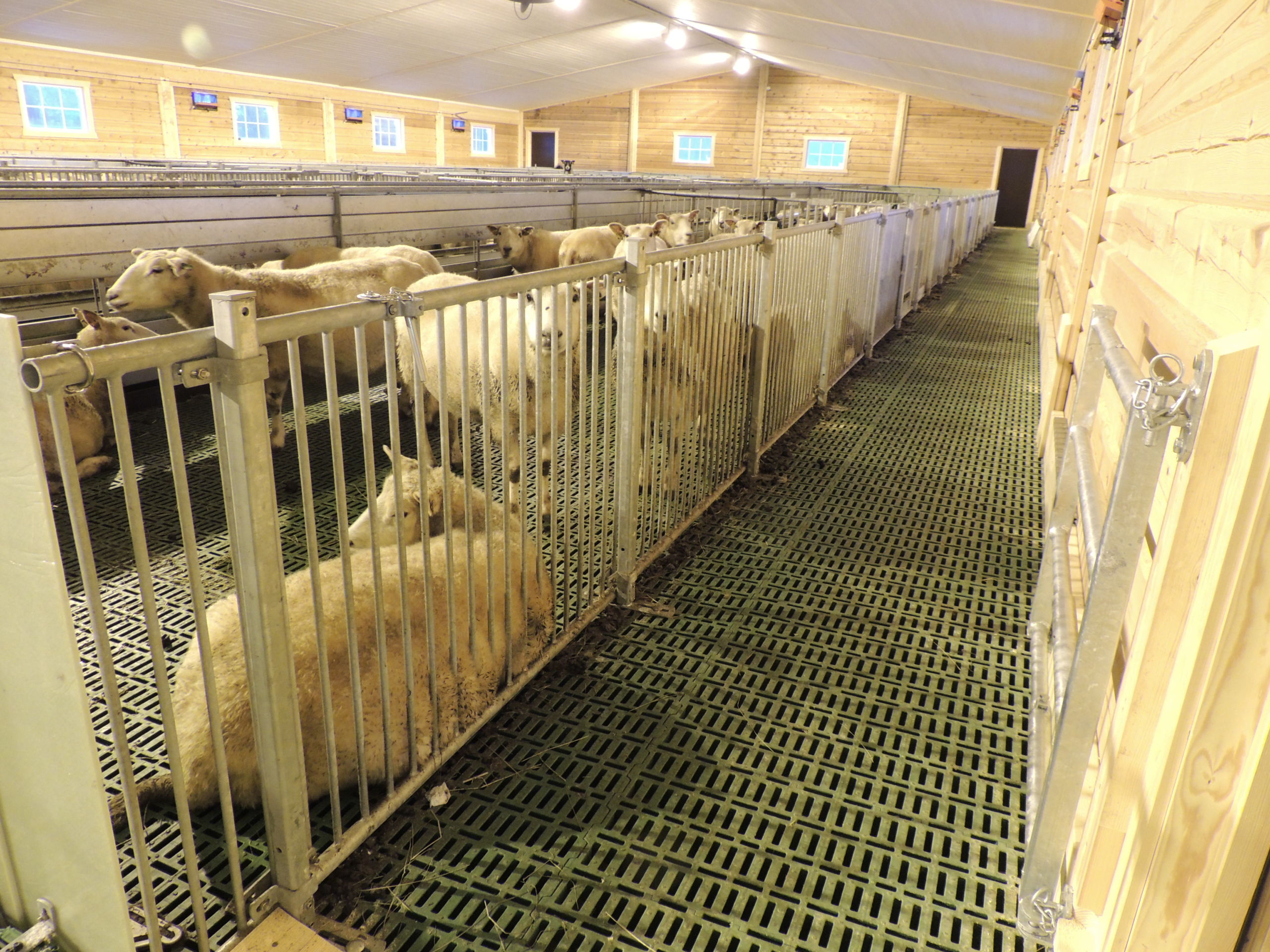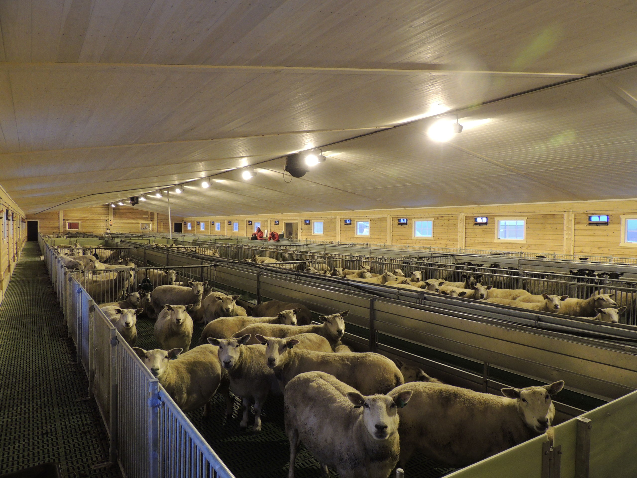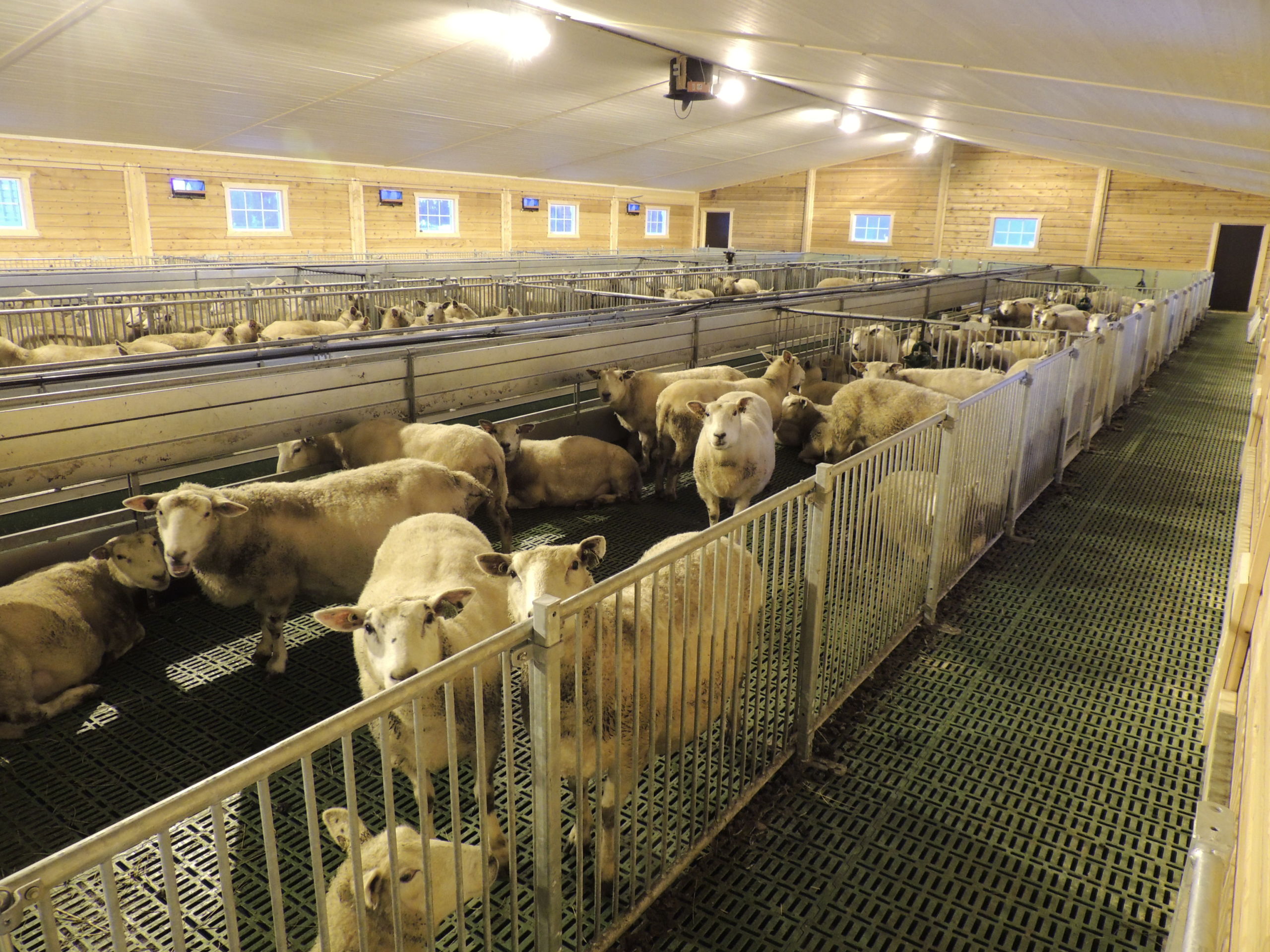 Det nye fjøset er på 64,2m x 15,8m, og har plass til ca 600 sau. Det er MIK Stepper plastrister over hele arealet. Rullende fôrbrett med overgang i midtgang. Bingeskiller med stående spiler og tette glassfiberskiller i ender. Vi har også levert lammegrinder. Big Dutchman ventilasjon, og drikkekar fra Suevia. Lammedrikkeautomater vil også bli tatt i bruk.