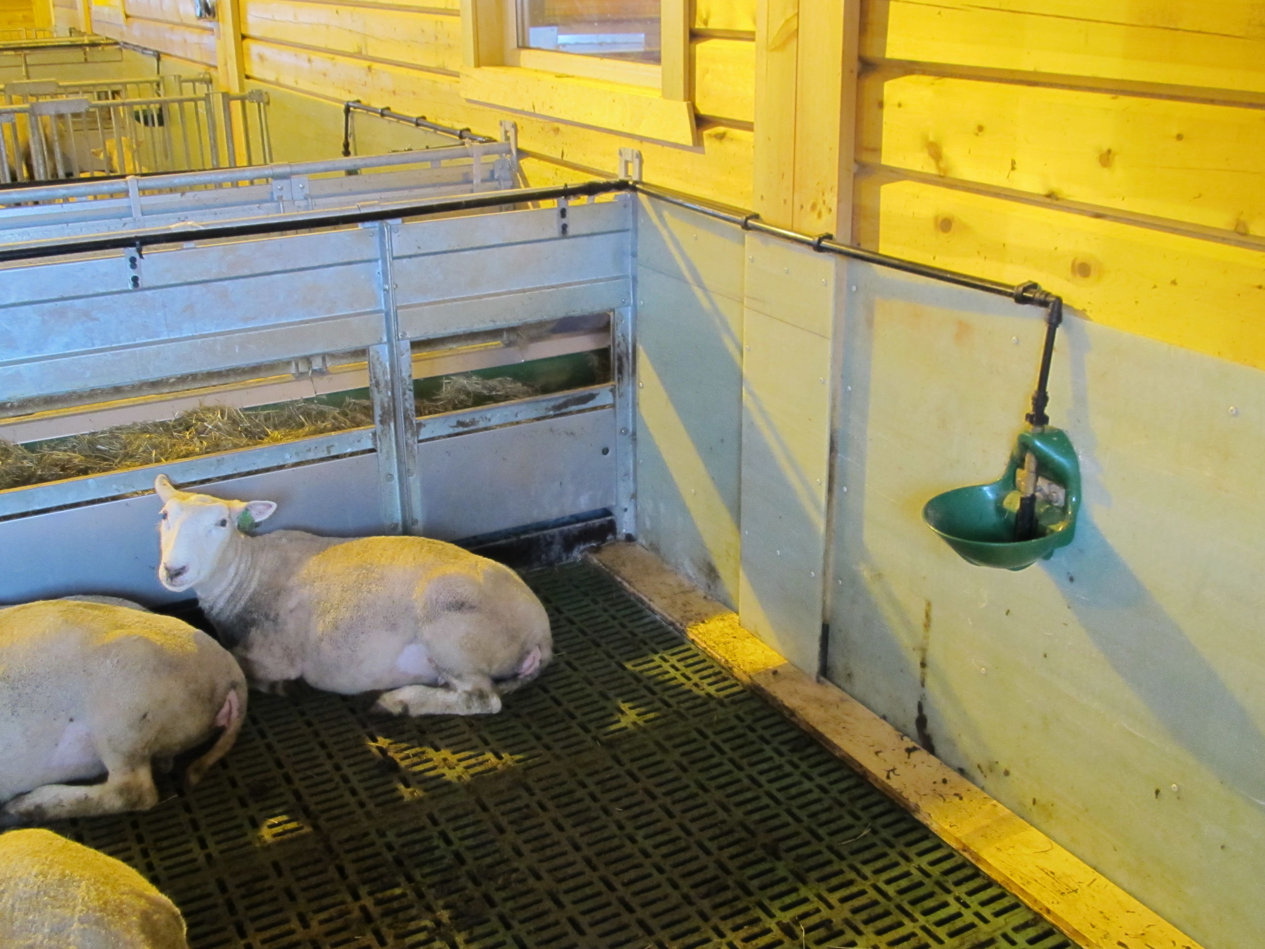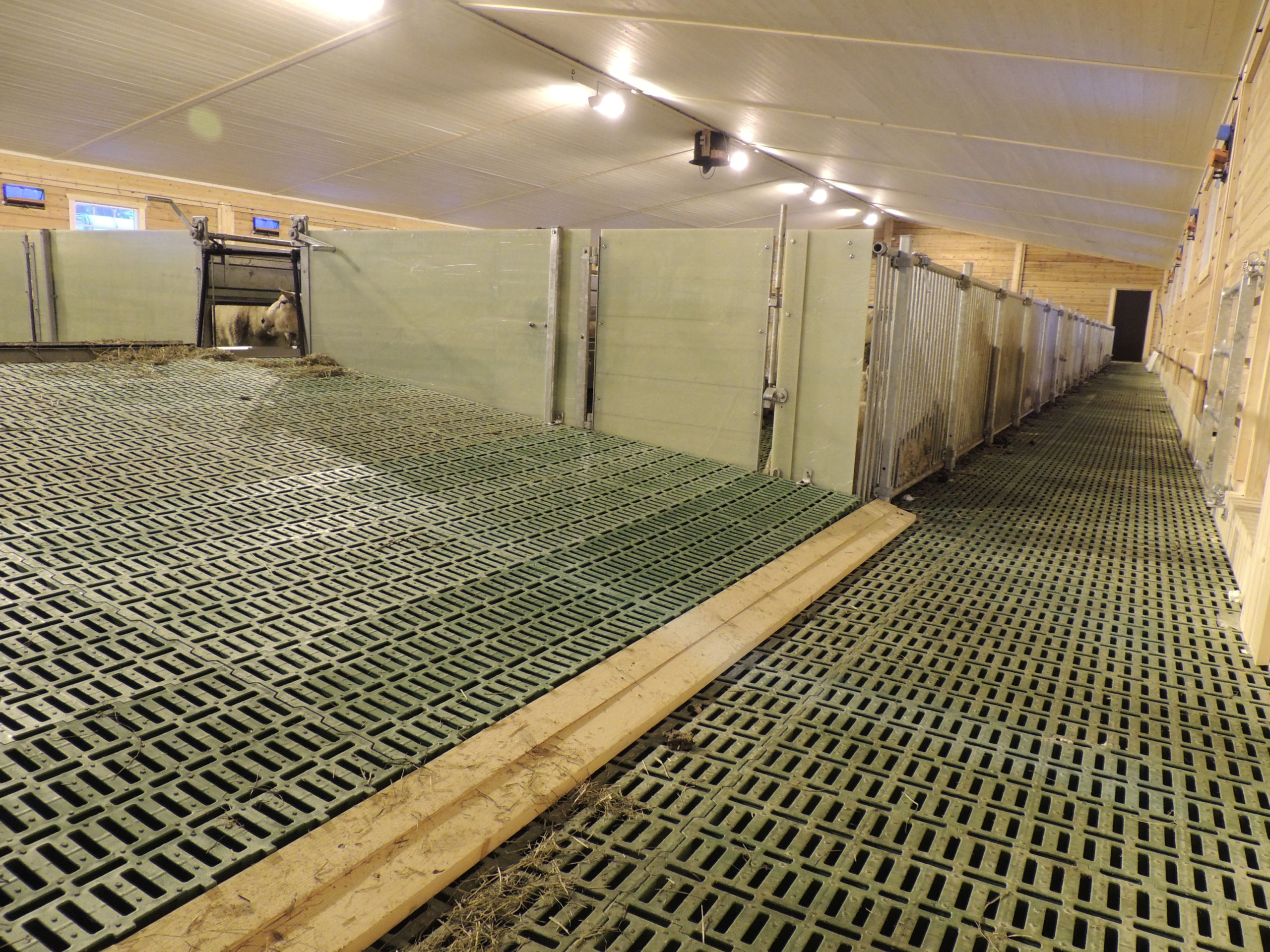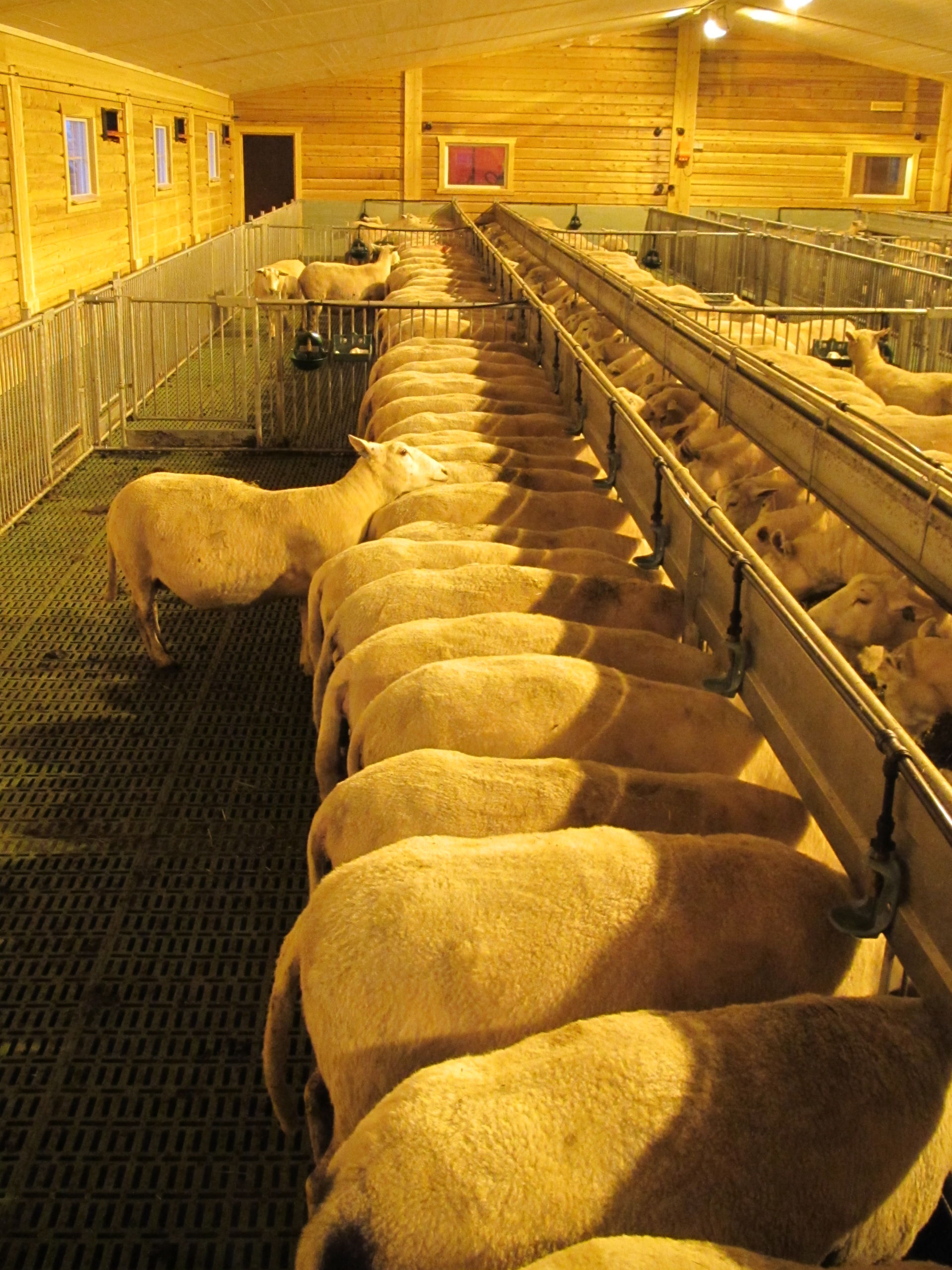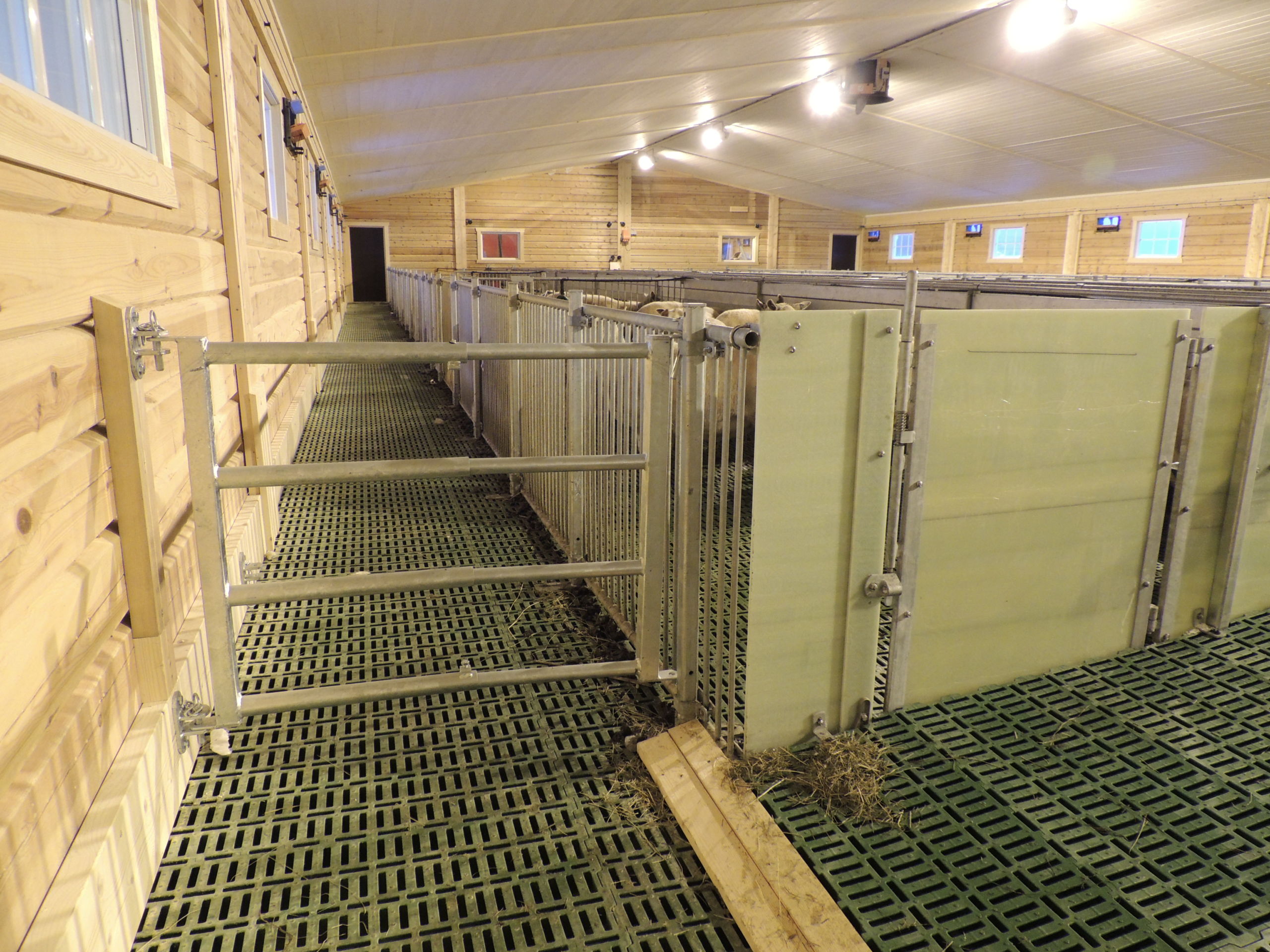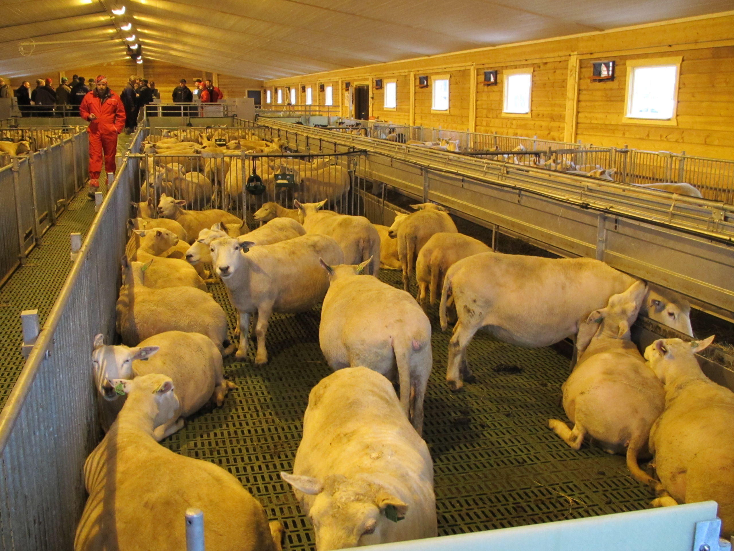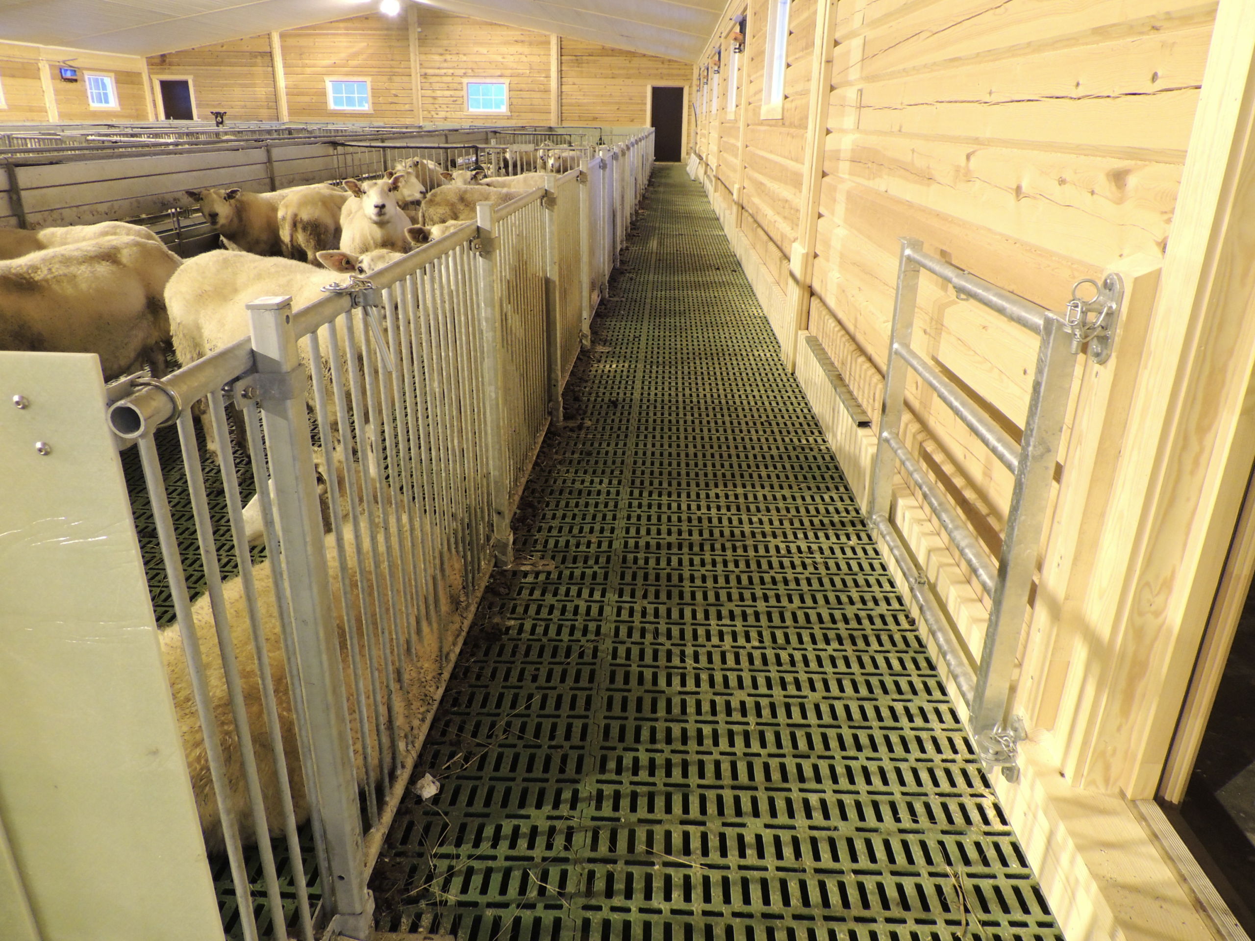 Det nye fjøset er på 64,2m x 15,8m, og har plass til ca 600 sau. Det er MIK Stepper plastrister over hele arealet. Rullende fôrbrett med overgang i midtgang. Bingeskiller med stående spiler og tette glassfiberskiller i ender. Vi har også levert lammegrinder. Big Dutchman ventilasjon, og drikkekar fra Suevia. Lammedrikkeautomater vil også bli tatt i bruk.