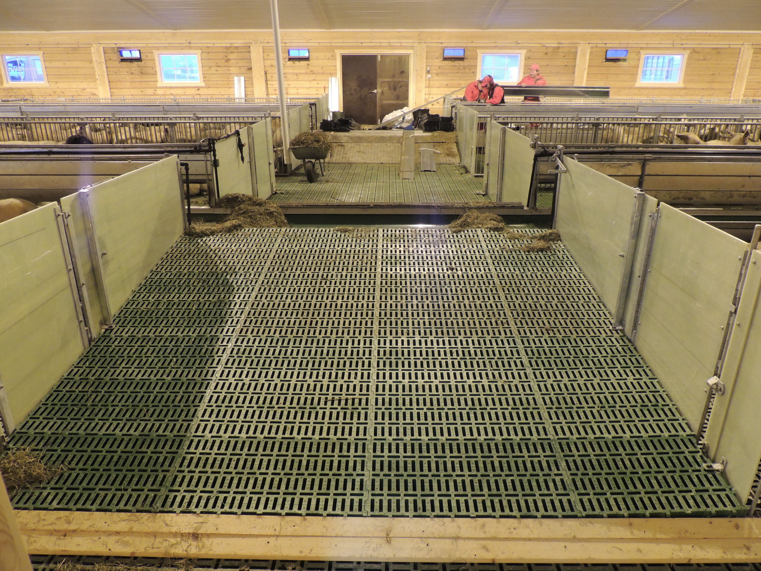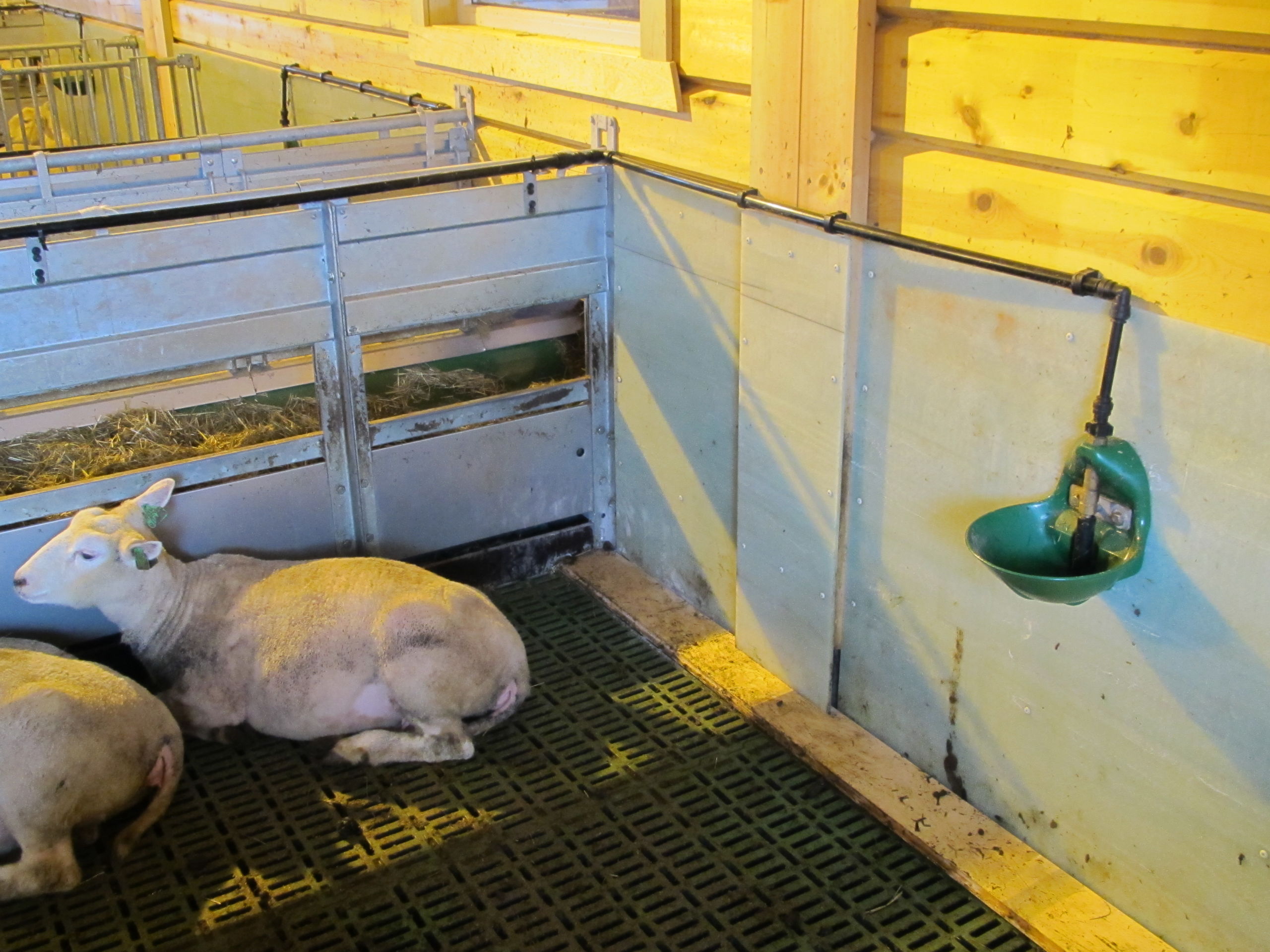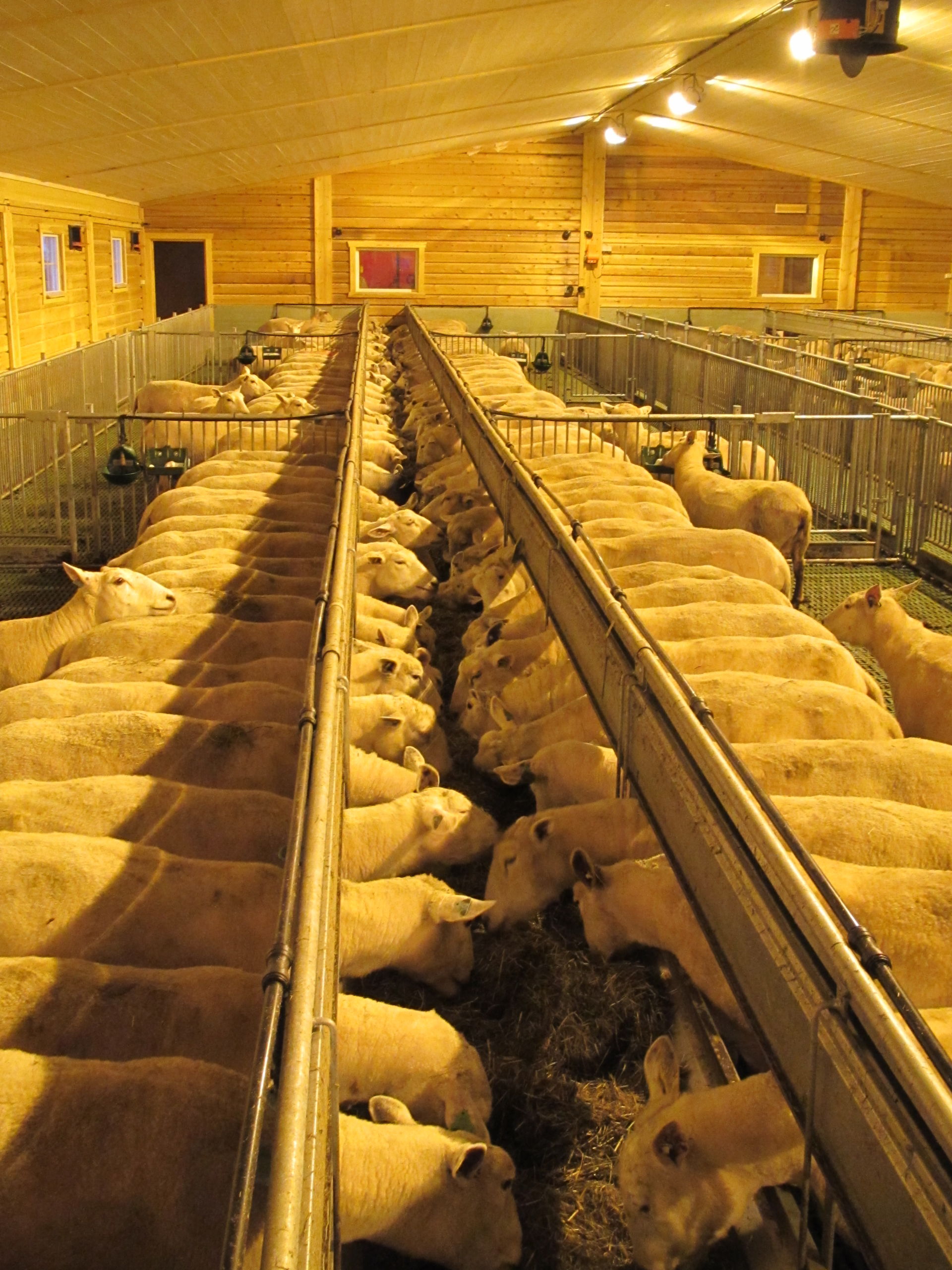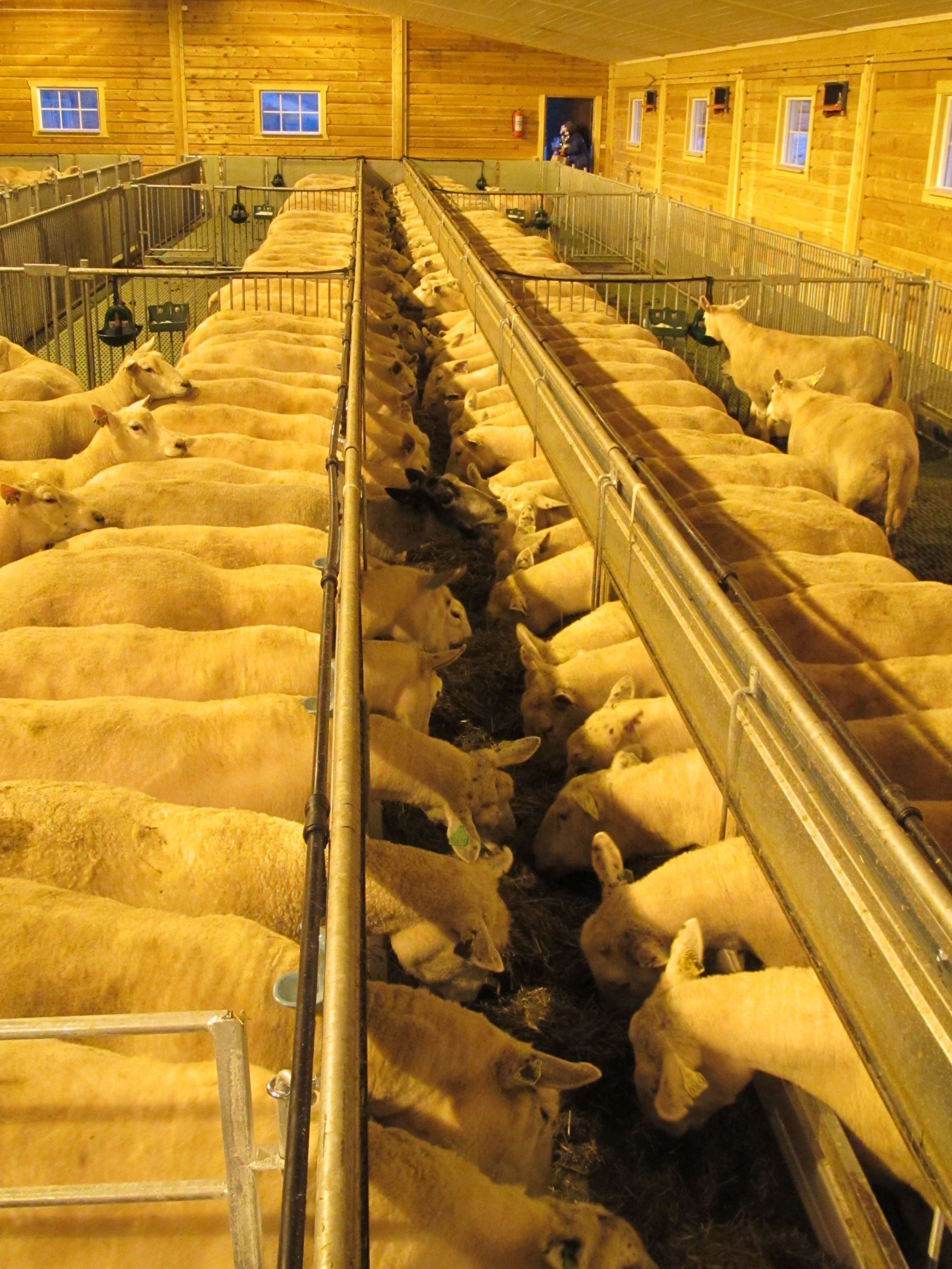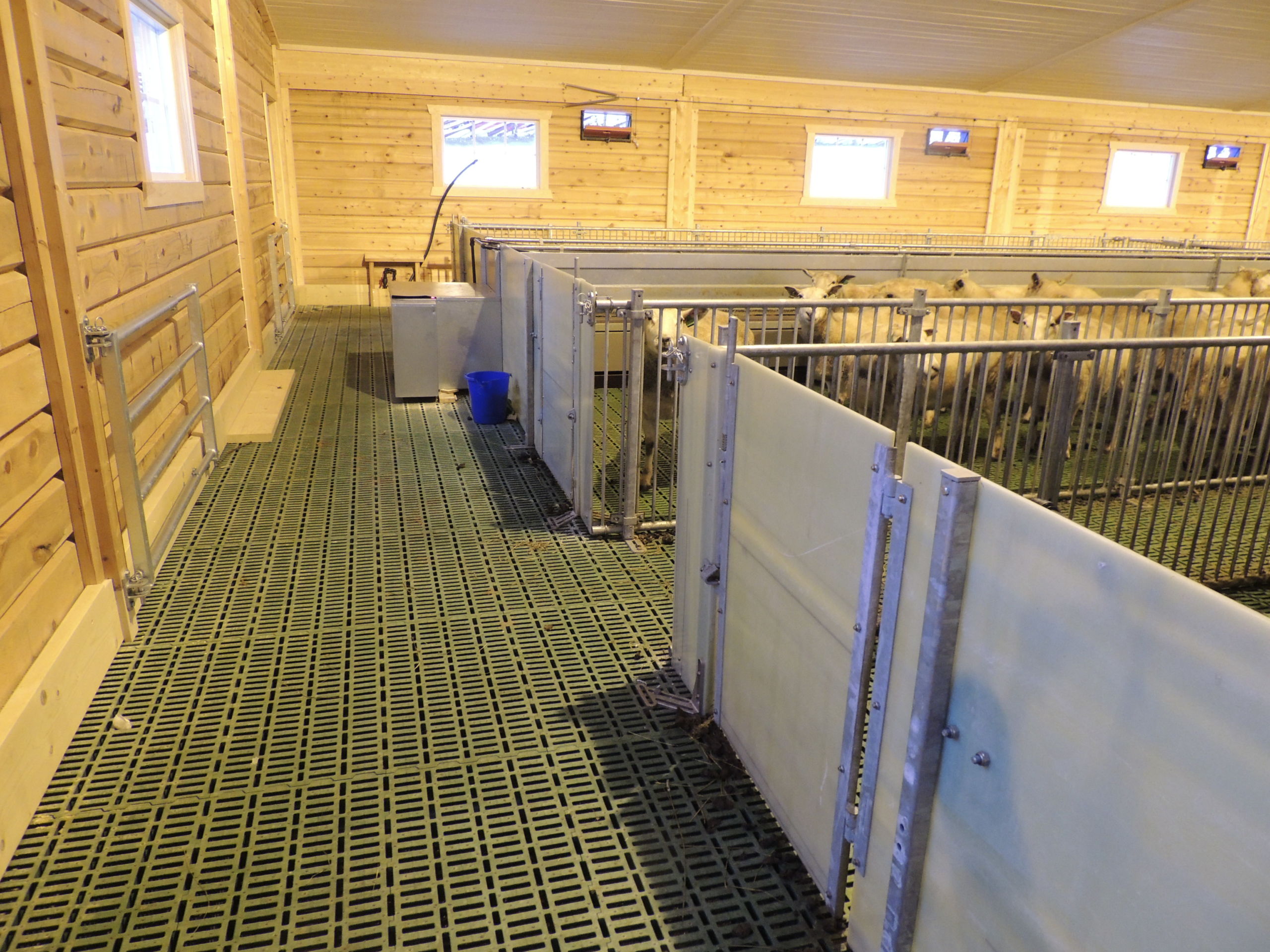 Det nye fjøset er på 64,2m x 15,8m, og har plass til ca 600 sau. Det er MIK Stepper plastrister over hele arealet. Rullende fôrbrett med overgang i midtgang. Bingeskiller med stående spiler og tette glassfiberskiller i ender. Vi har også levert lammegrinder. Big Dutchman ventilasjon, og drikkekar fra Suevia. Lammedrikkeautomater vil også bli tatt i bruk.