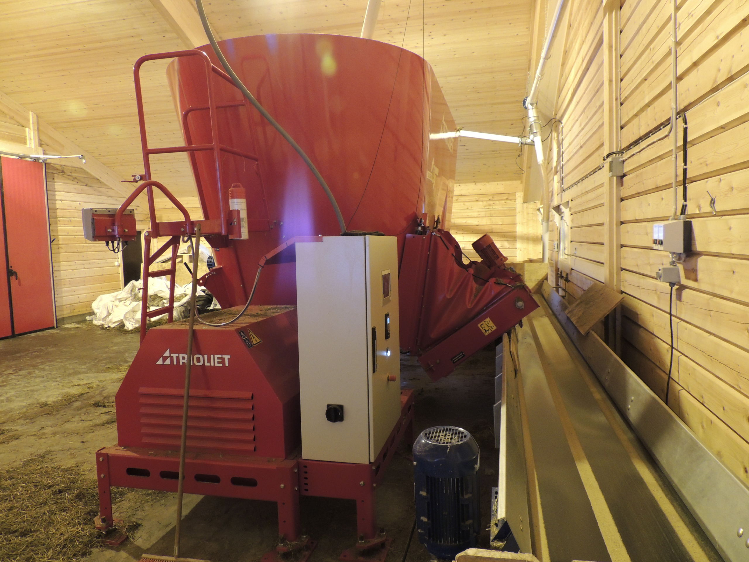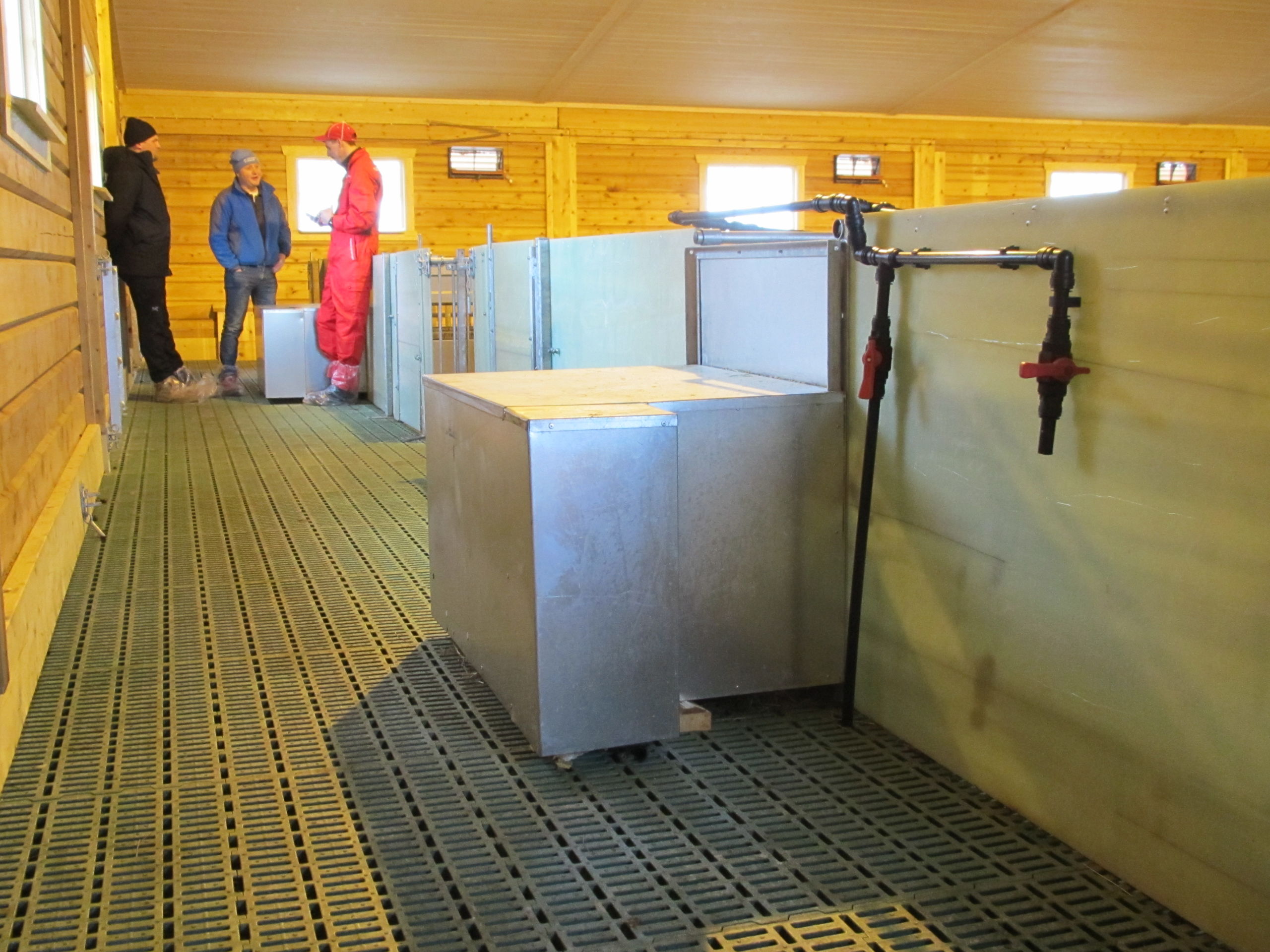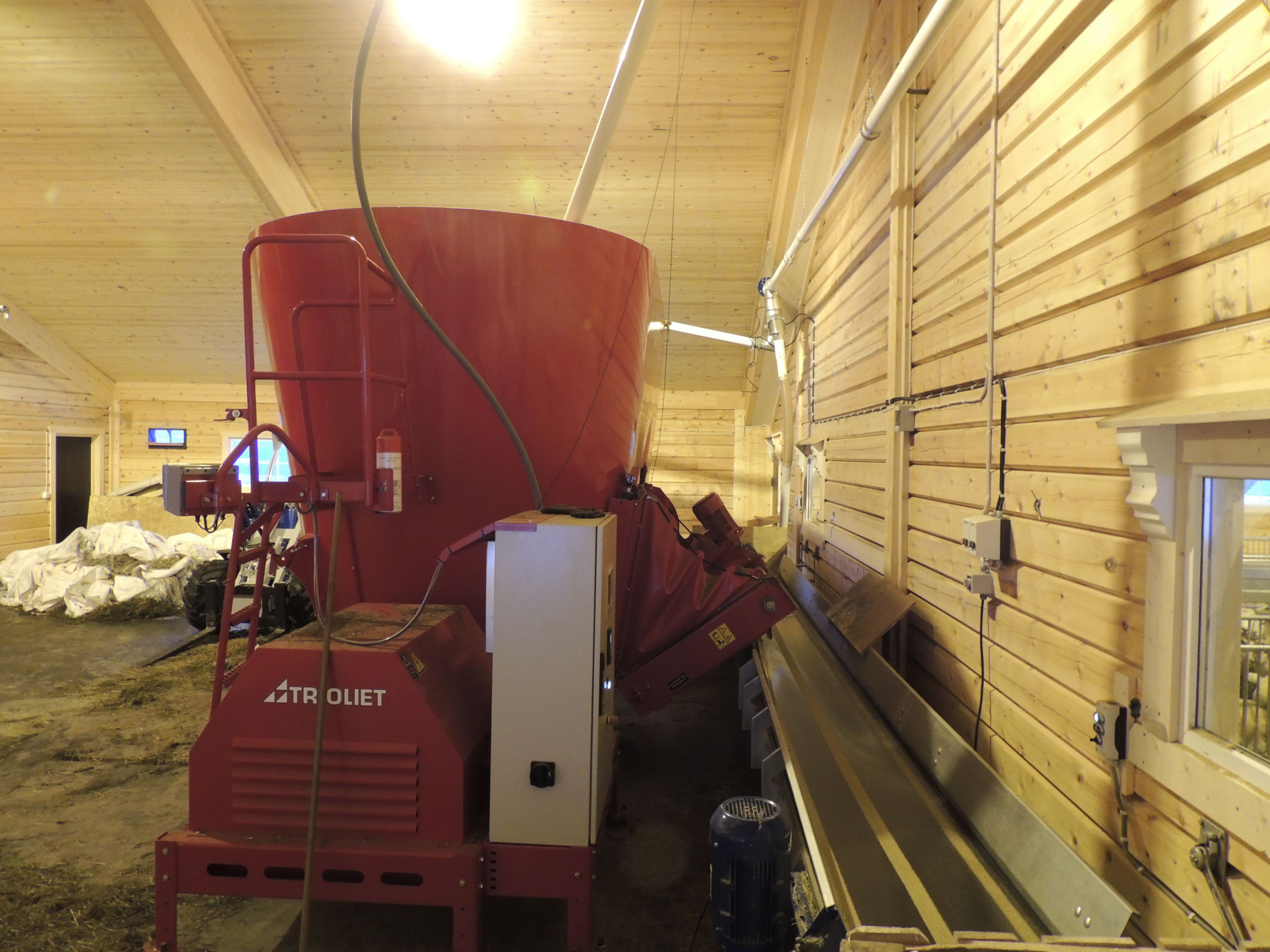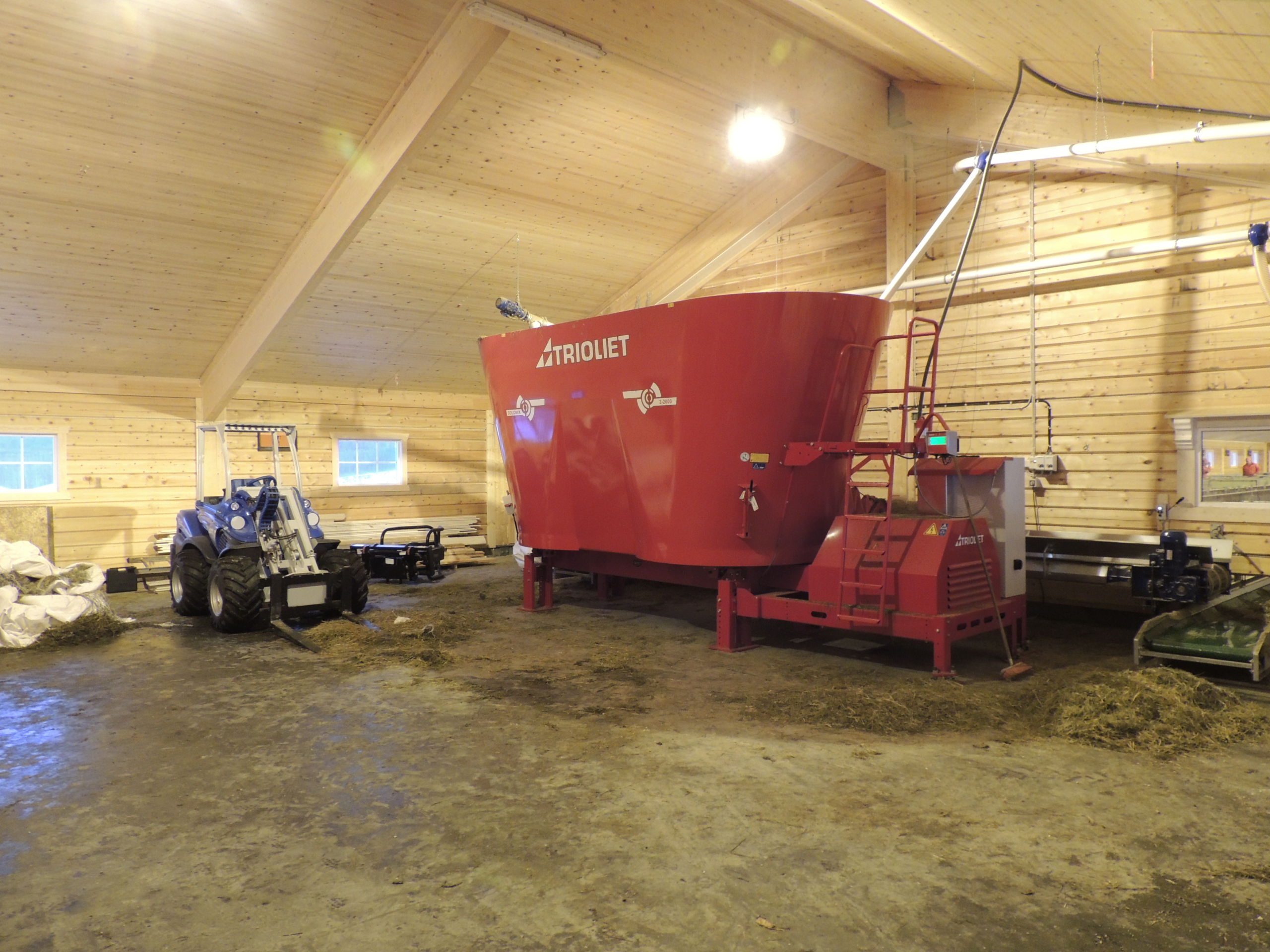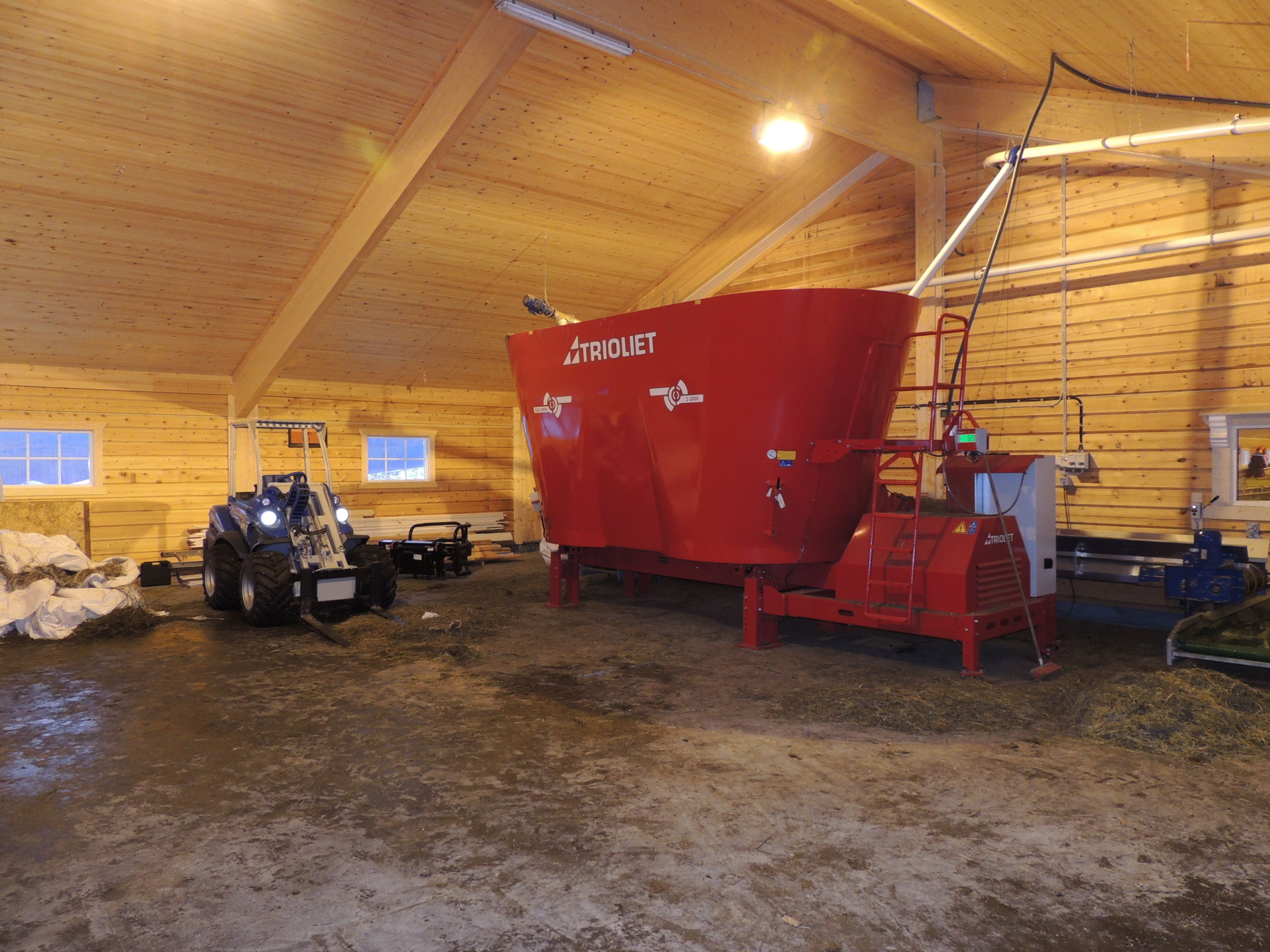 Det nye fjøset er på 64,2m x 15,8m, og har plass til ca 600 sau. Det er MIK Stepper plastrister over hele arealet. Rullende fôrbrett med overgang i midtgang. Bingeskiller med stående spiler og tette glassfiberskiller i ender. Vi har også levert lammegrinder. Big Dutchman ventilasjon, og drikkekar fra Suevia. Lammedrikkeautomater vil også bli tatt i bruk.
