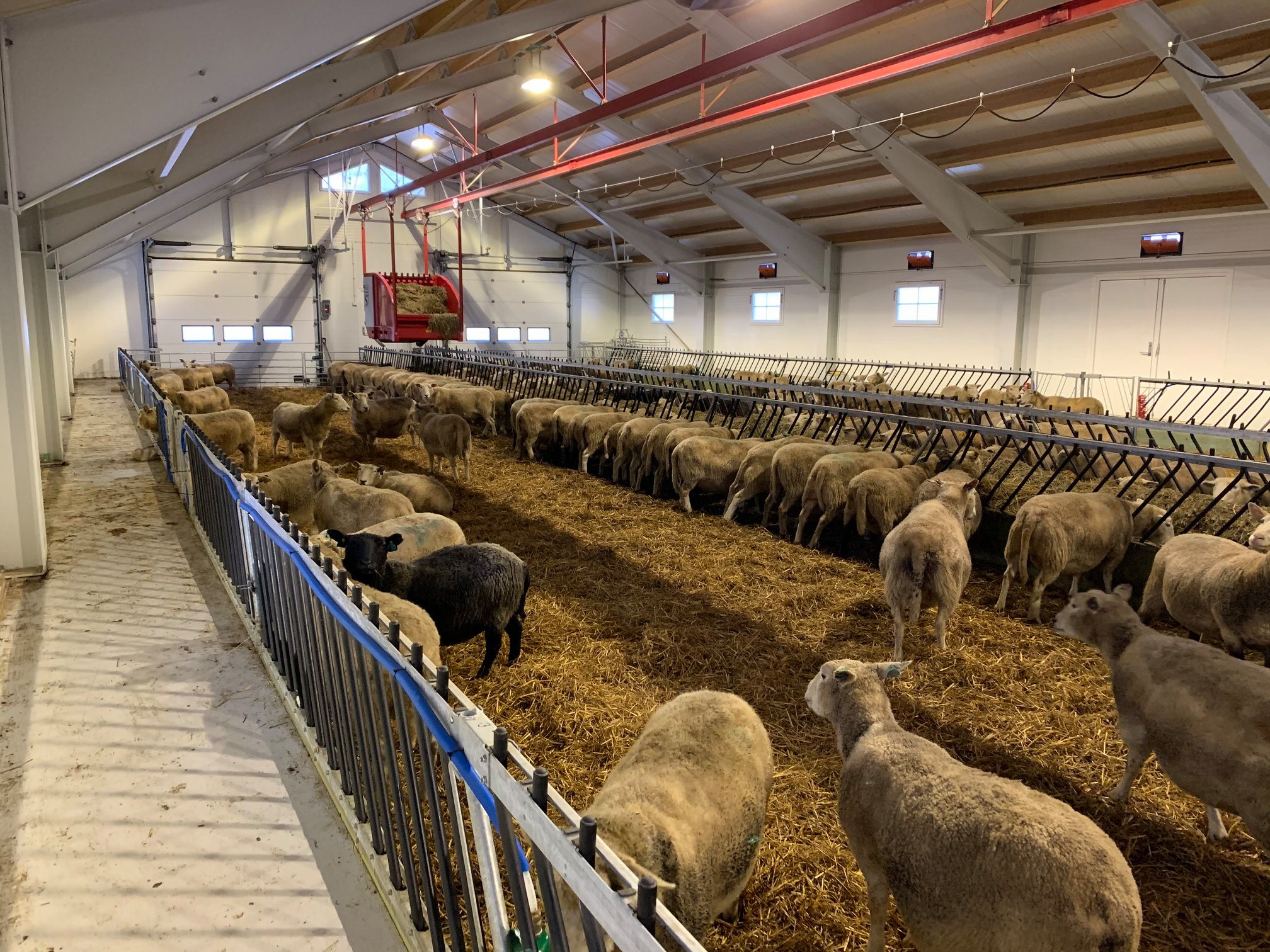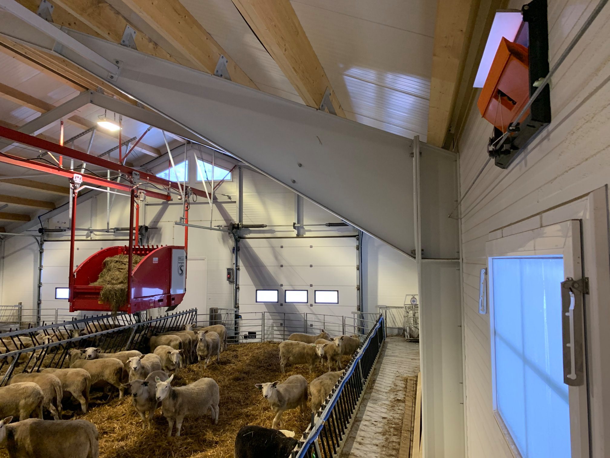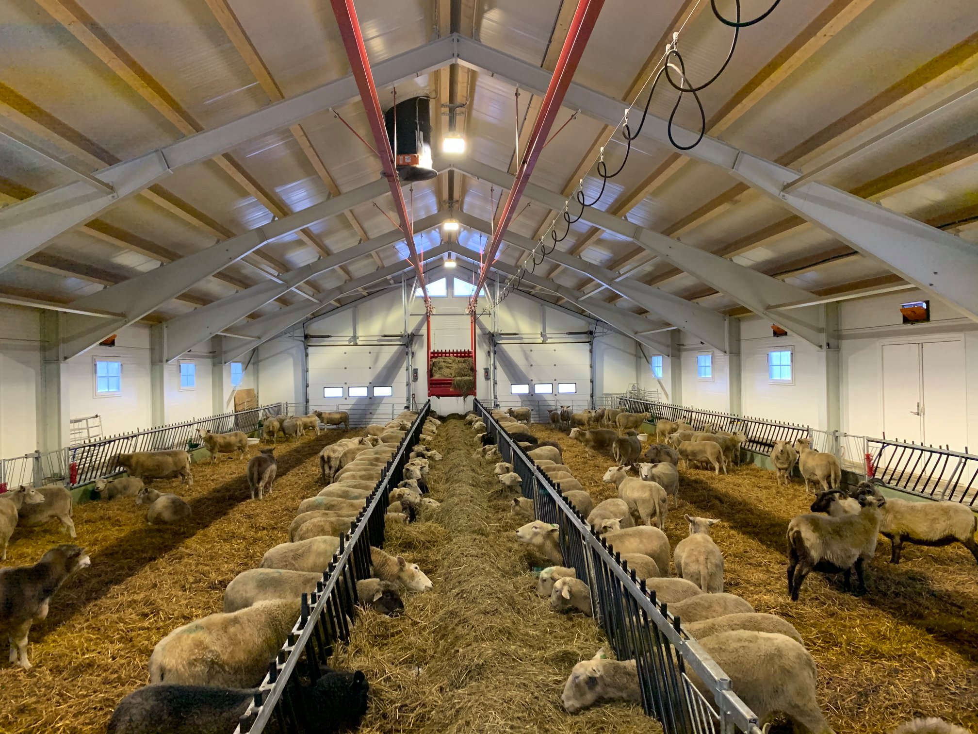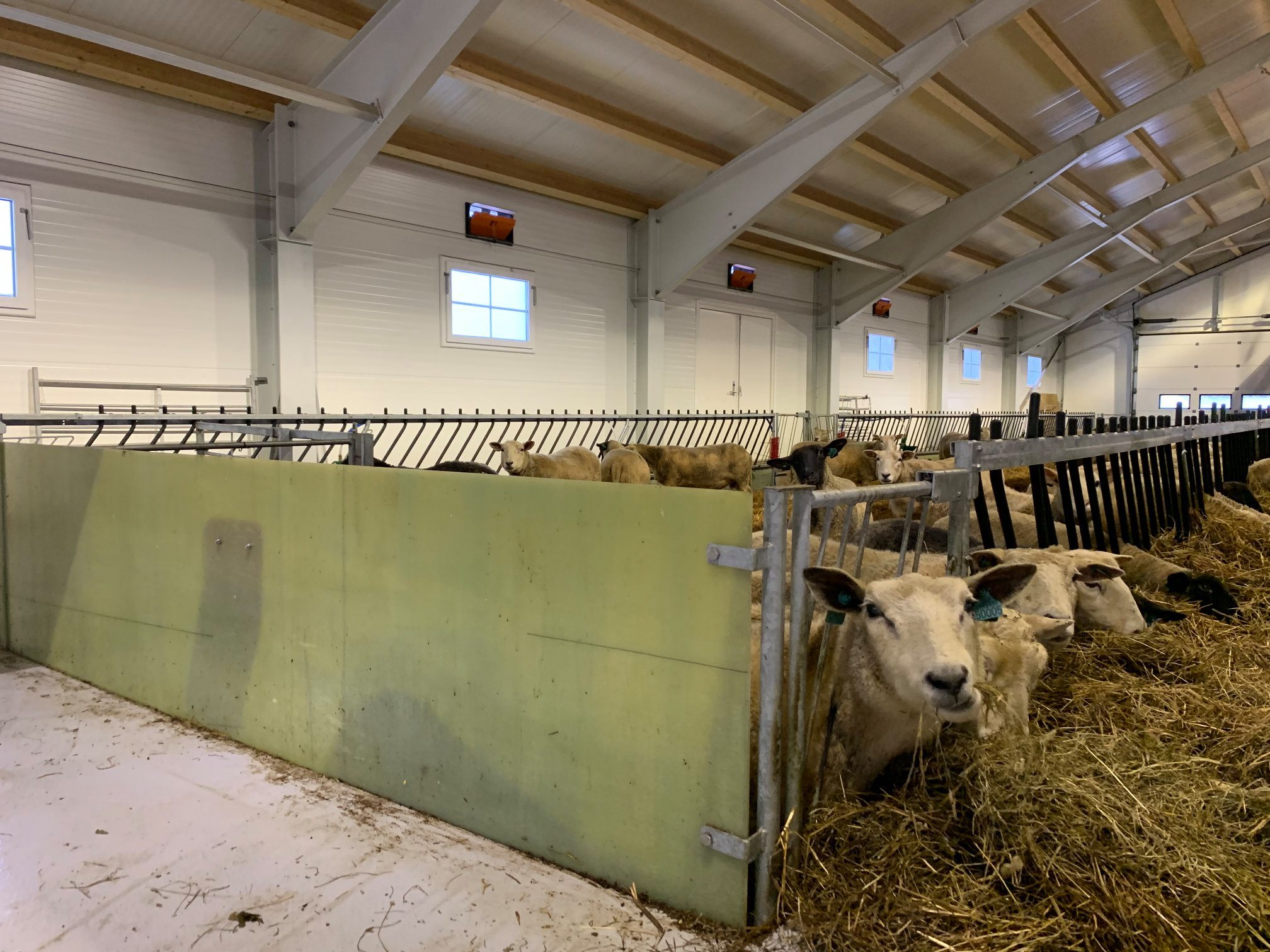 Dette er en totalleveranse fra Fjøssystemer og Fjøssystemer Bygg. Sauen har det romslig og godt med lun og god talle.