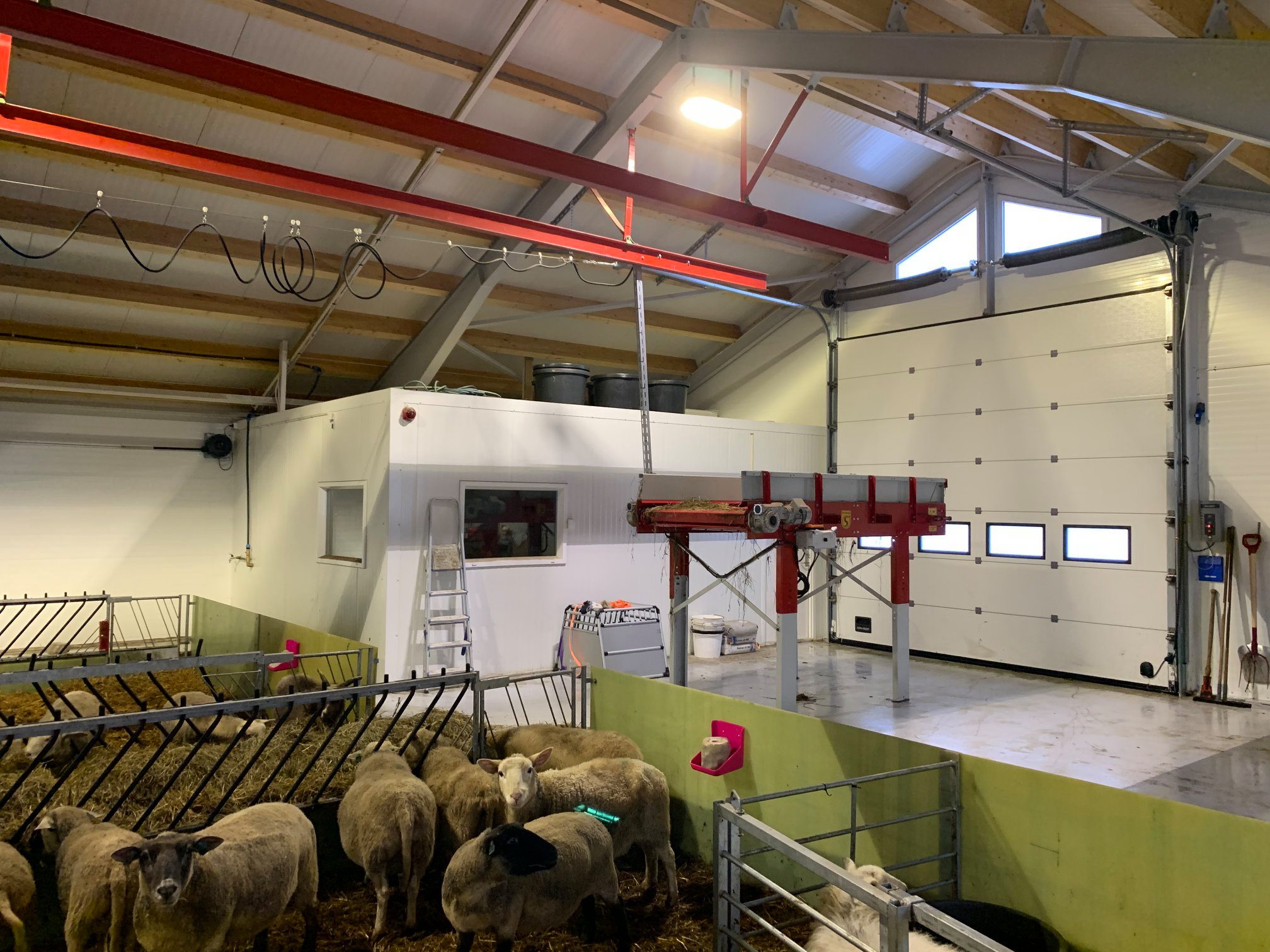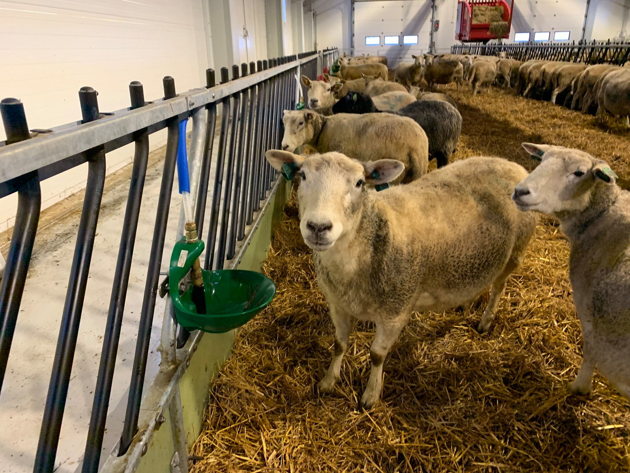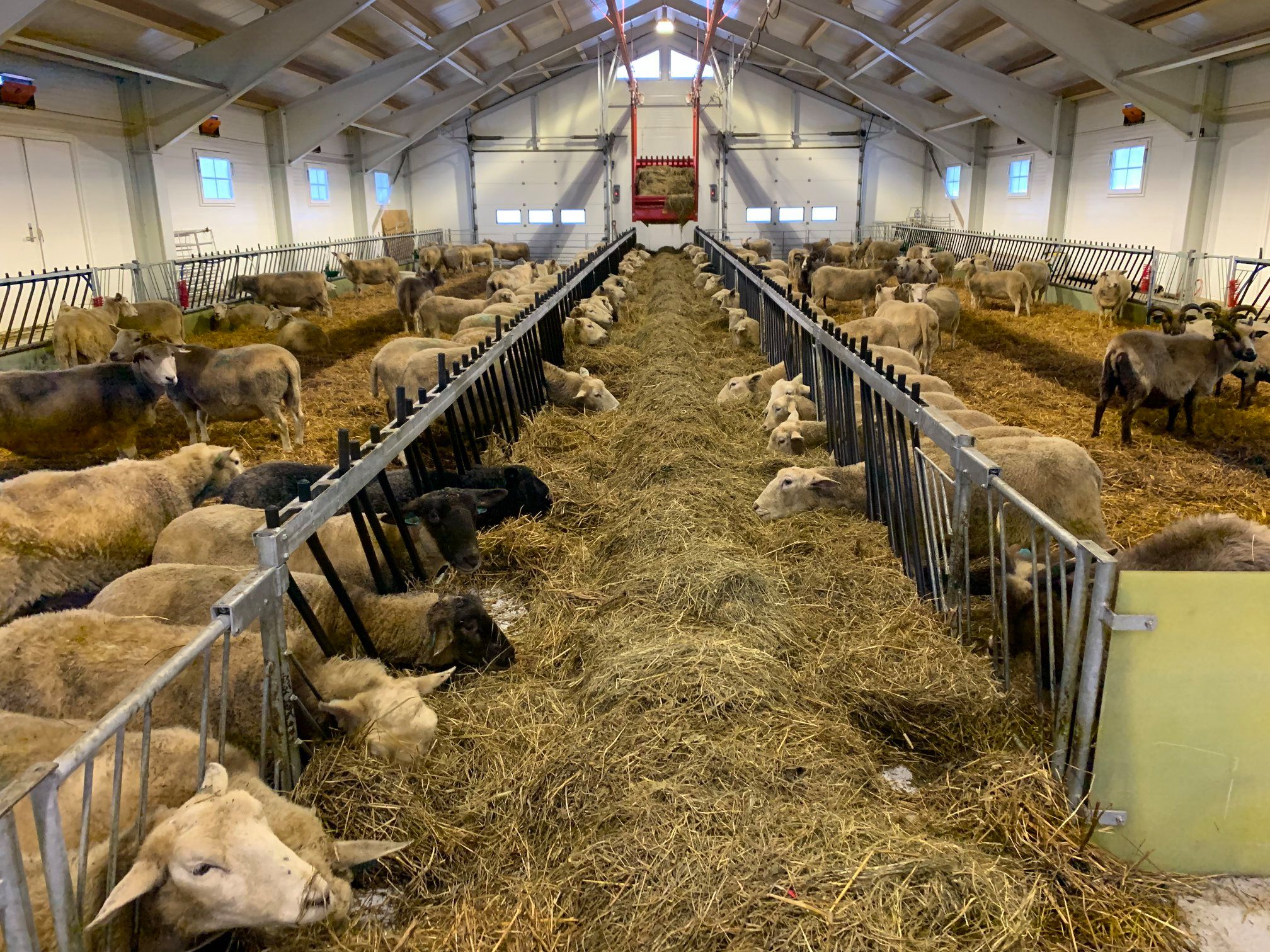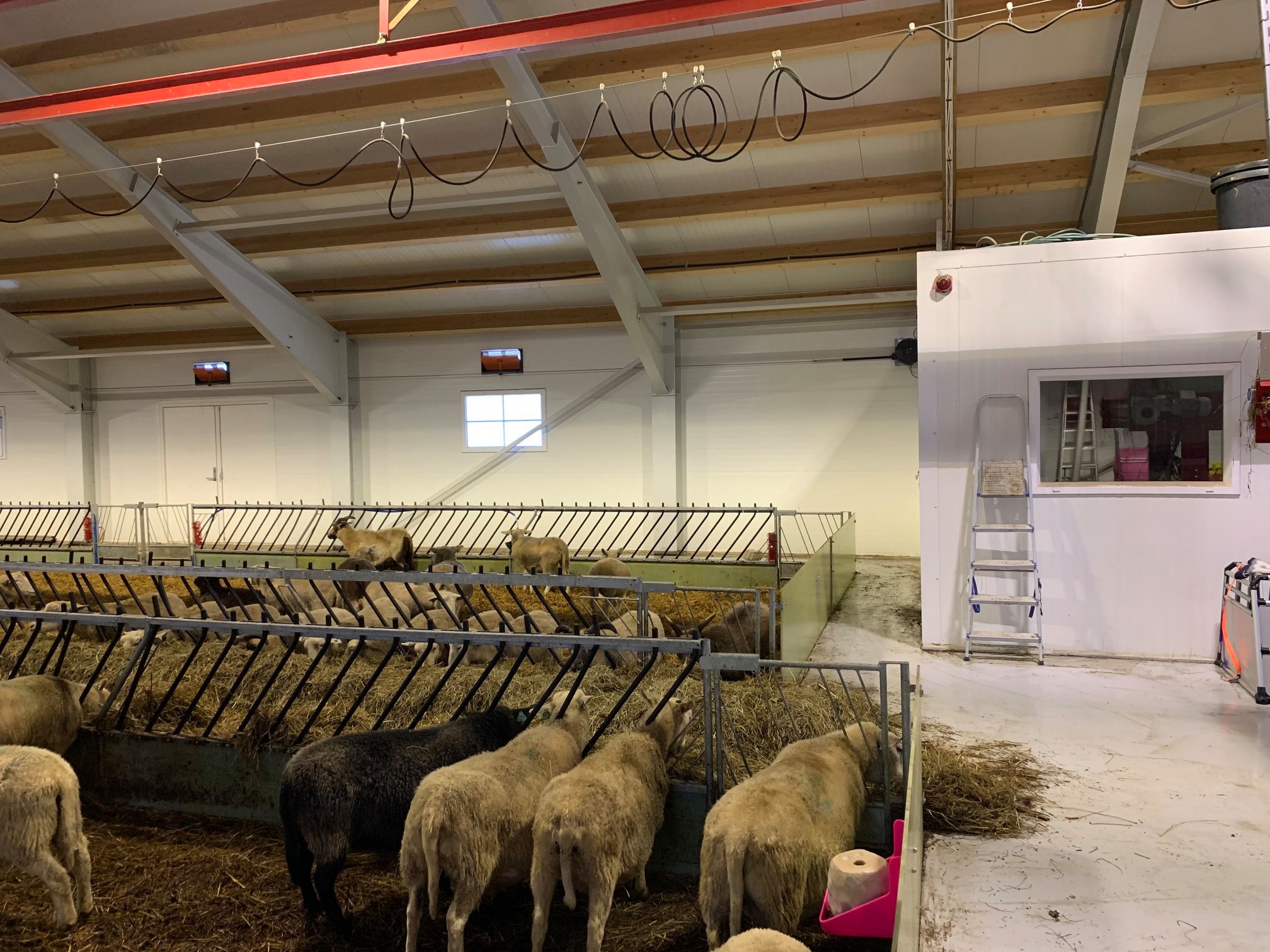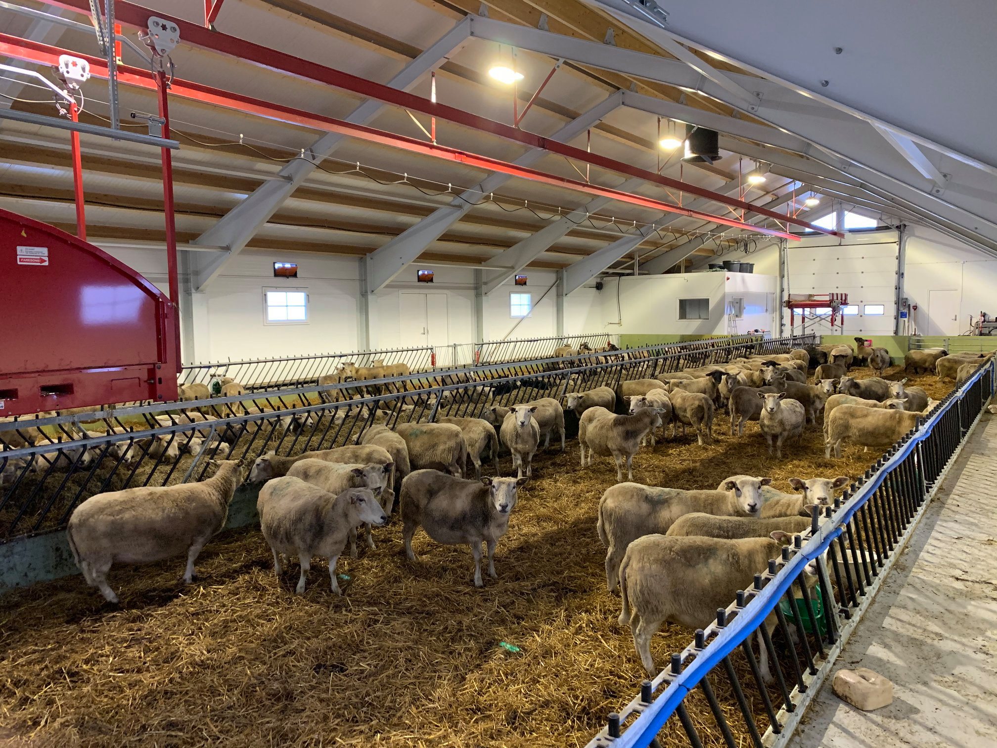 Dette er en totalleveranse fra Fjøssystemer og Fjøssystemer Bygg. Sauen har det romslig og godt med lun og god talle.