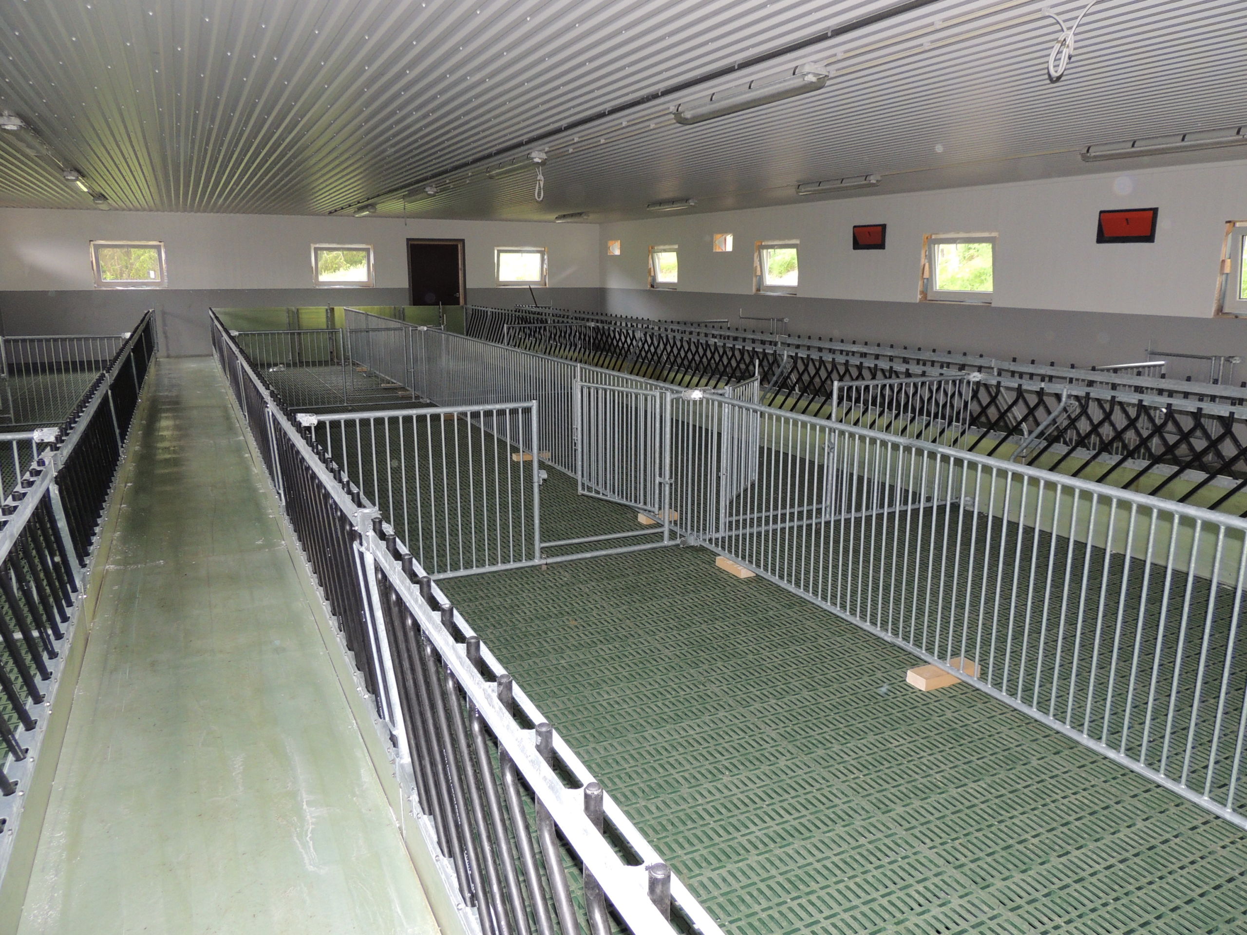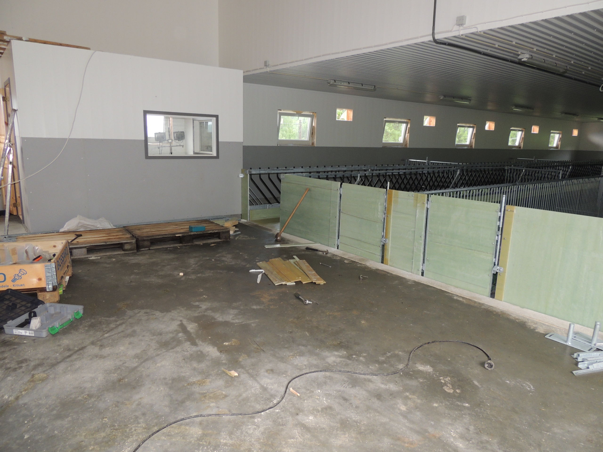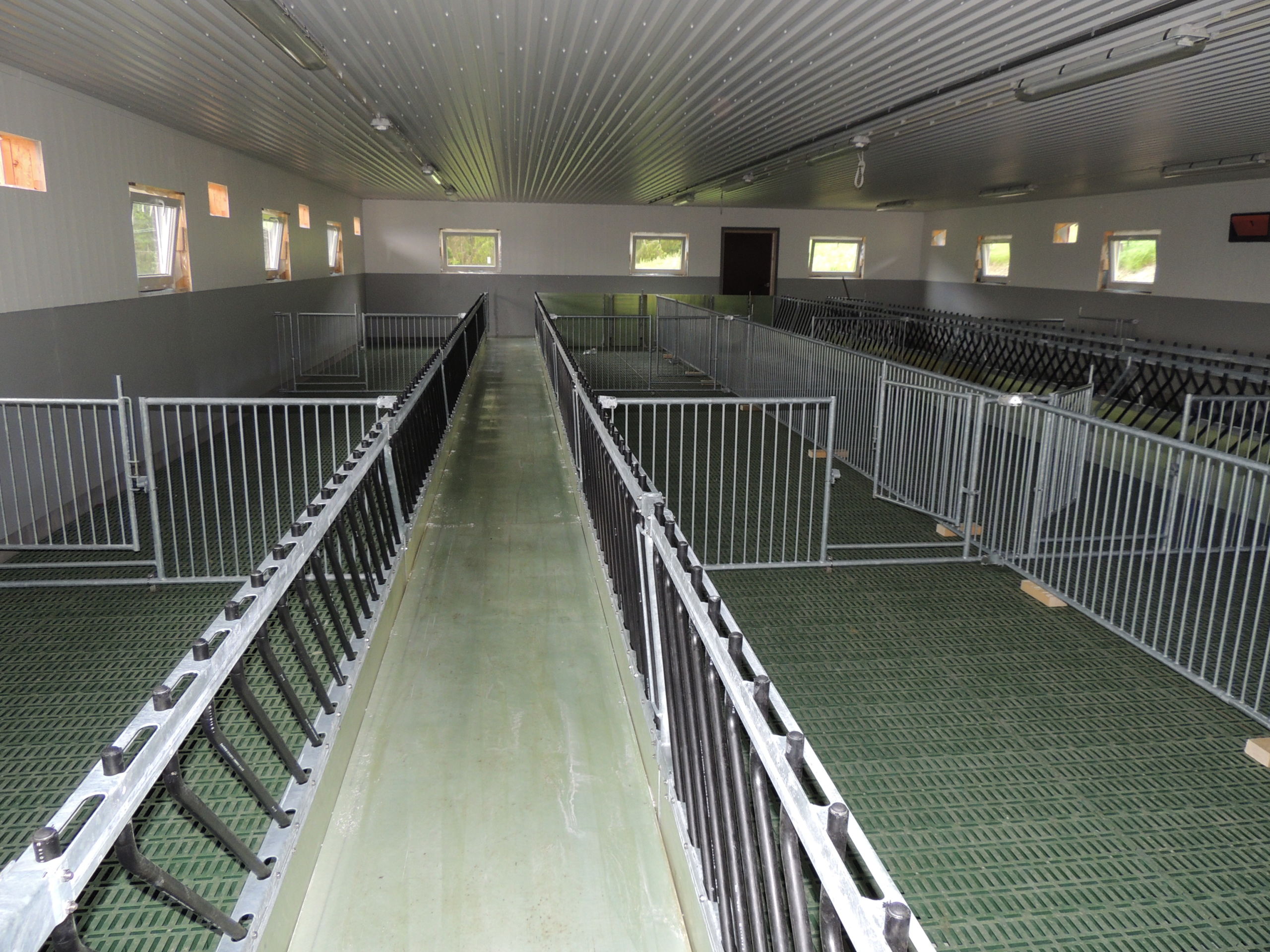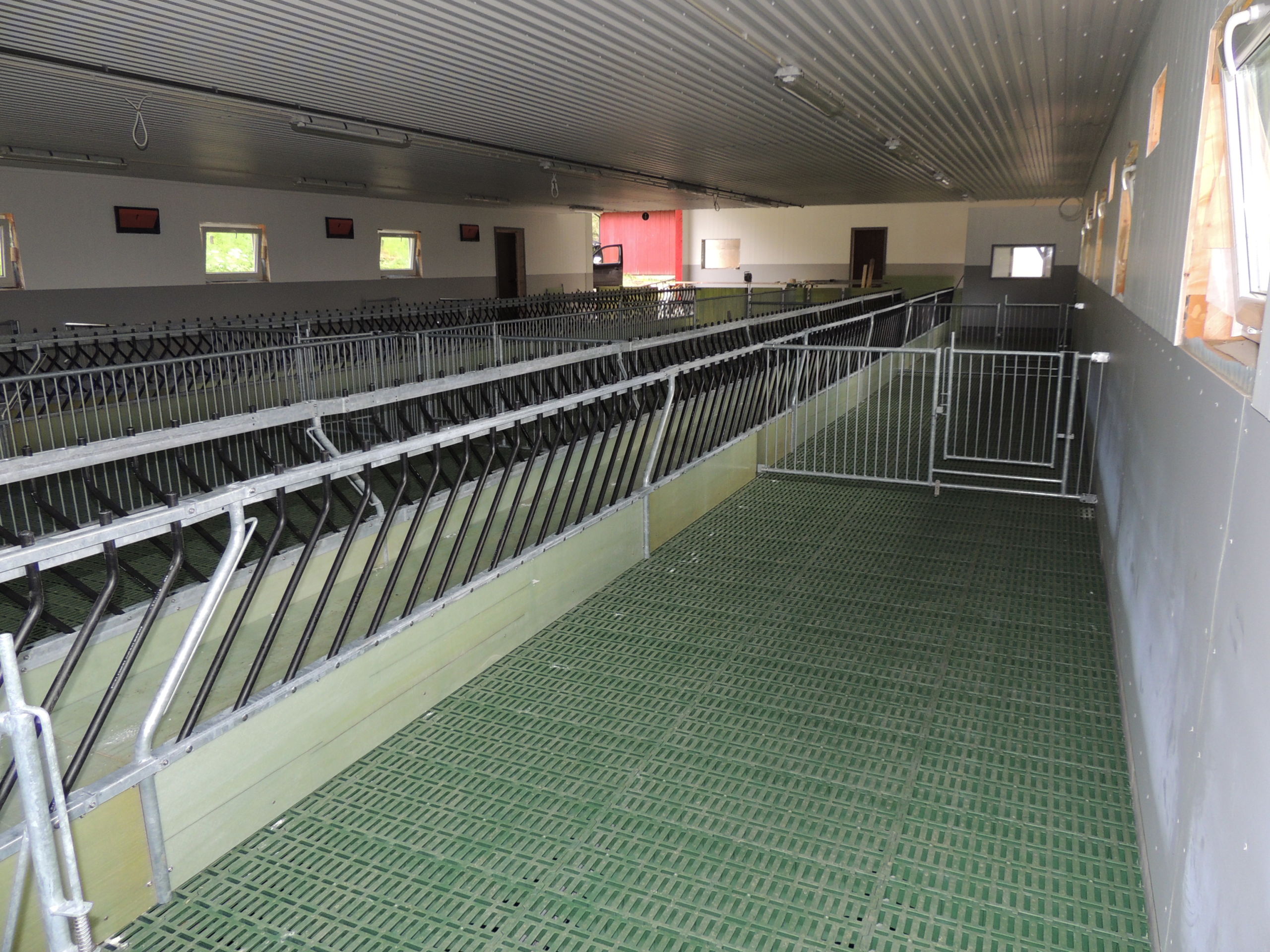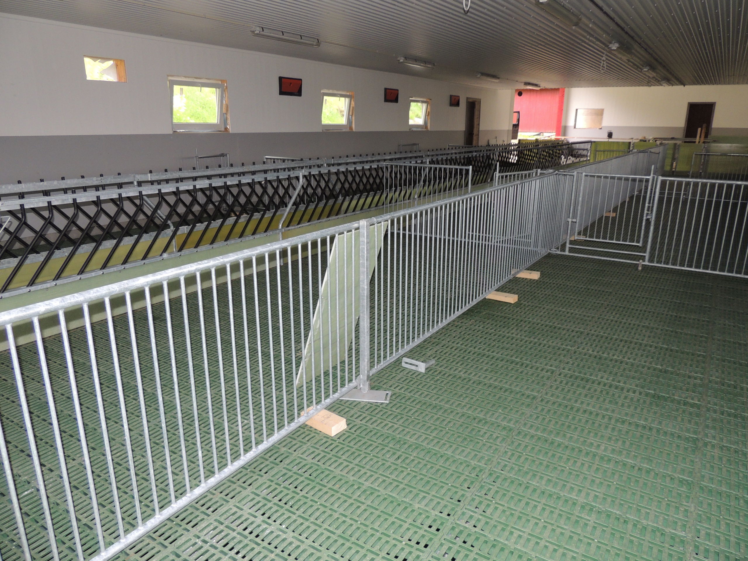 Tilbygget er planlagt for 200 vinterfôra sau. Det er MIK Stepper plastrister på stålbæringer som gulv. Jyden innredning, med lammesikker front med glassfiber, og skiller i glassfiber og med stående spiler. Vi har også levert ventilasjon fra Big Dutchman.