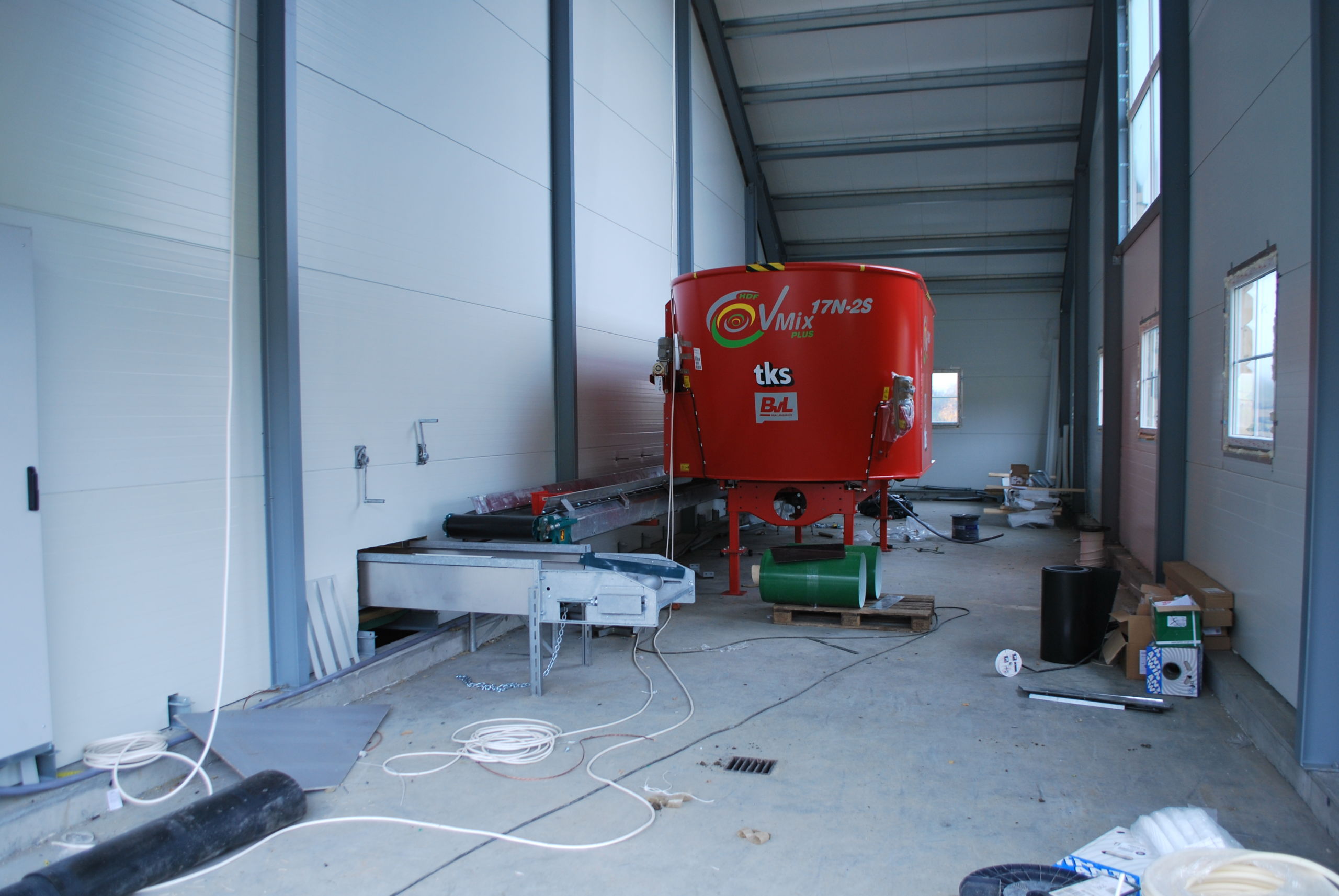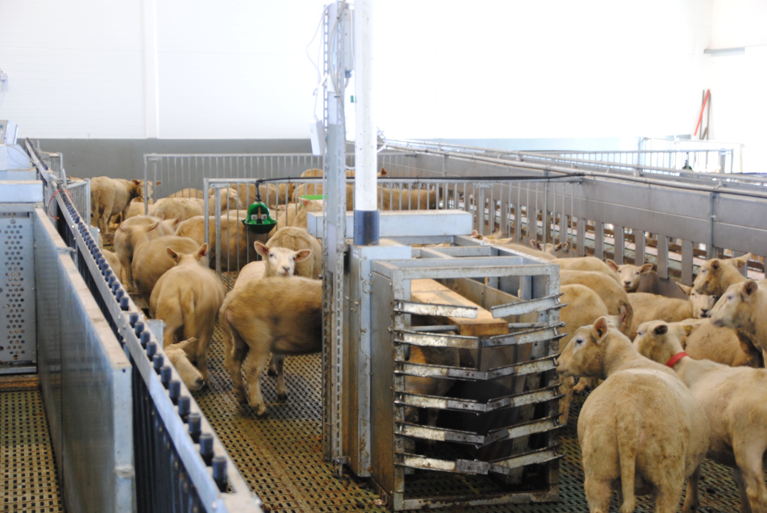 Drivganger rundt hele fjøset, samt i midten sørger for god dyreflyt. De originale MIK Stepper plastristene med sklisikre knotter ligger på bæringer à 5 meter. Tre rullende fôrbrett er montert. Seks av bingene er utstyrt med kraftfôrautomat. For sortering og veiing har Rønn og Rudi valgt helautomatisk vekt fra Fjøssystemer.