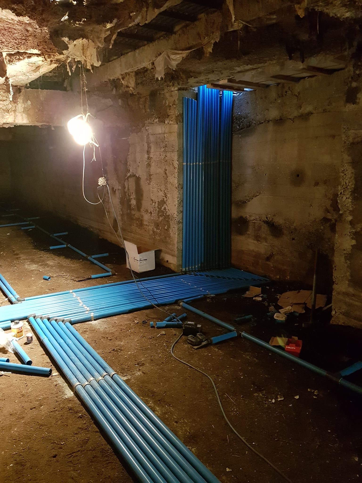 Dette er en fenomenal løsning for eksisterende kjellere som er vanskelig å få rørt opp, og ved tilbygg som «låser» adkomst til gamle kjellere. Et anlegg kan prosjekteres til å dekke flere kjellerrom som ligger i tilknytning til hverandre, slik at man kun etablerer en felles pumpe-/utlastingskum.