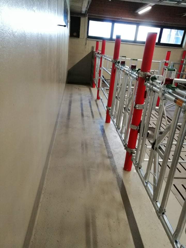 Eksisterende melkestall ble tatt ut og melkegrava ble bygd om til gjødselkum med spalter. Wopas stolper ble støpt fast og liggeplatting med båsmatte ble etablert. Drikkekar og innredning ble til slutt montert.