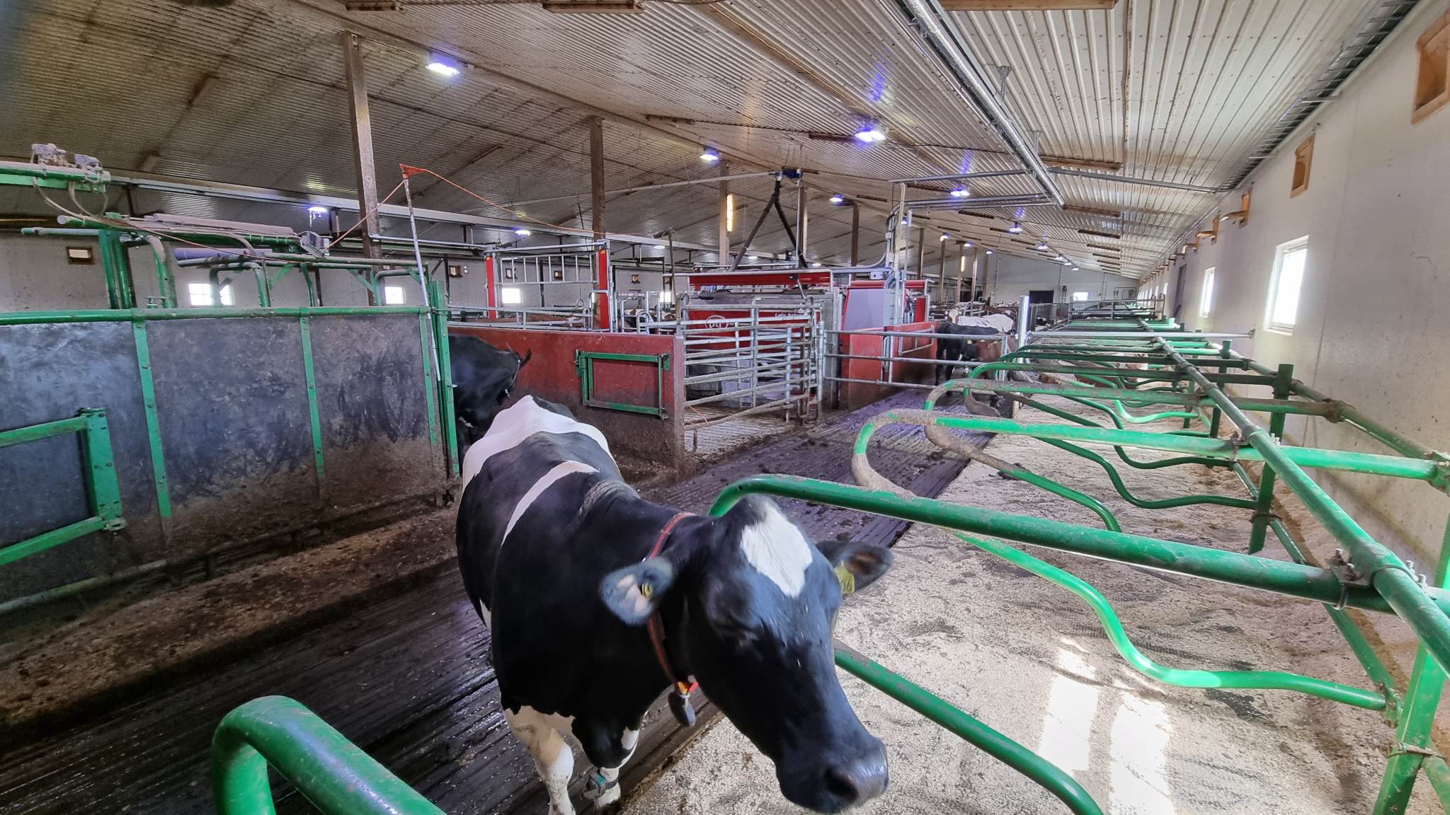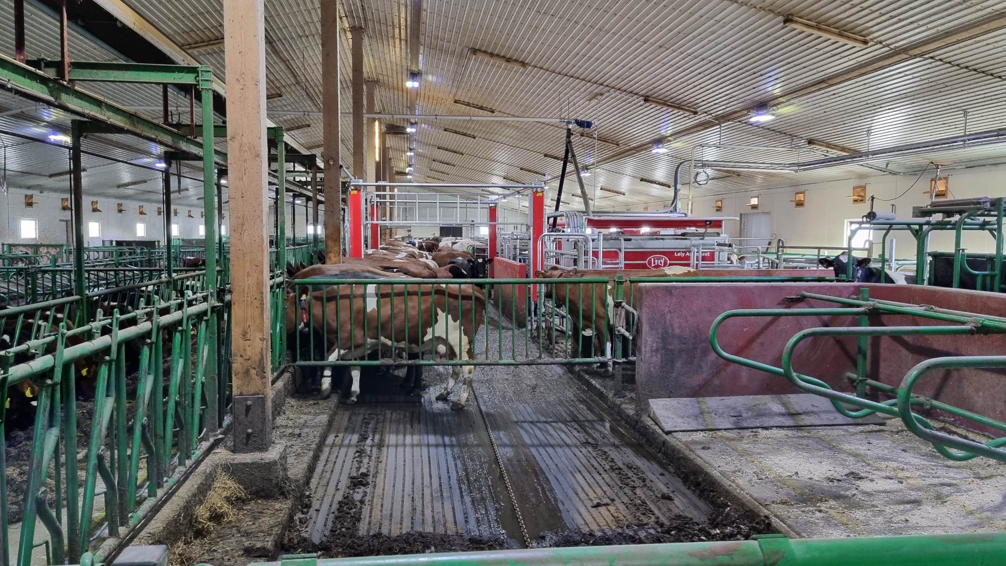 Melkerobotene er plassert der det tidligere var dobbeltrekke liggebås, og drifta av gjødseltrekket har vært opprettholdt gjennom hele ombygginga. Det store området der melkekarusellen står ble bygd om til liggebåser og sinkuavdeling. Vi fikk dermed melkerobotene sentralt plassert i fjøset med en stor produksjonsavdeling på den ene siden og en god fokusavdeling på den andre siden. Sinkua kan fôres separat og kommer nær den romslige kalvingsavdelingen på dypstrø.