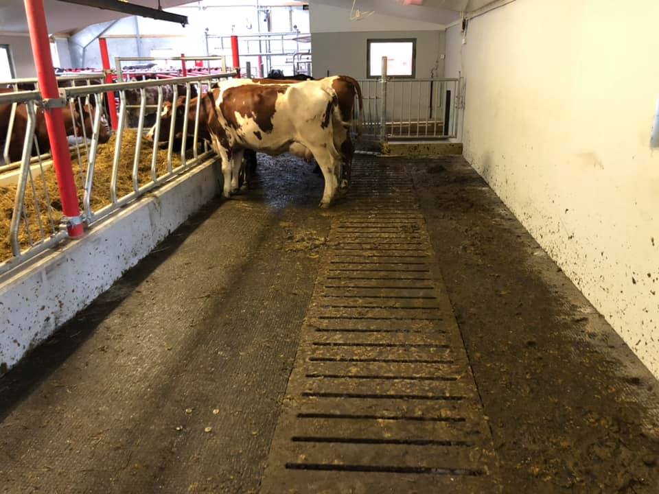 En smekker løsning med spalt og full kjeller under nybygget, i det gamle fjøset er det bygget nytt fôrbrett og lagt spalter i eksisterende renner.
