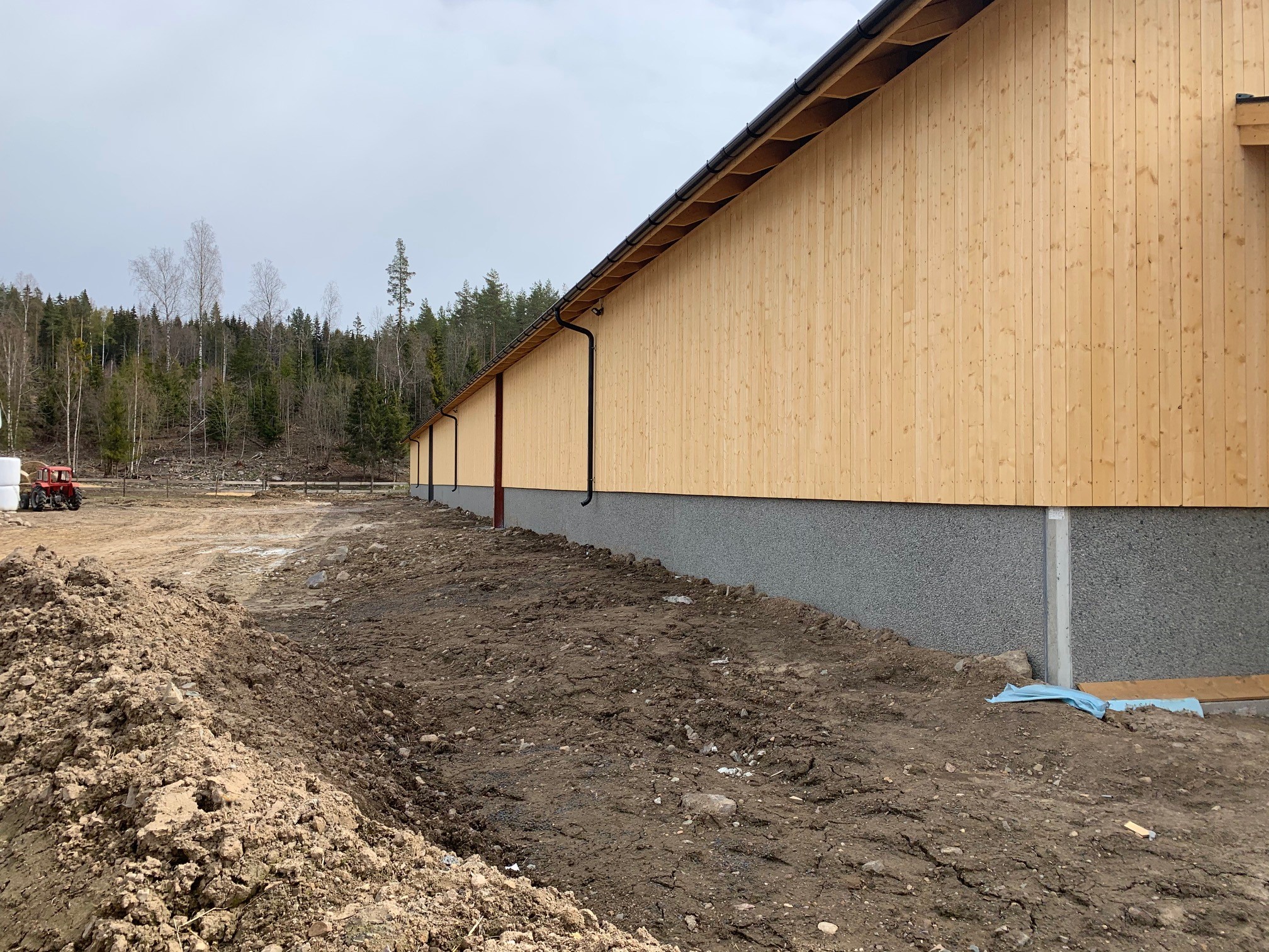 Bygget er satt opp av Simen Bru Eiendomsservice AS og er satt opp med takstoler og reisverksvegger.