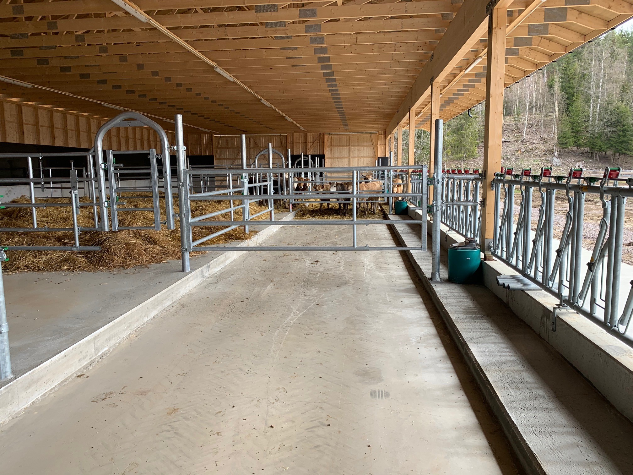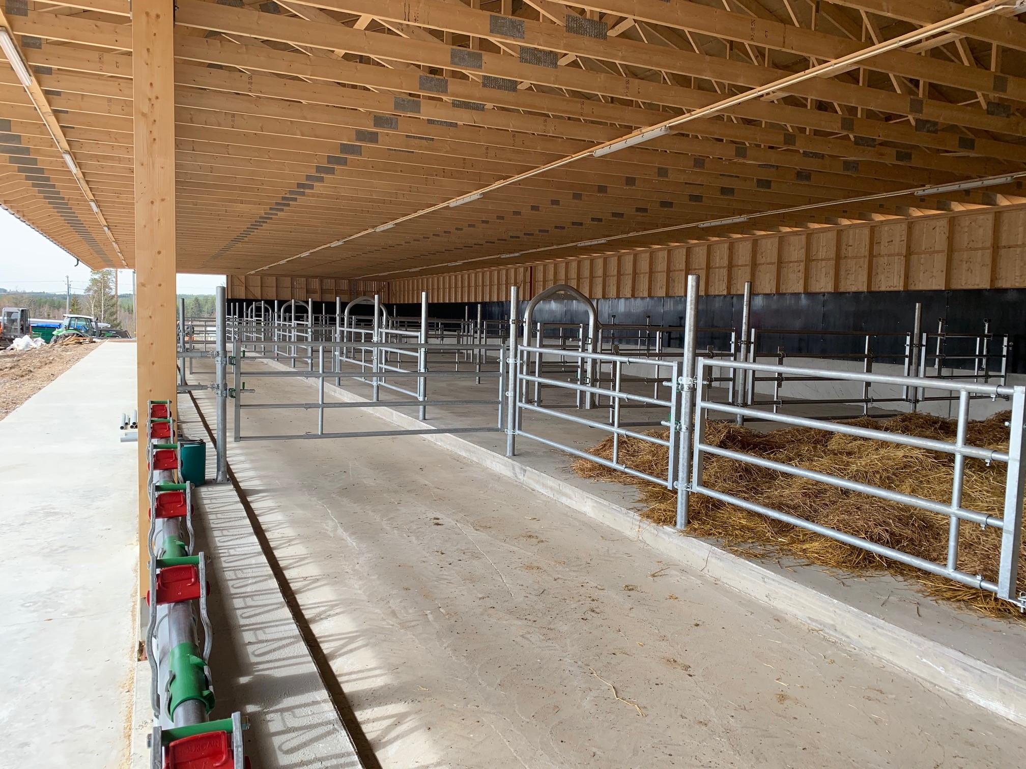 Hos May Iren og Jarl Wegard Røise i Jømna rett ved Elverum, har vi vært med å planlagt og levert innredning til et ungdyrfjøs.