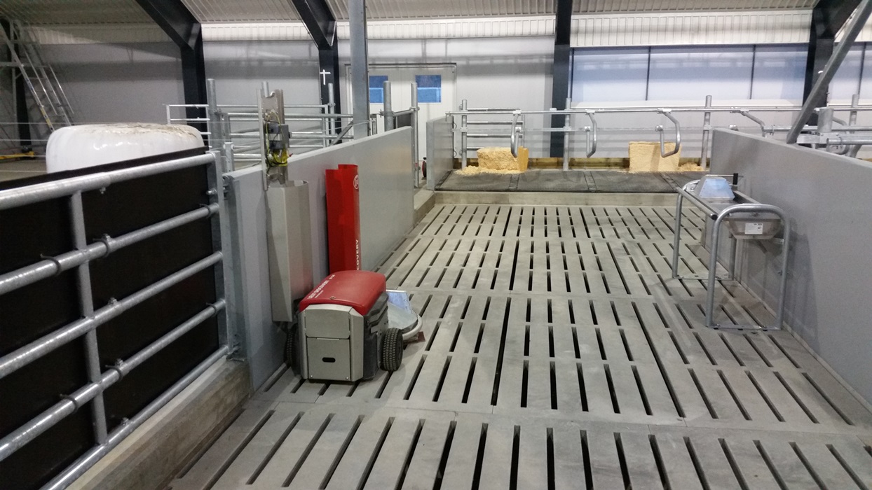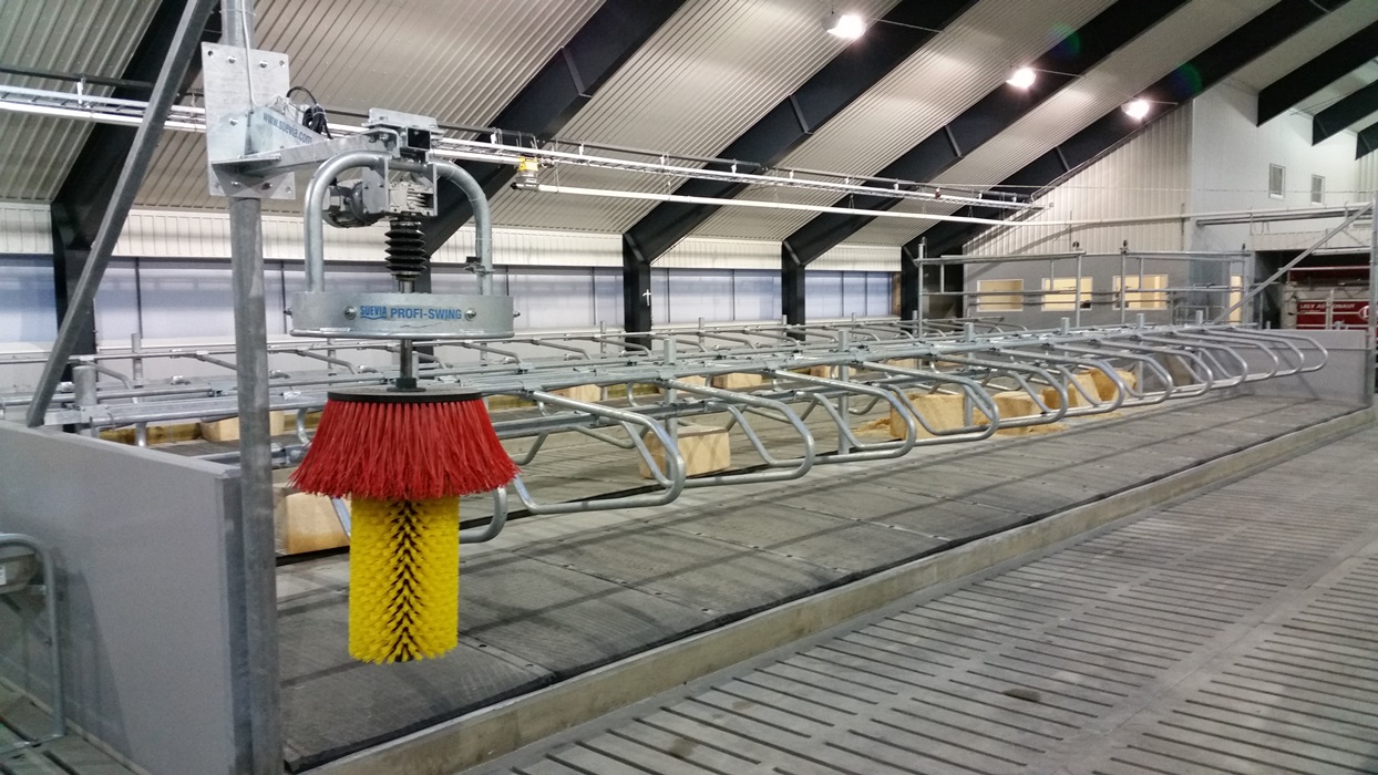 Fjøset har spalter, som rengjøres med en Lely Discovery. I liggebåsene for melkekuene er det Wingflex gummimatter. Melkinga sørger en Lely Astronaut A4 Manager for. Grovforet serveres på forbrettet både i nybygg og eksisterende bygg av Lely Vector foringsrobot.