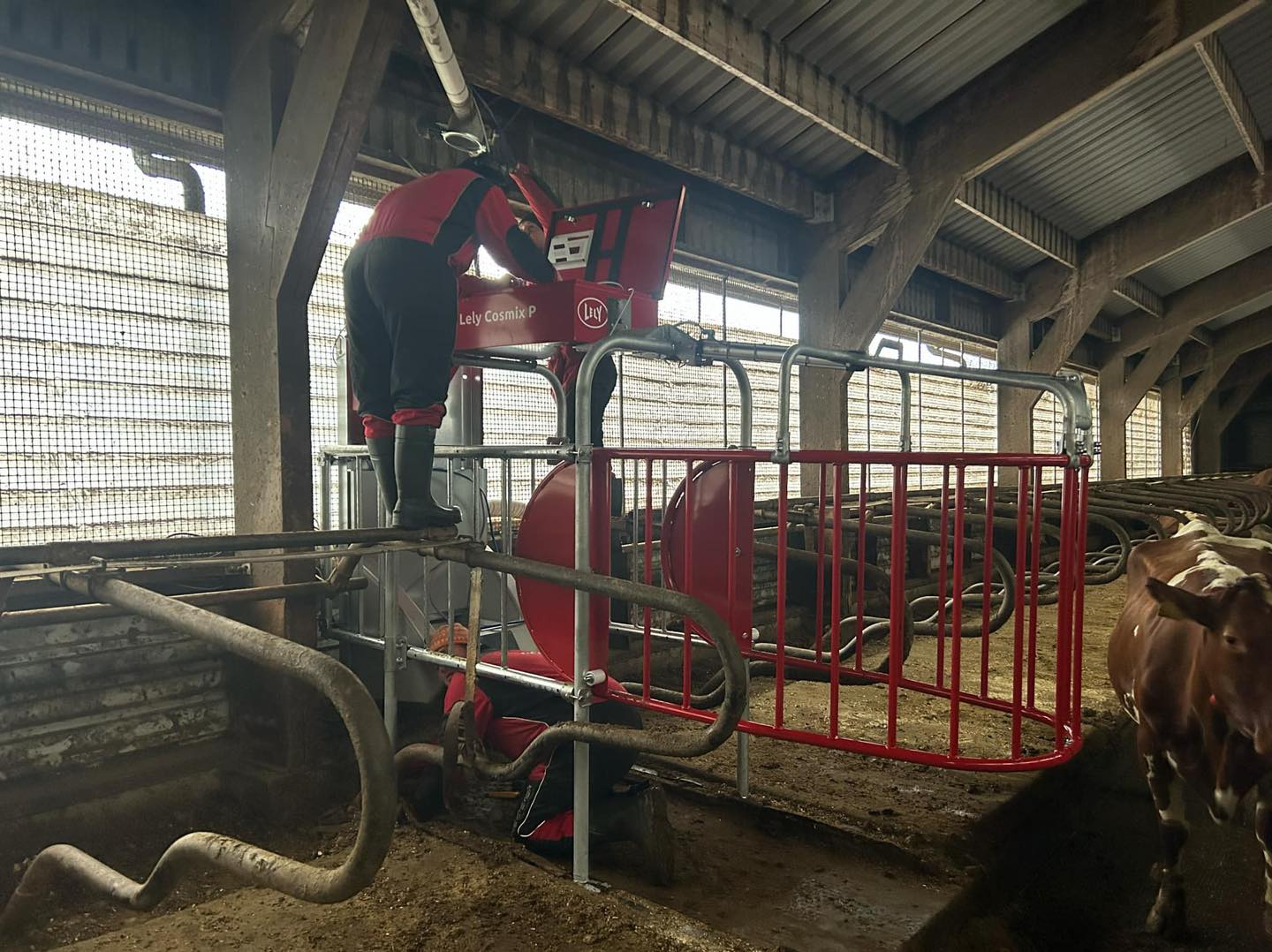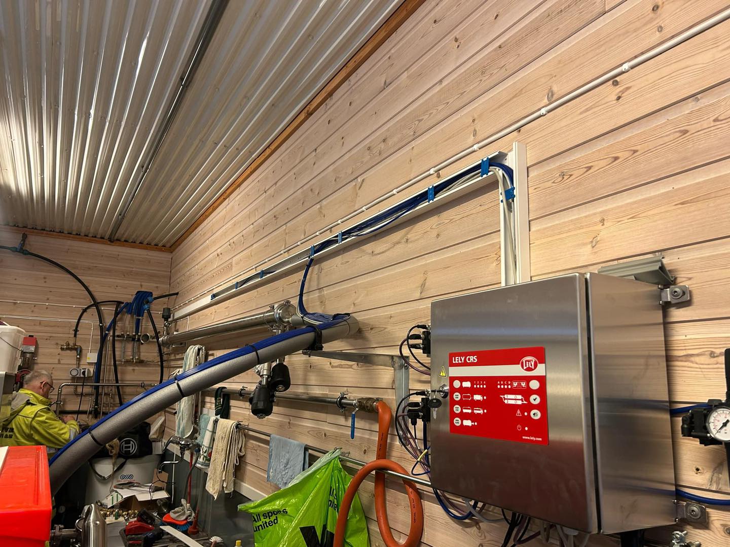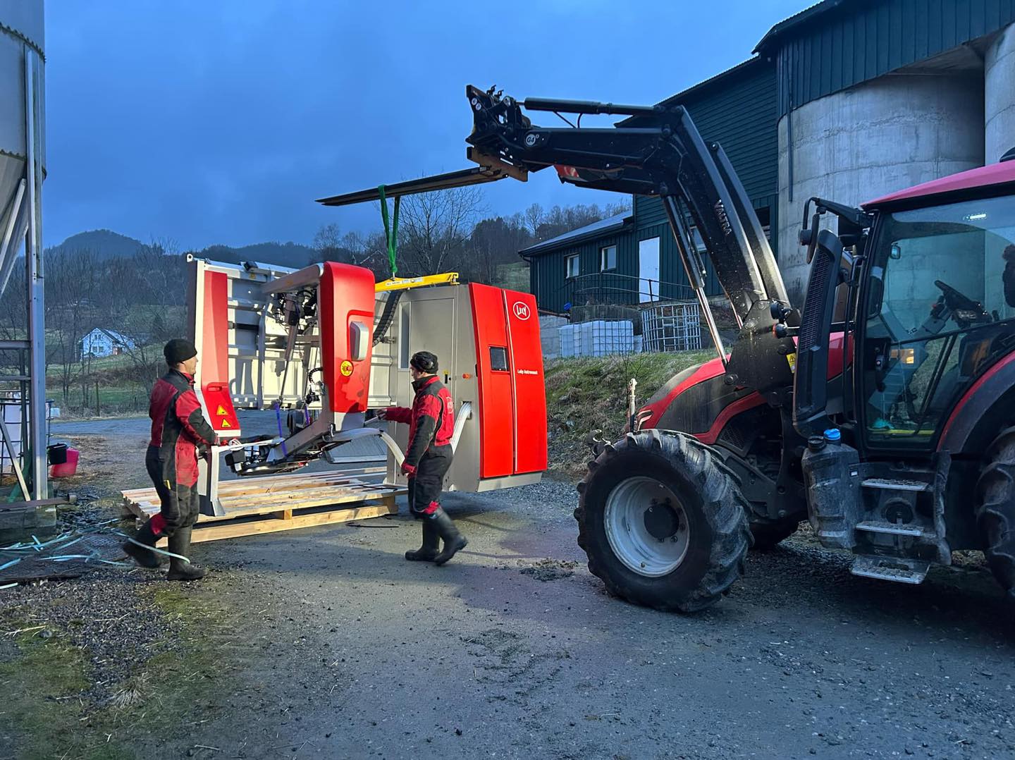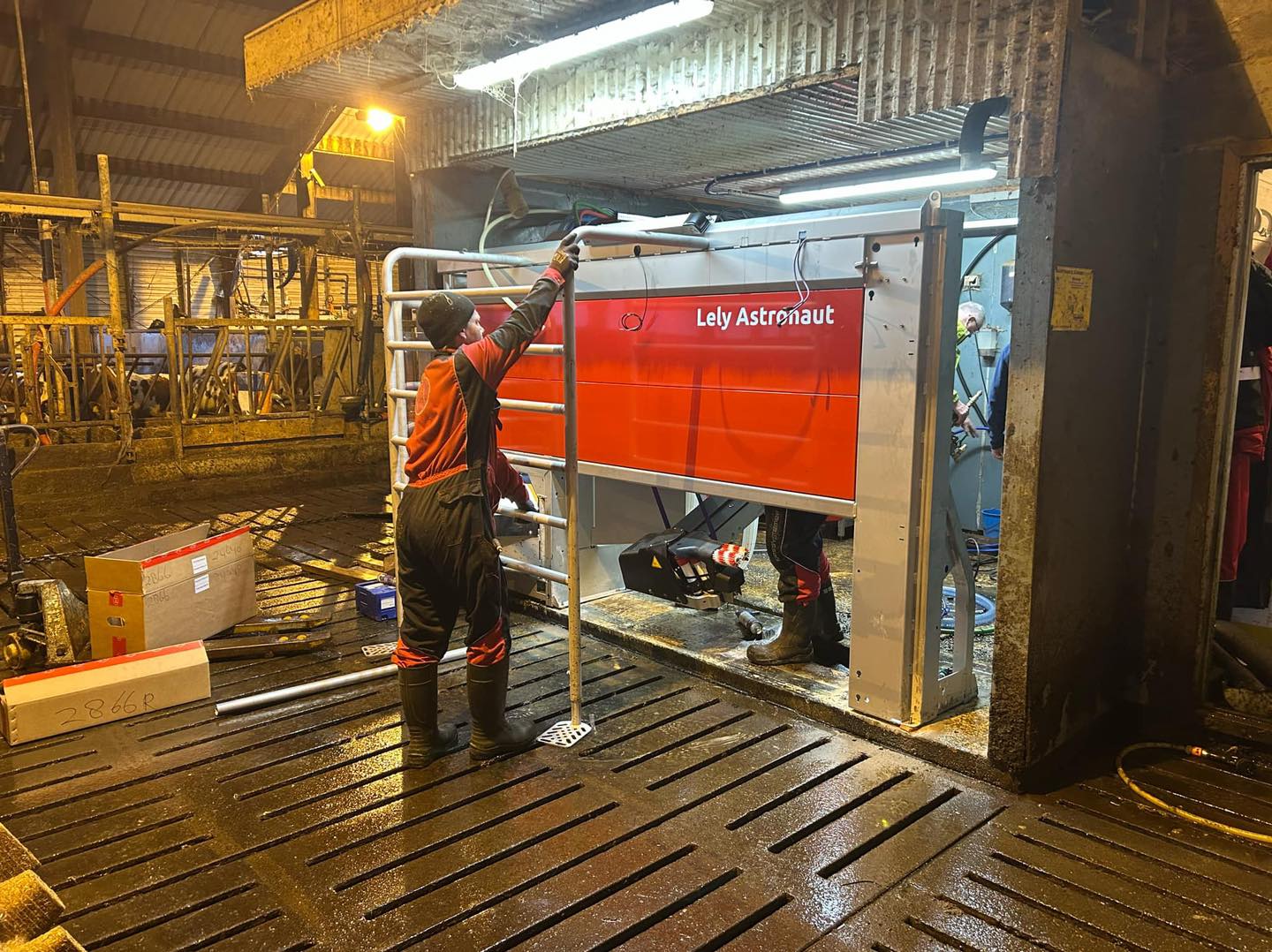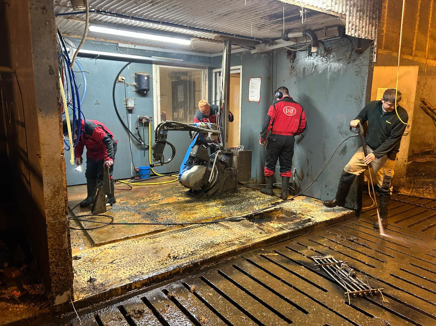 Mykje må klaffa på ein dag som detta når 55 mjøkekyr skal få seg ny mjølkerobot. Tankservice, tankbil, røyrleggar, elektriker, Lely-teknikere, dyr og ikke minst bonde sjølv. Fantastisk innsats og samspel mellom alle involverte partar!