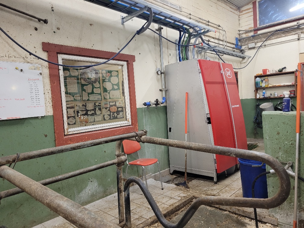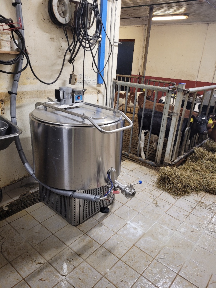 I tillegg har vi levert 2 stk. Lely Cosmix kraftforstasjoner. Melkeledning går direkte til egen melketank for melk til kalv.