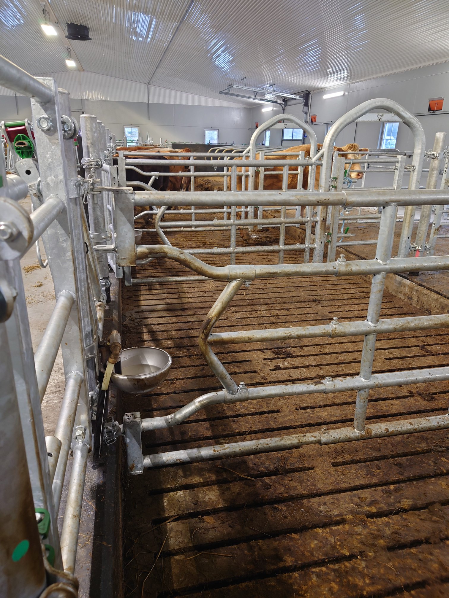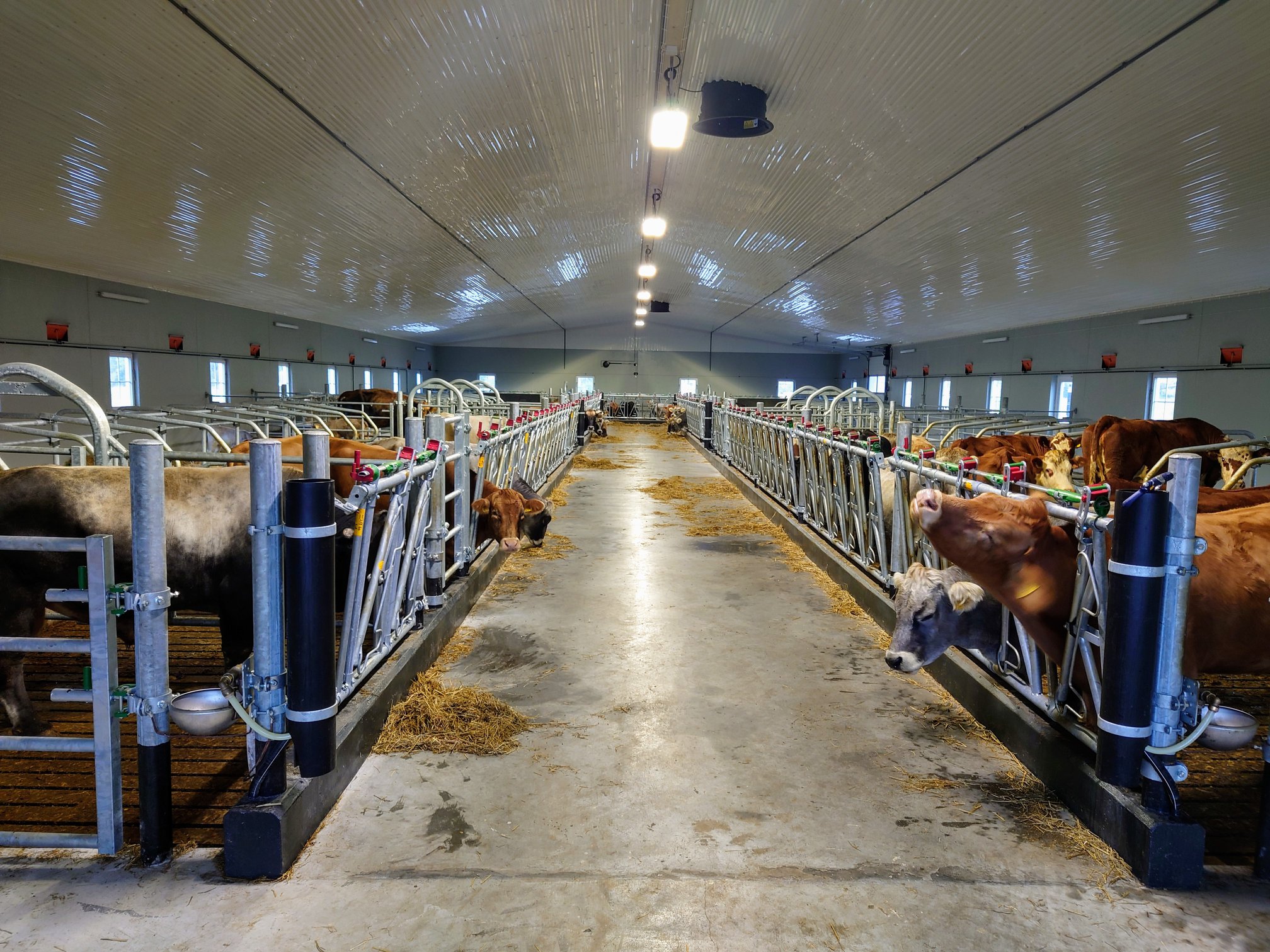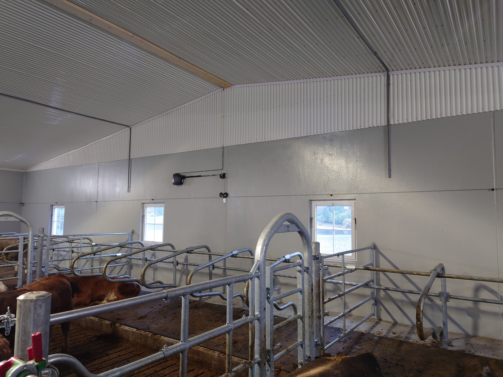 Fjøset er bygget for 42 mordyr i tillegg til 18 påsett og egen binge for avlsokse.