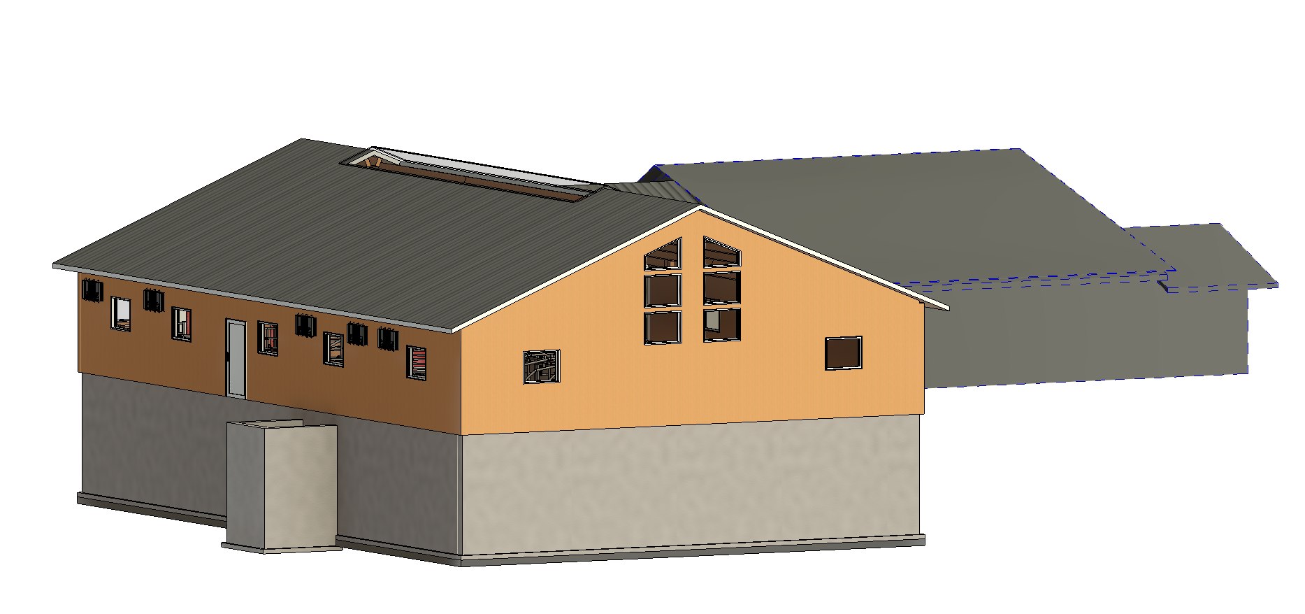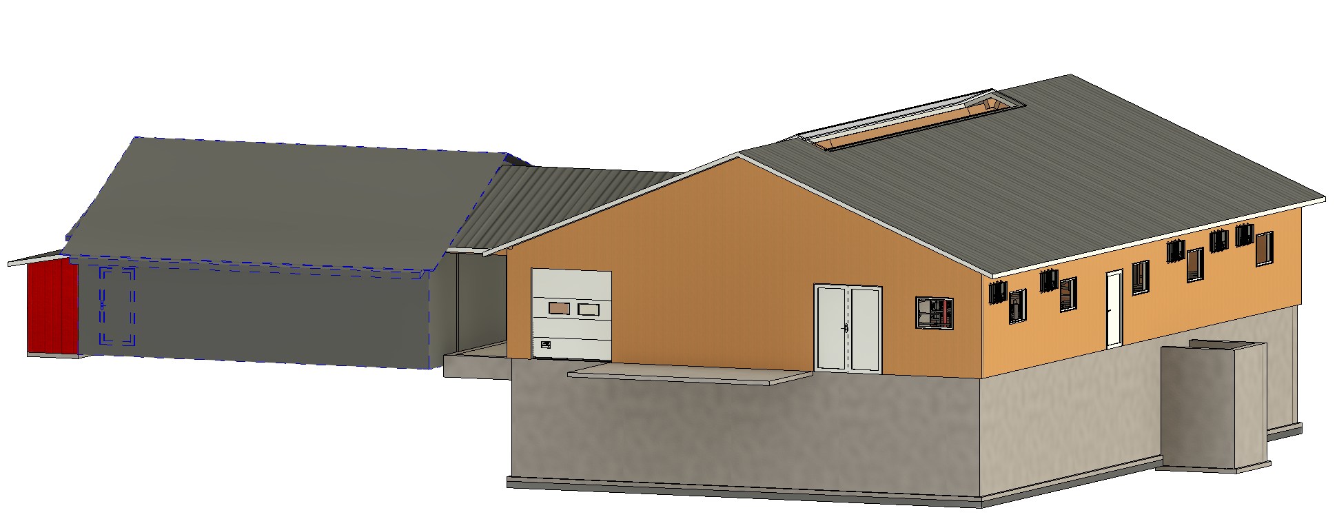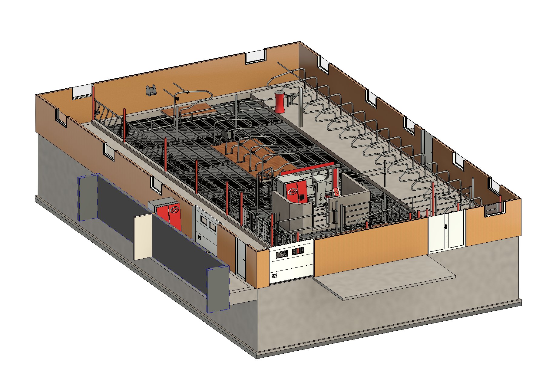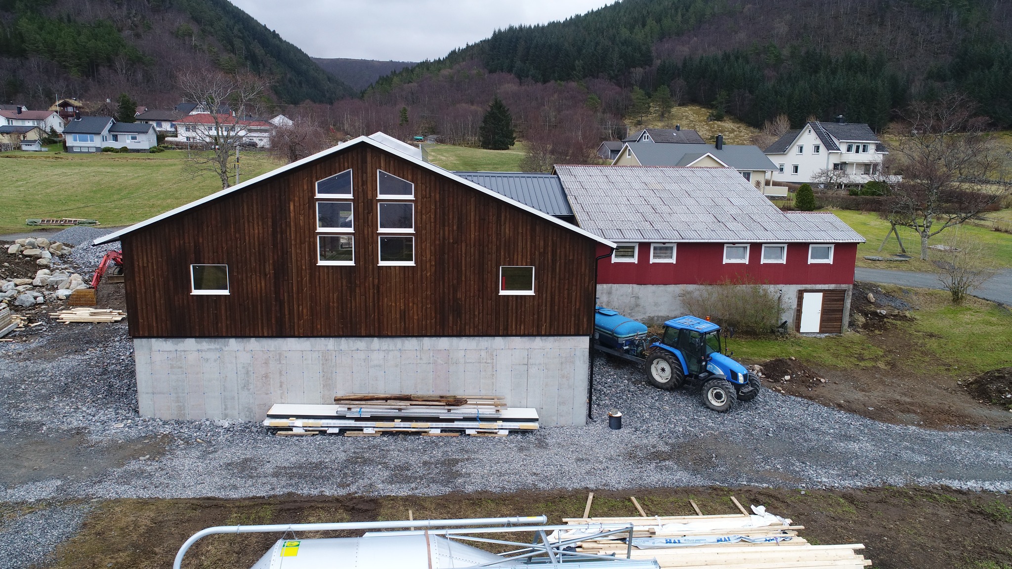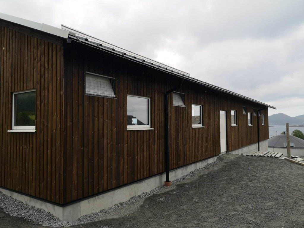 Ilag med byggherre har vi planlagt og levert ei løysing med nytt frittståande bygg som tilbygg/påkopling til eksisterande. Nybygg oppført med full gjødselkjeller, stålrammekonstruksjon med massivtrevegg og Møreroyal kledning (24 meter til Nordsjøen so her er kvalitet høgt prioritert). 80/120mm sandwichpanel som isolert tak med luftemøne. I fjøset er det temperaturstyrt naturleg ventilasjon med ekstra store veggventiler og utlufting i mønet. Eit fjøsbygg med særs godt klima!
