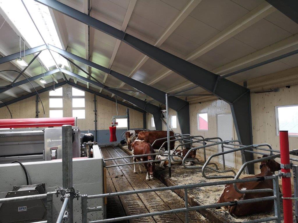Oppstart har gått fint – i ei tøff satsing med meir enn dobling av produksjon. Frå 8 mjølkekyr i eksisterande fjøs – til 20 liggebåser i lausdriftsfjøset. Fjøset er planlagd som rein mjølkekufjøs med velferdsavdeling/føde-/seleksjonbinge i fleksibel løysing med hjelp av heveport (som byggherre er særs godt nøgd med). Ungdyr og rekrutteringsgruppe skal oppalast i «gamlefjøset» med ny planløysing.
