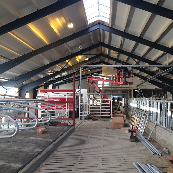 Det nye fjøset hos Denstad blir et topp moderne melkekufjøs.