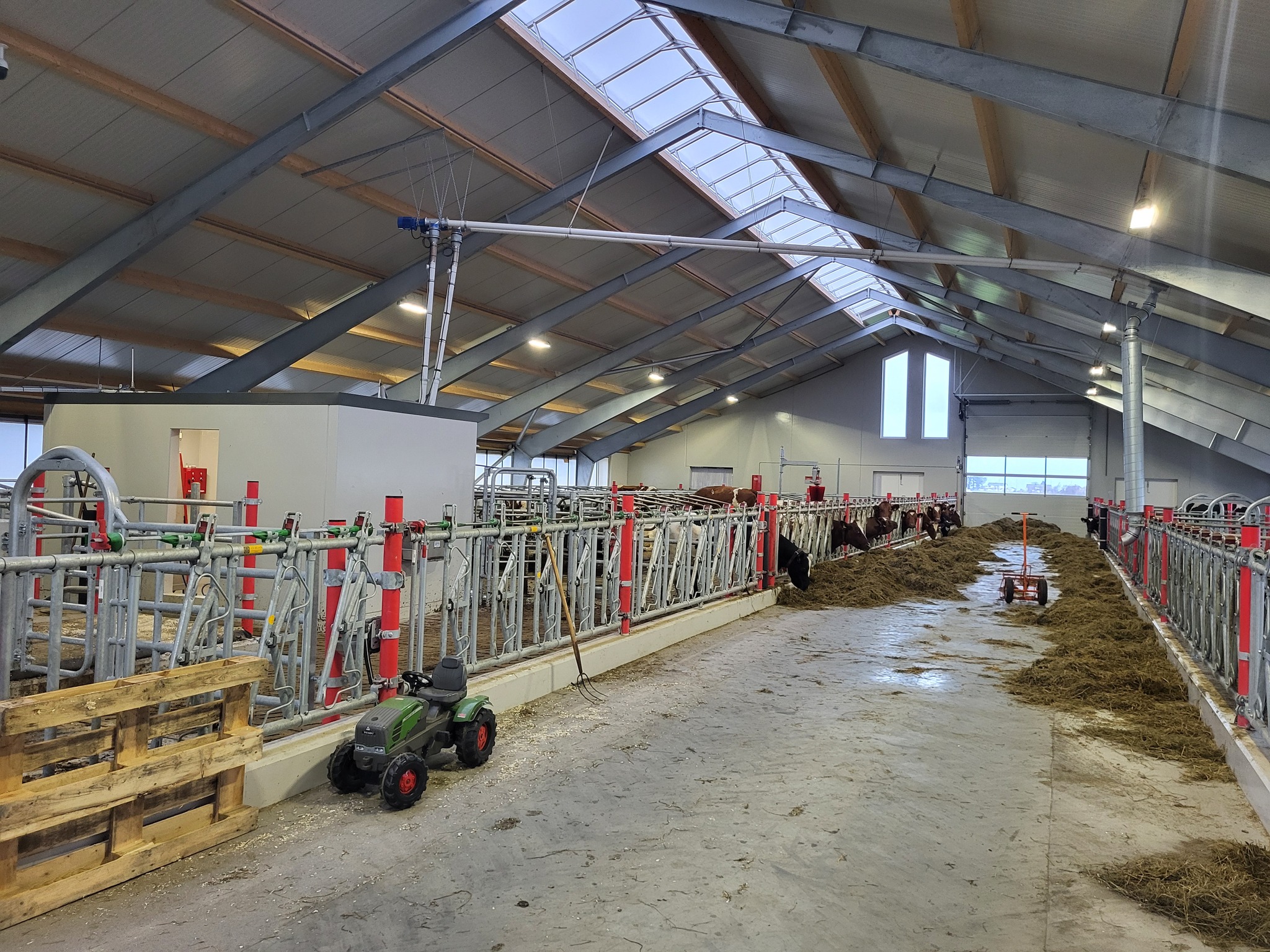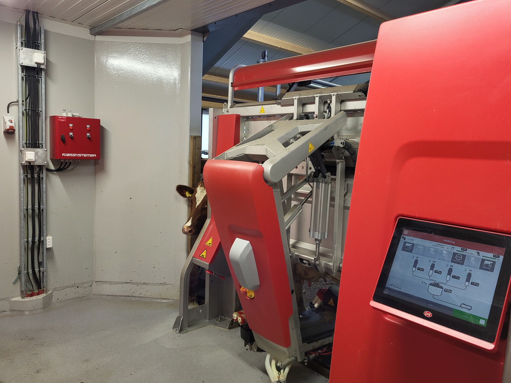 Fjøssystemer her levert: Lely A5 melkerobot, Lely Discovery, lys fra Agrilight, spalter fra Suding, innredning fra Jourdain, gummimatter fra Promat, gardiner fra Arntjen, kraftforsiloer fra Furab, kraftforskuer fra Big Dutchman og kanalomrøre fra Landia.