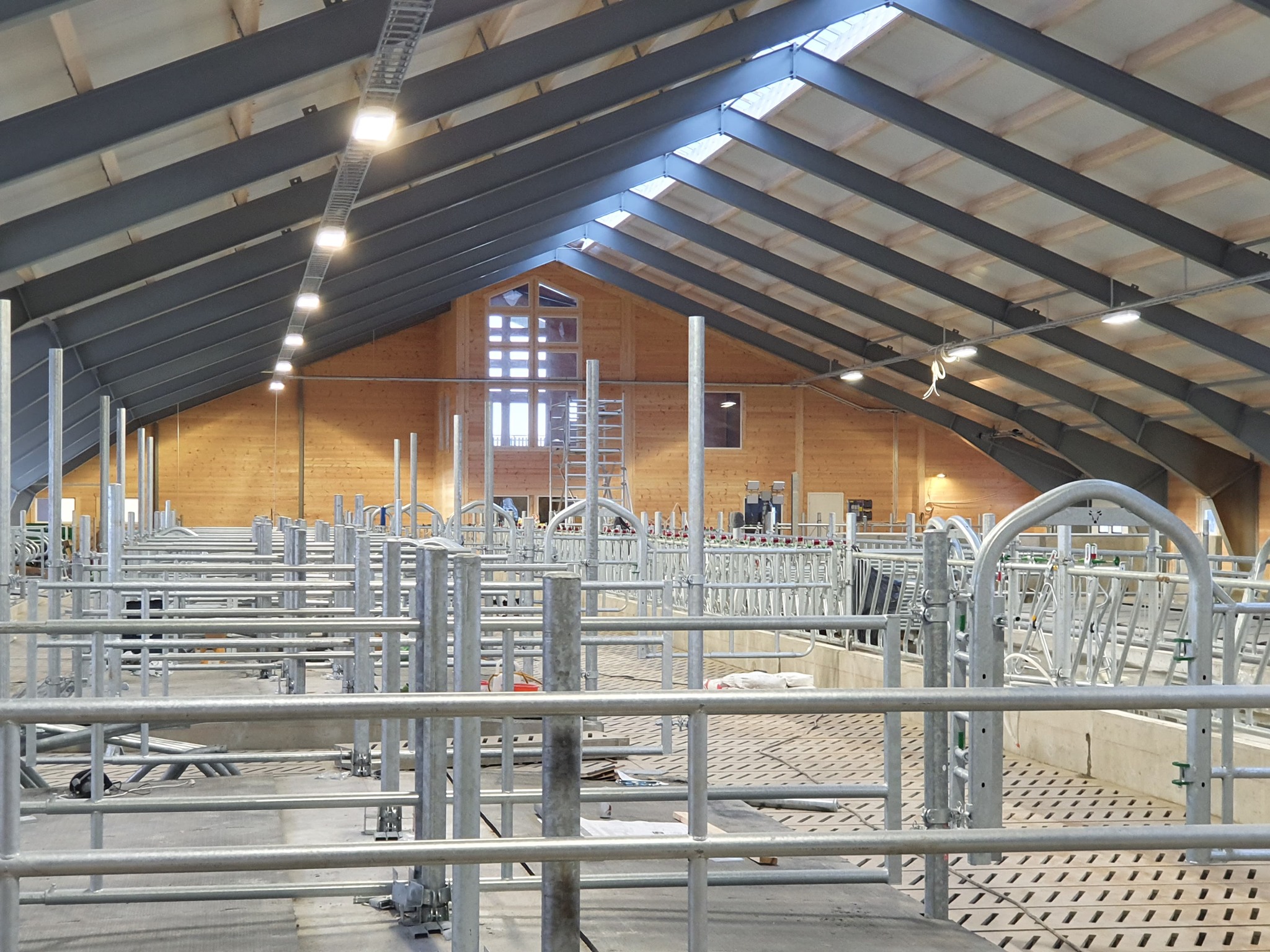 Her leverer Fjøssystemer Bygg og Fjøssystemer Midt-Norge et totalprosjekt. Fjøssystemer Bygg leverer bygget med stålbuer, isolert sandwich-tak og trevegger fra Alvdal Skurlag. En fantastisk løsning med stålbuer og trevegg