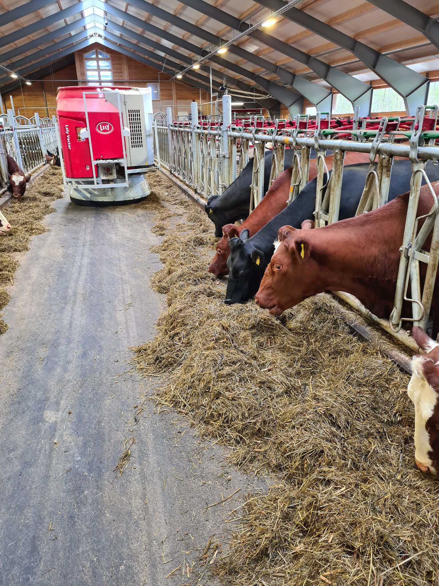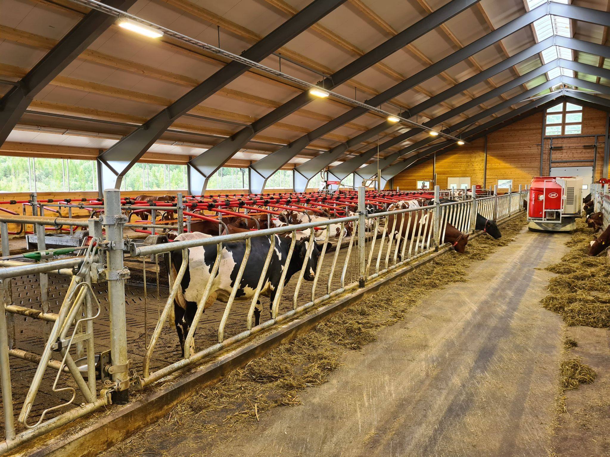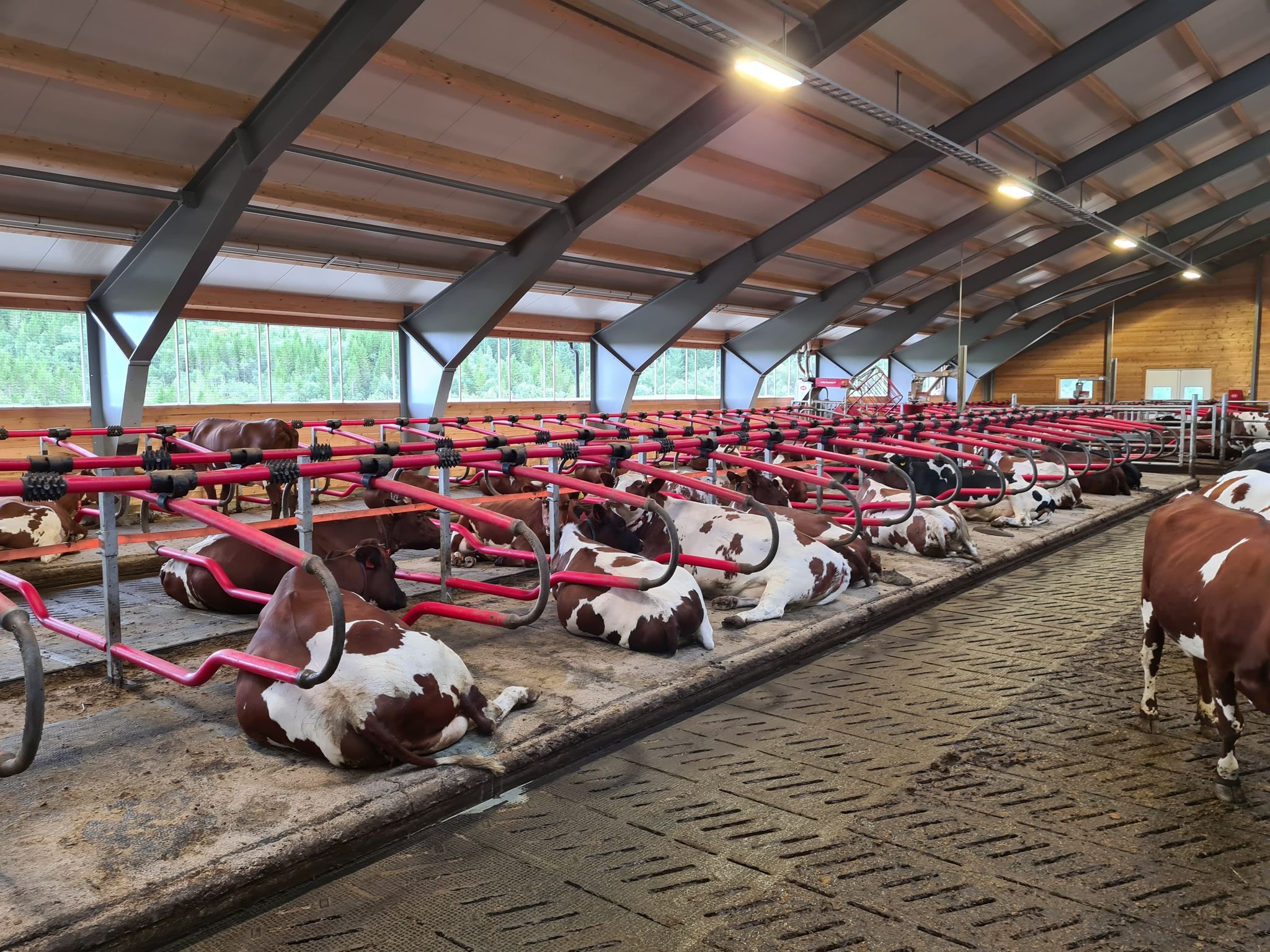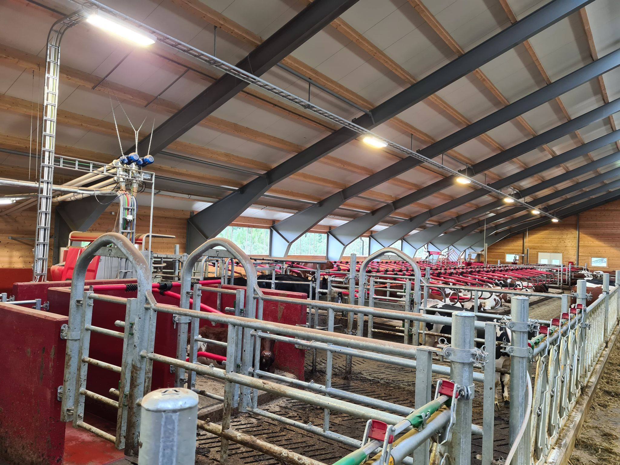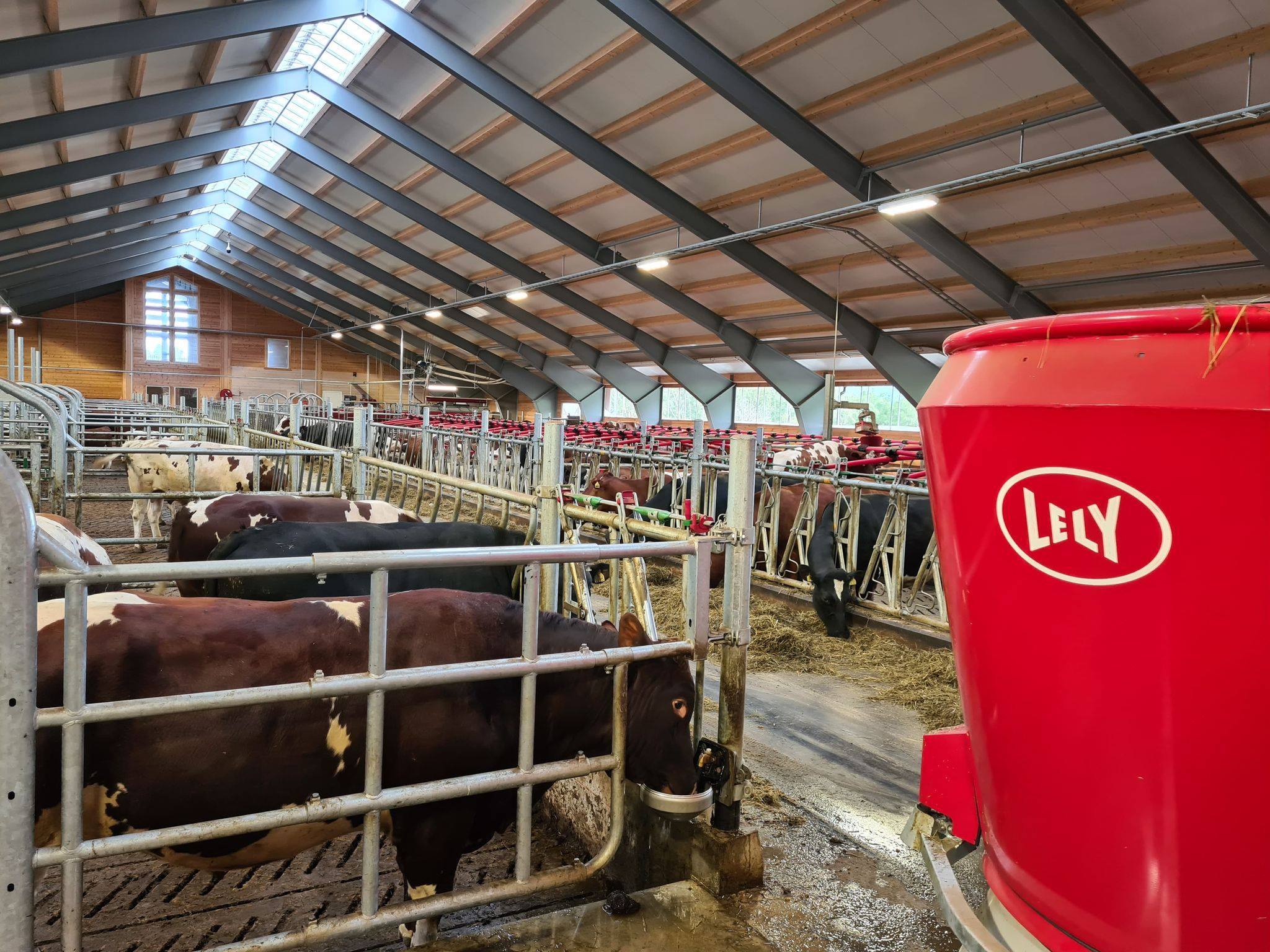Fjøssystemer Midt-Norge leverer Lely A5 melkerobot, Lely Vector, Lely skraperobot, spalteplank fra Souding, Jourdan innredning og Secco naturlig ventilasjon.