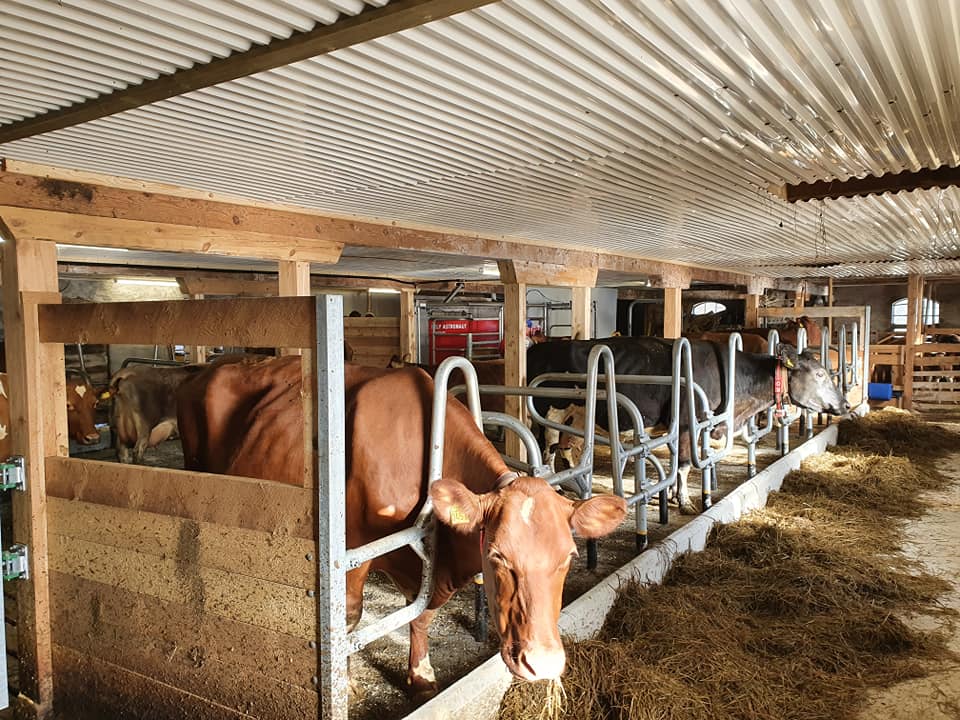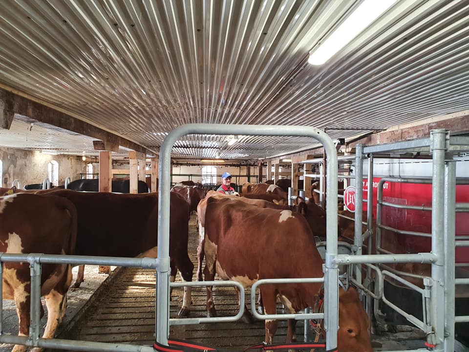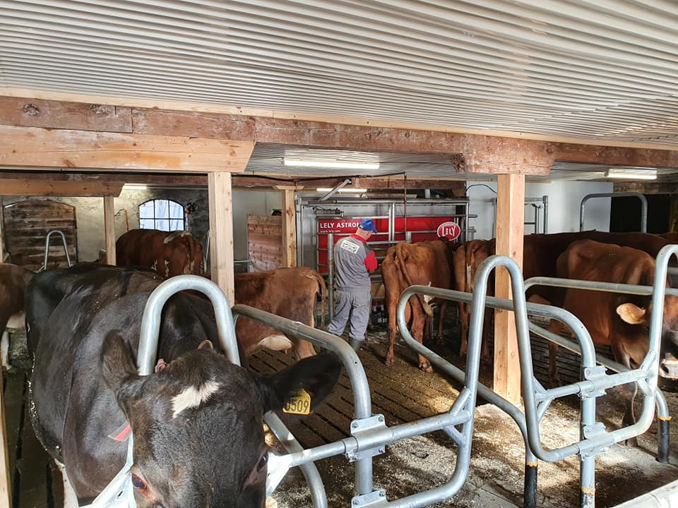 Båsfjøset fra 1941 er nå ombygd til lausdrift med fôringsliggebås. Viktor og familien har lagt ned en solid egeninnsats i gjennomføringen av prosjektet som har resultert i denne kosnadseffektive løsningen.