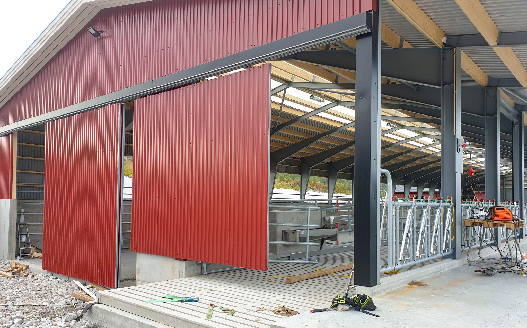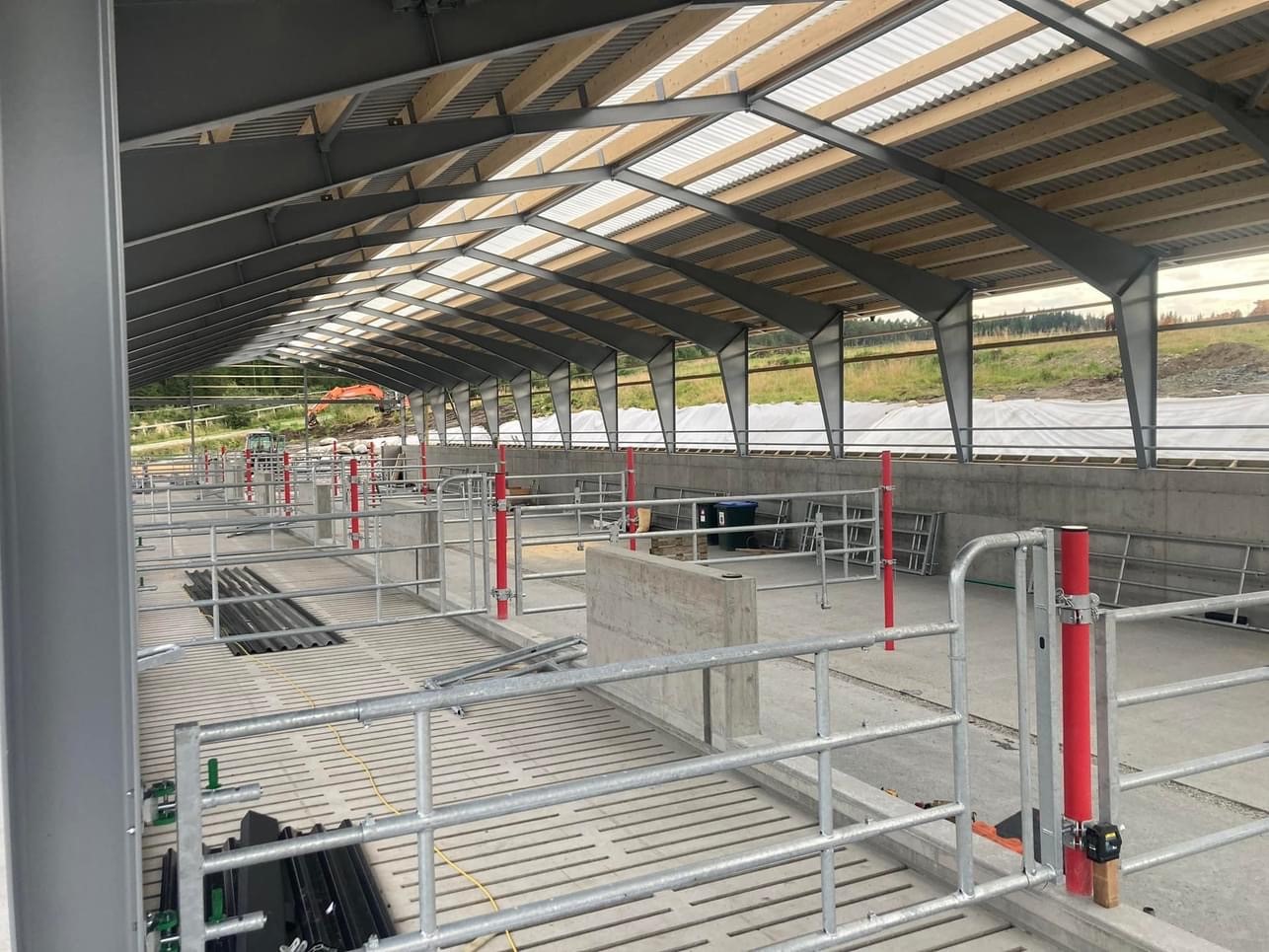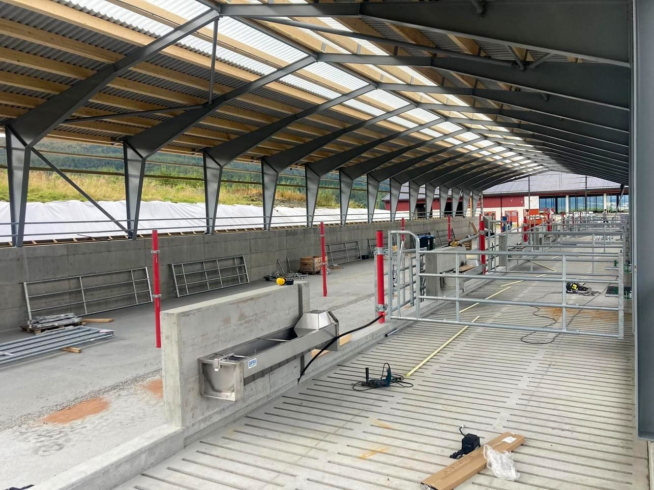 Fjøssystemer Bygg har levert bygget som har en bærekonstruksjon av stålrammer og stålplater på tak vegg.