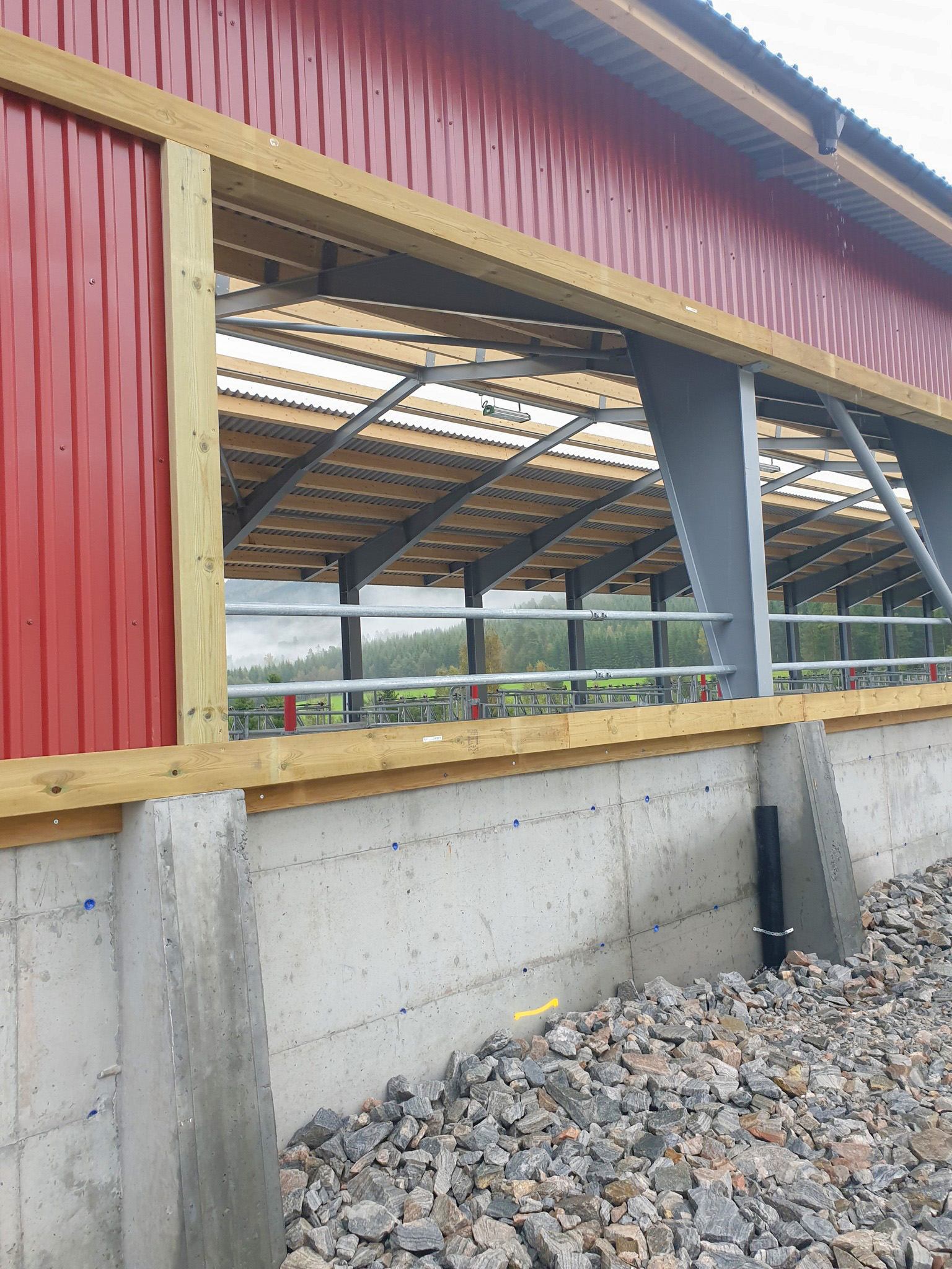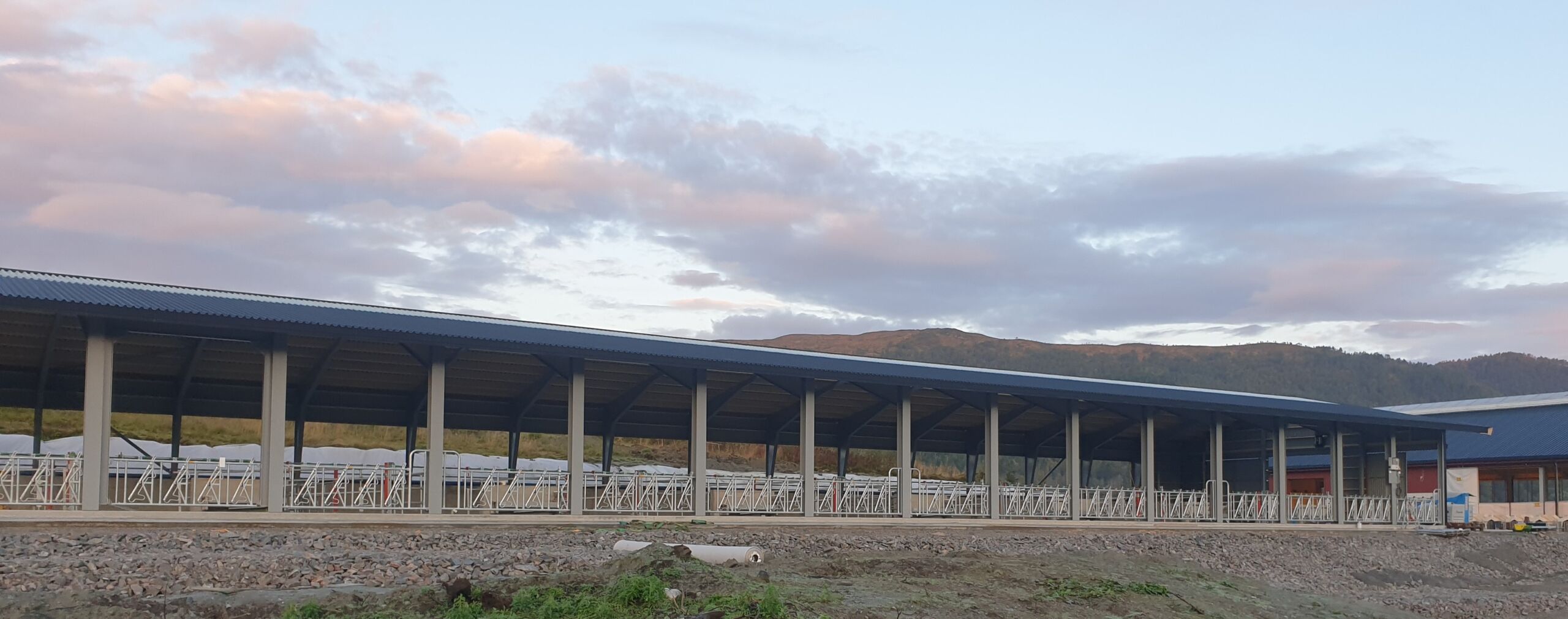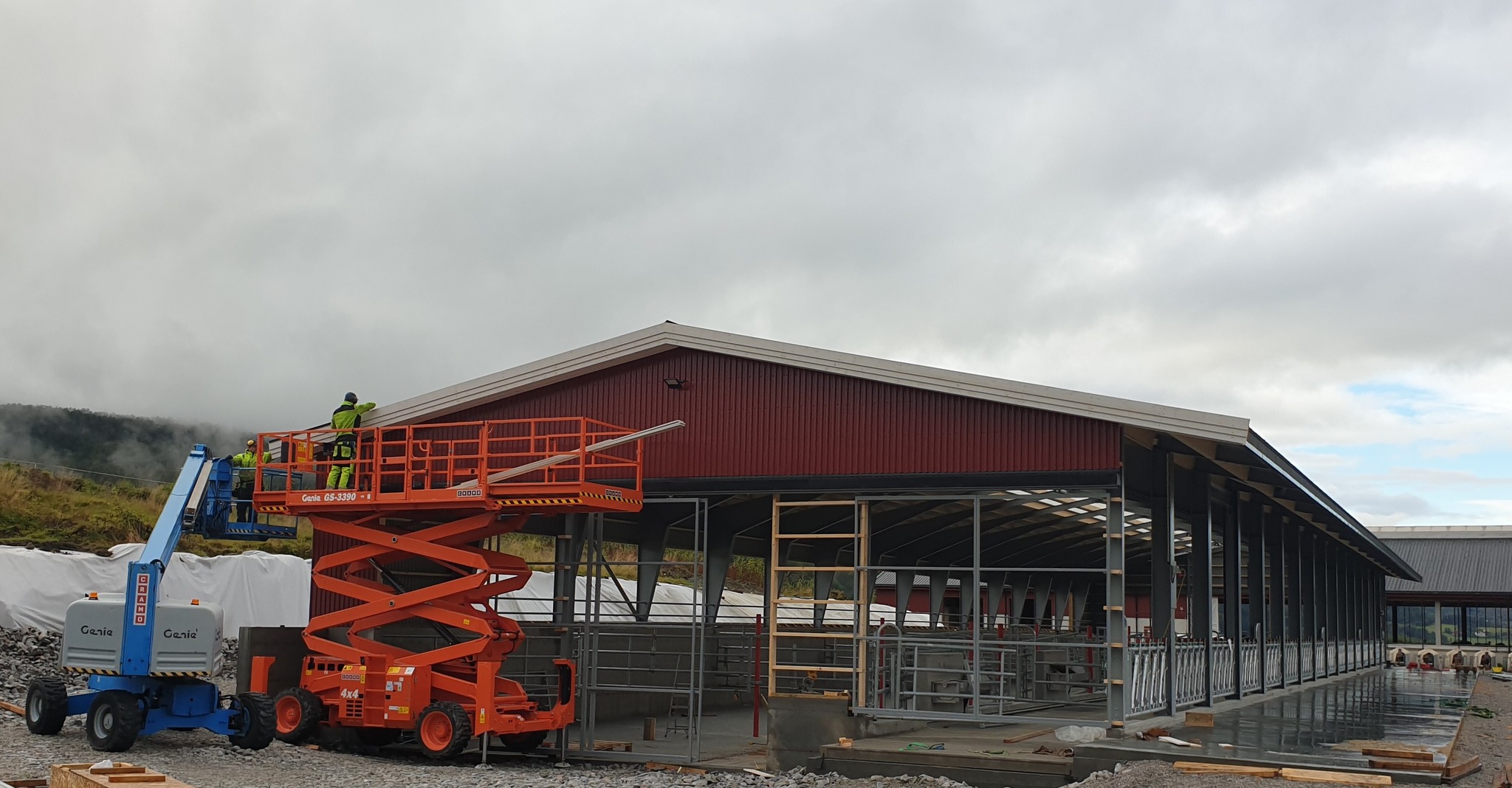 Fjøssystemer Bygg har levert bygget som har en bærekonstruksjon av stålrammer og stålplater på tak vegg.