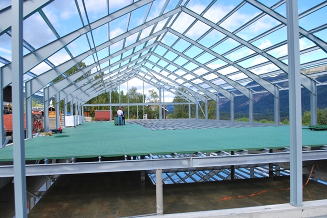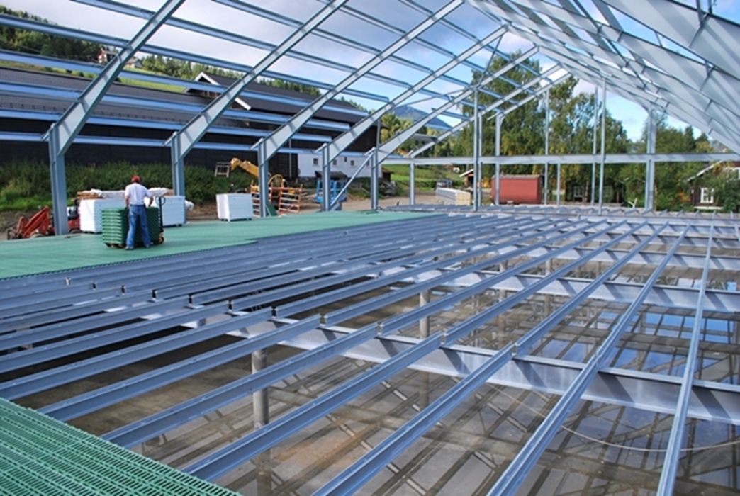 Som bæring for gulvet bruker vi glassfiber på korte spenn, og stålbjelker for lengre spenn. Vi dimensjonerer og tilpasser bæring i hvert enkelt fjøs, slik at du kan være trygg på at gulvet blir stabilt.