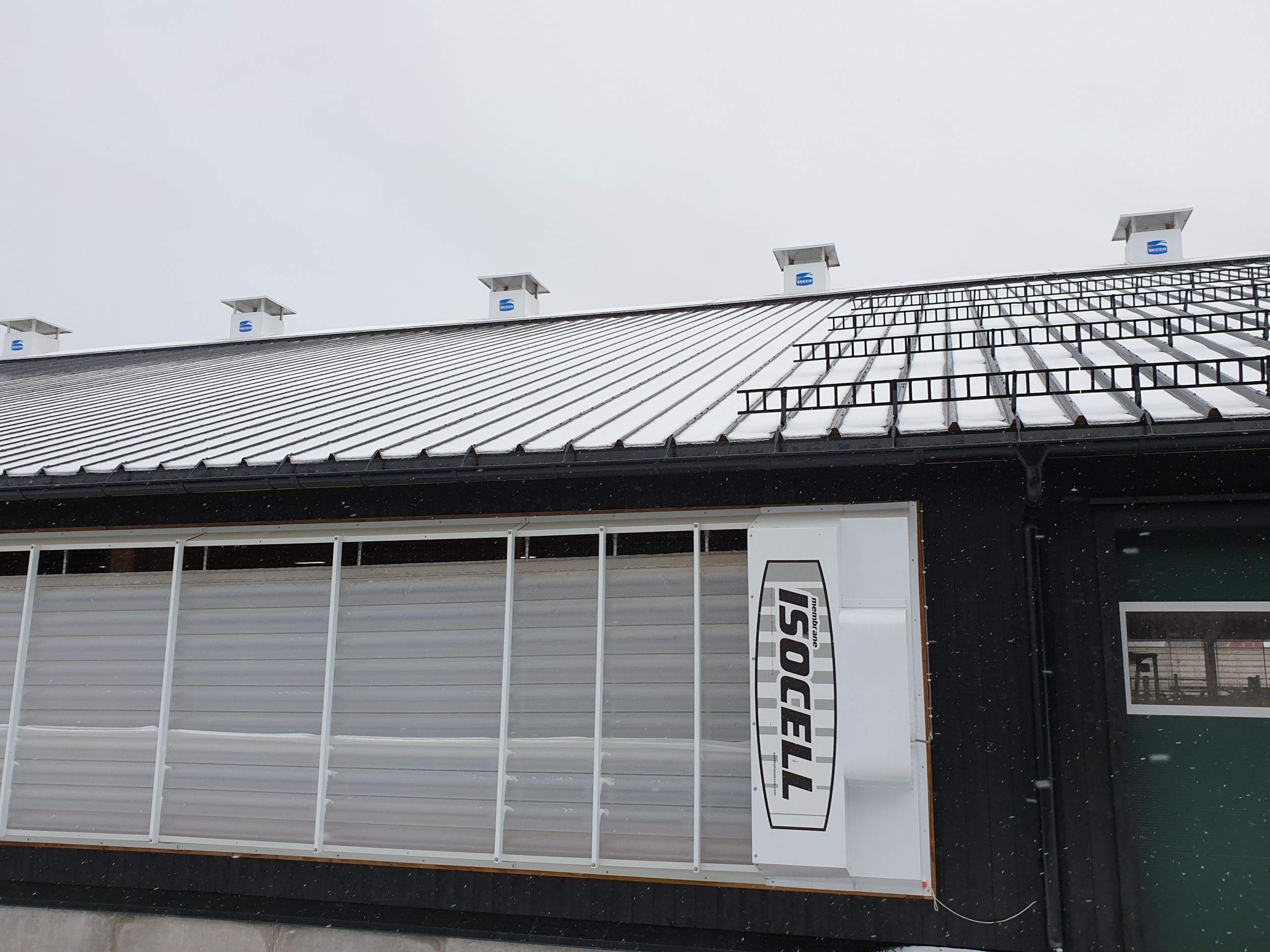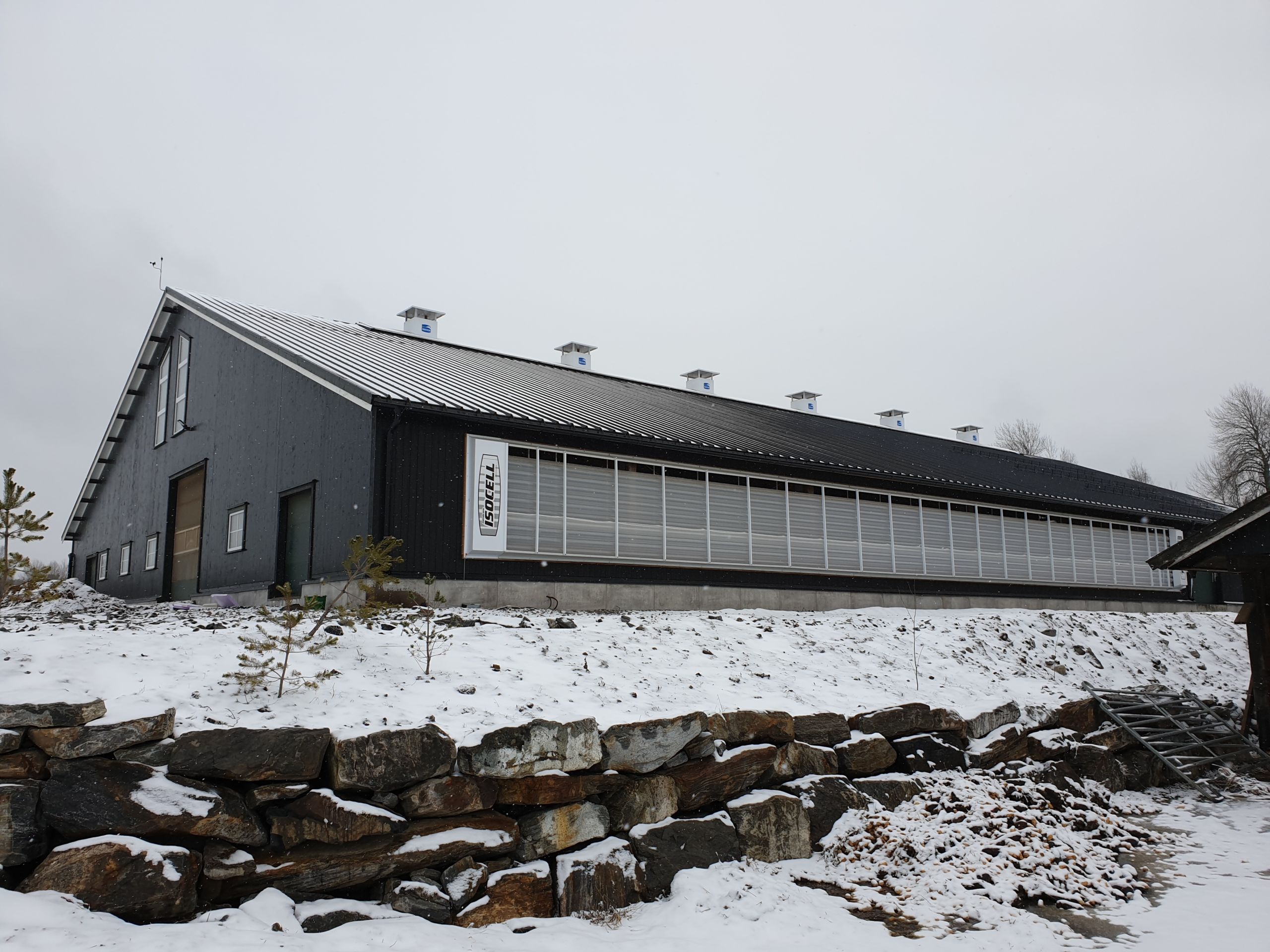IsoCell-veggene fungerer som 10 cm isolasjon når de er lukket. Veggene er laget av gjennomsiktig kraftig plastikk som fylles med luft. Veggene slipper inn mye lys, noe som er meget viktig for optimal melkeproduksjon.