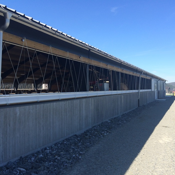 Vi bruker gardiner og kip fra tyske Arntjen, som har lang erfaring med naturlig ventilasjon. For at systemet skal fungere, er det viktig å få beregnet lengde på kip, og areal på luftinntak. Dette vil variere med størrelsen på bygg, og antall dyr det er beregnet for. Vi gjør selvsagt denne beregningen for deg.